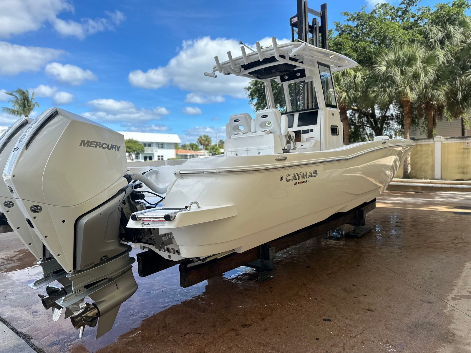 The 2026 Caymas 291 HB Center Console is the ultimate blend of performance, luxury, and versatility. With its powerful twin Mercury 300 V-8 Verado Cold Fusion engines, advanced features like motorized battery switches, stainless steel rod holders, a marine porcelain head, Fusion MS-RA670 audio, underwater lights, a swim platform with boarding ladder, windlass, and premium seating, this Caymas boat for sale is ready to deliver unforgettable experiences on the water.Don’t miss the opportunity to own a top-tier center console boat that promises excitement, comfort, and reliability for years to come. Contact your local dealer today to learn more about the Caymas 291 HB Center Console and make your boating dreams a reality.