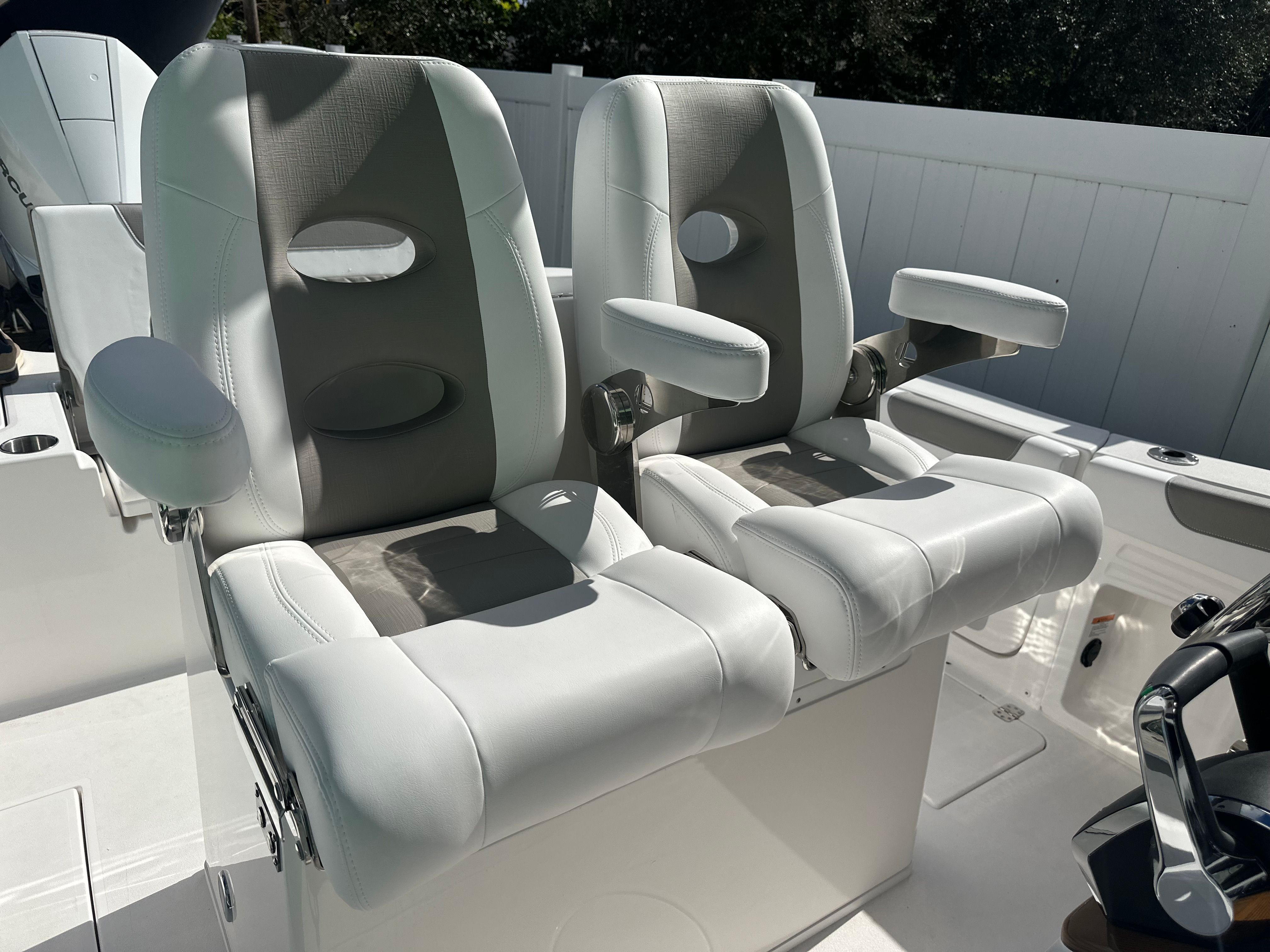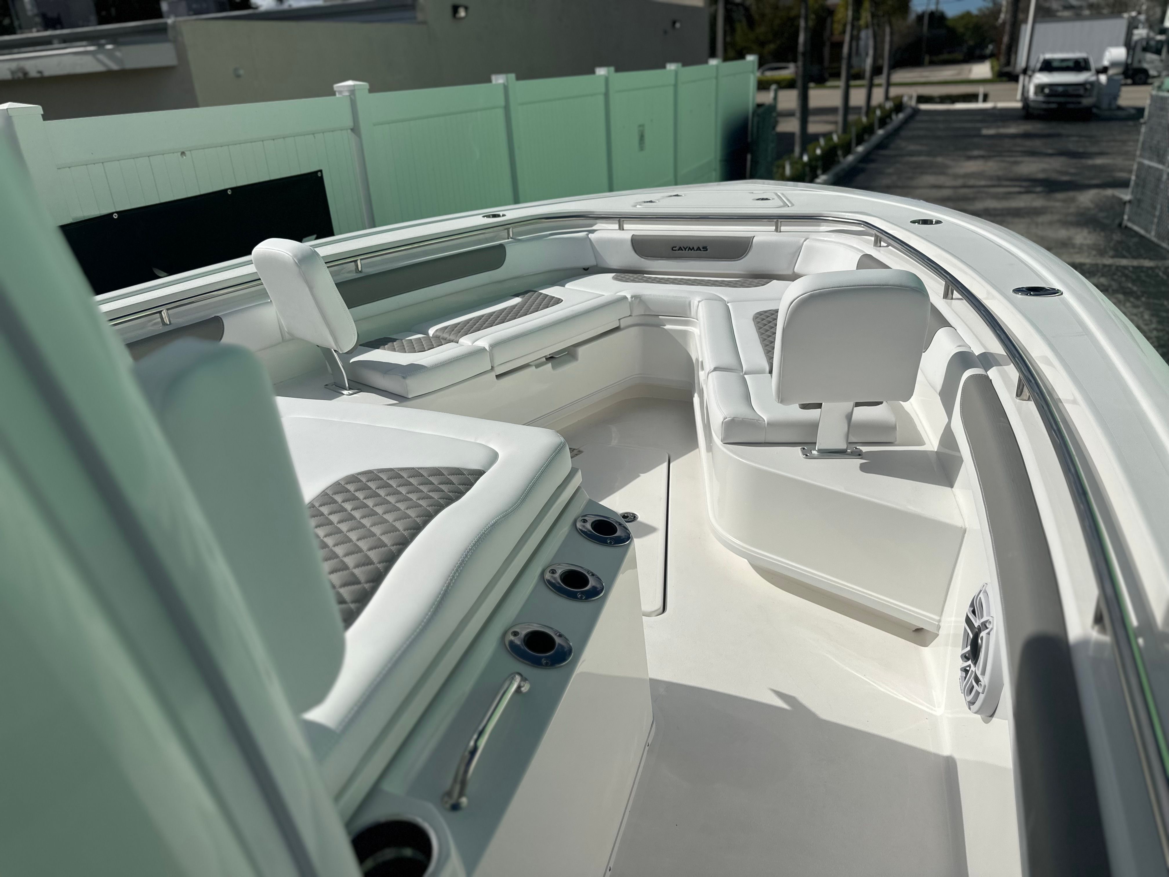 The Caymas 291 HB shines in a variety of scenarios, making it the perfect choice for families, fishing enthusiasts, and anyone who loves spending time on the water. Plan a family day trip to a secluded beach, where the swim platform and ladder make swimming and snorkeling easy and fun. Head offshore for a serious fishing expedition, taking advantage of the deluxe outrigger bases and advanced electronics to target your favorite species. Or, invite friends for a sunset cruise, enjoying the comfort of the Llebroc helm chairs and the stylish ambiance of the white and grey upholstery.This center console boat is equally at home in coastal waters, lakes, and bays, offering the versatility to match your boating lifestyle. Whether you’re seeking adventure, relaxation, or a bit of both, the Caymas 291 HB delivers an unforgettable experience every time you leave the dock.