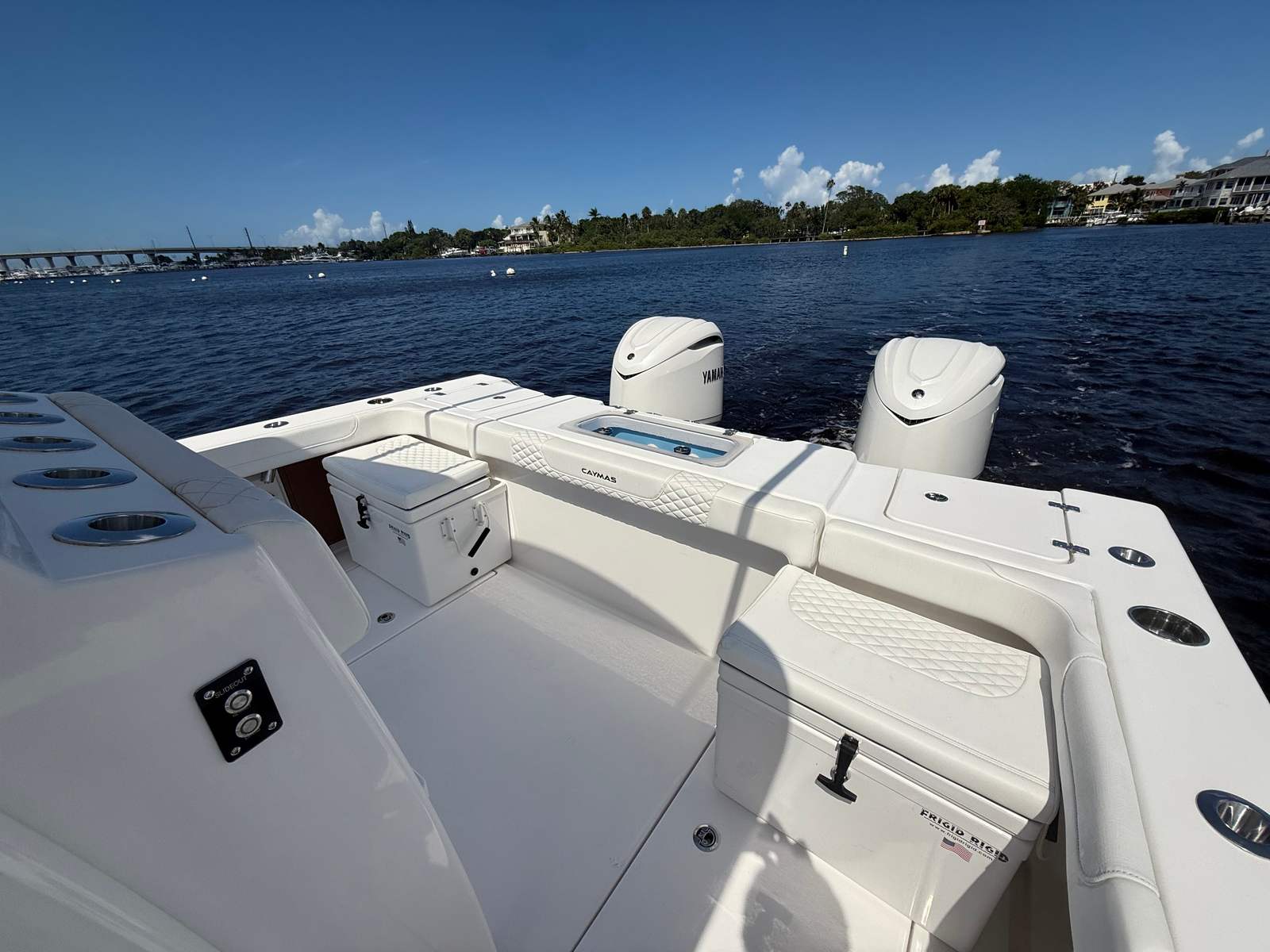 Practicality meets luxury in the Caymas 30 CT. The generous storage options keep your gear organized and out of the way, while the intuitive helm layout puts all controls within easy reach. Docking is a breeze thanks to the Helm Master EX system, which provides precise maneuverability even in challenging conditions. The freshwater washdown system makes post-adventure cleanup quick and easy, so you can spend more time enjoying the water and less time on maintenance.Fuel efficiency is enhanced by the advanced Yamaha engines and streamlined hull design, allowing you to cover more distance with fewer stops. The Reverso engine flush system further simplifies upkeep, making it easy to maintain your investment and maximize time on the water.