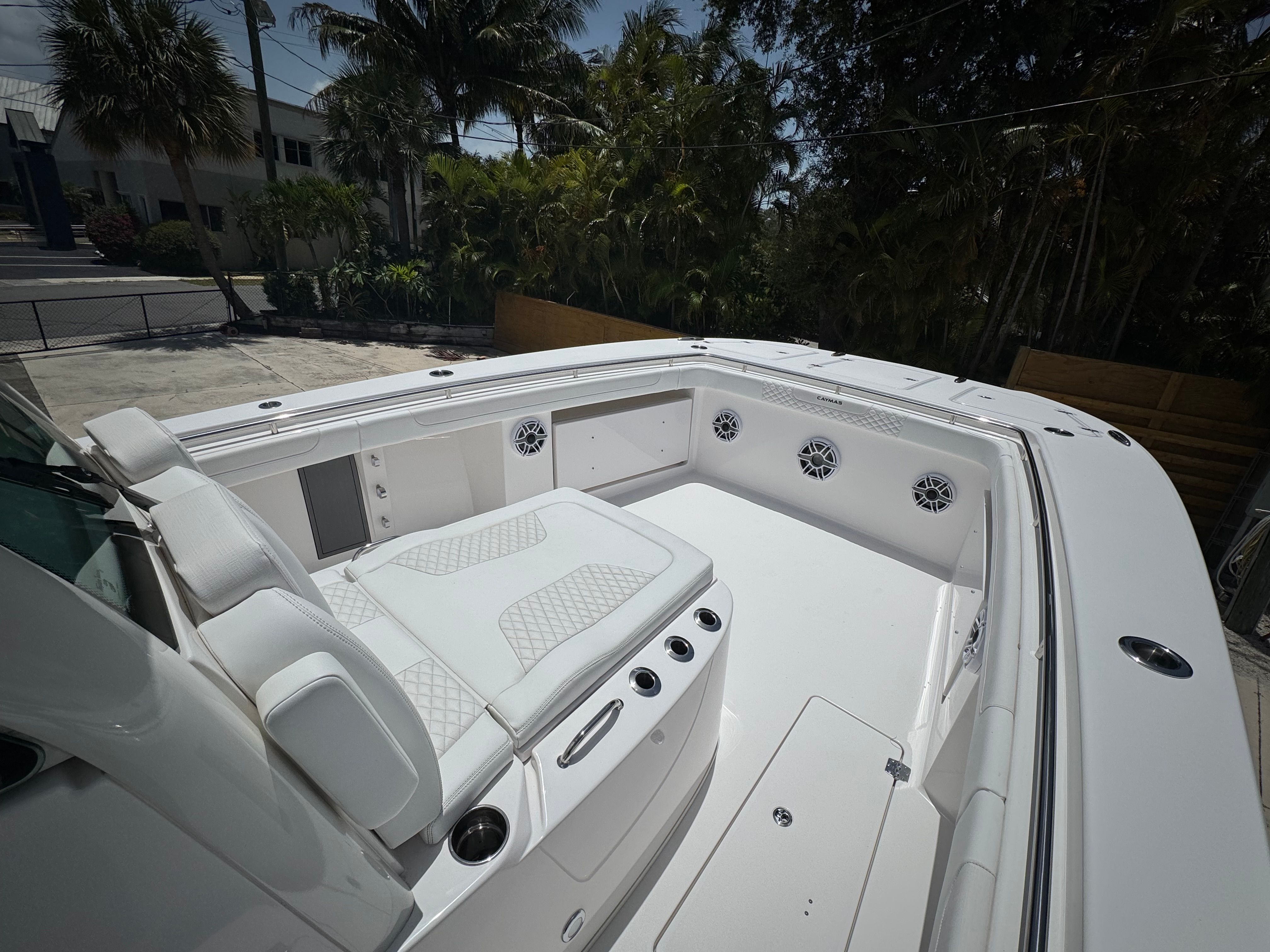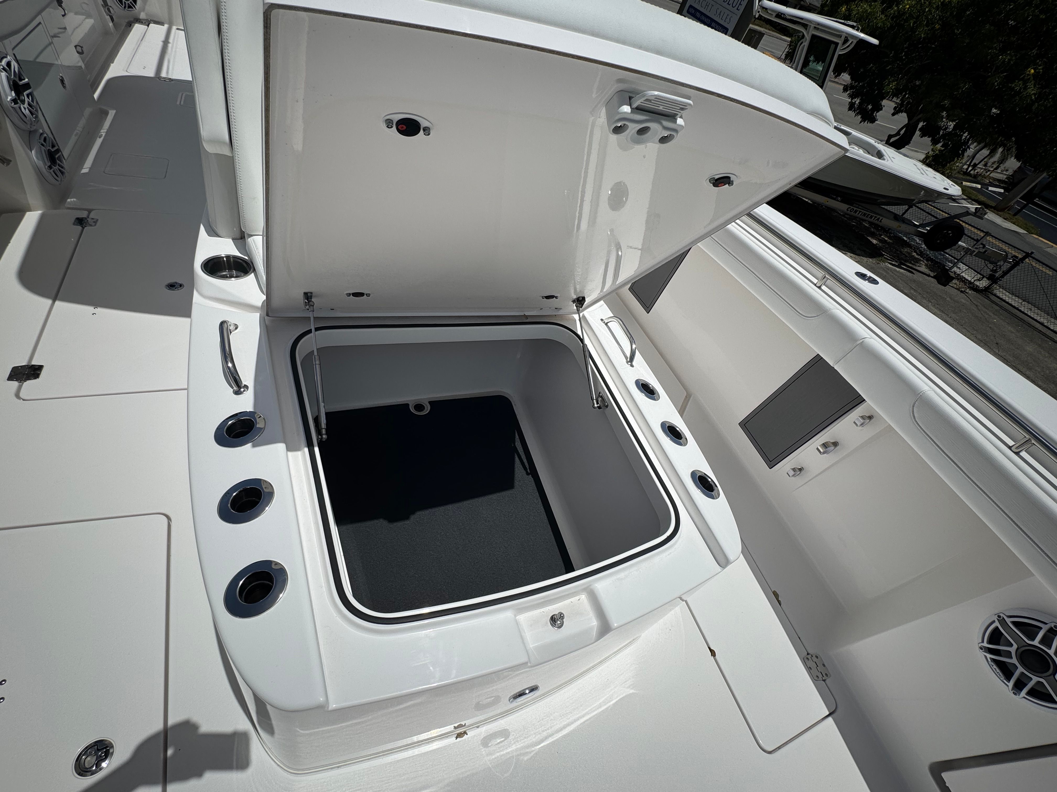 The Caymas 34 CT Center Console is packed with features designed to elevate your boating experience. Its spacious deck layout offers plenty of room for casting lines, entertaining guests, or simply soaking up the sun. The thoughtfully designed helm station provides excellent visibility and intuitive controls, ensuring that every journey is both safe and enjoyable. With its advanced hull design, the 34 CT delivers a stable and dry ride, even when the weather turns rough. The boat’s high-quality construction materials and attention to detail are evident throughout, from the comfortable seating to the ample storage compartments that keep your gear organized and accessible.