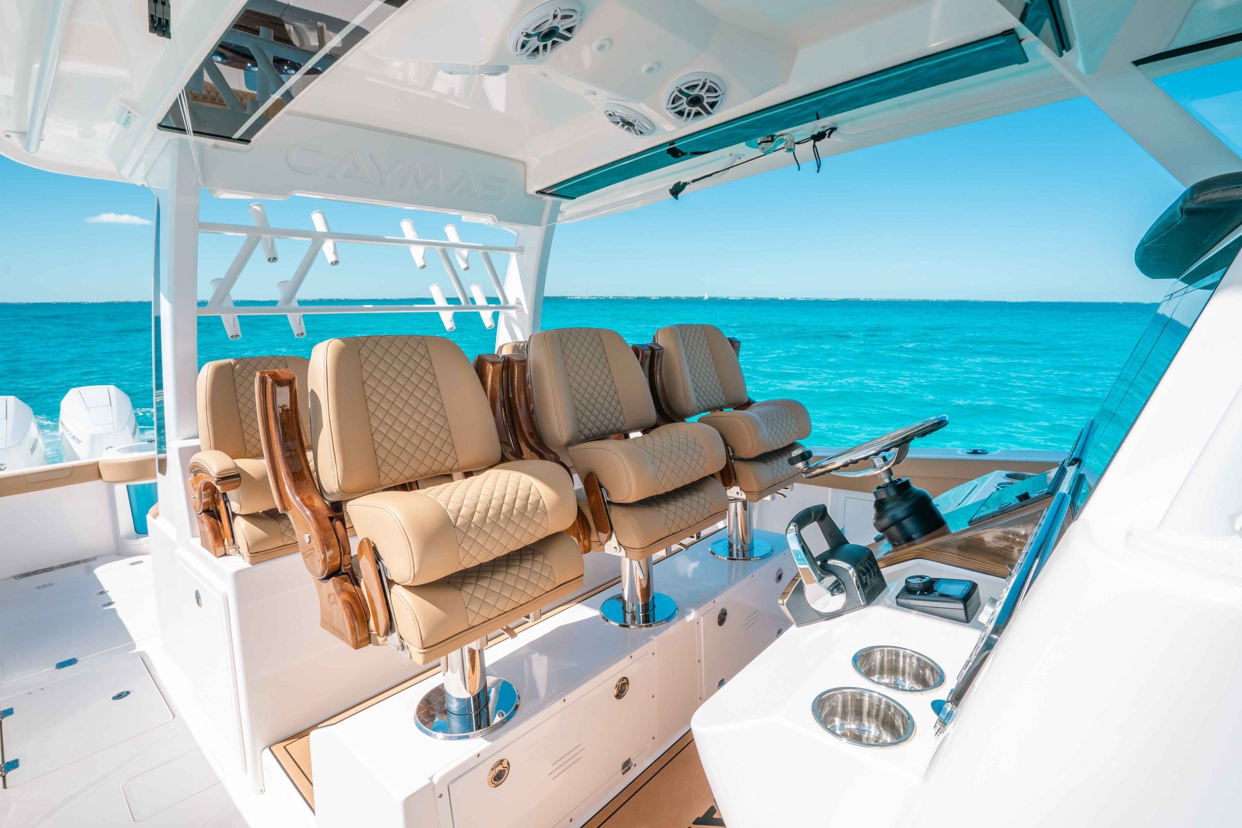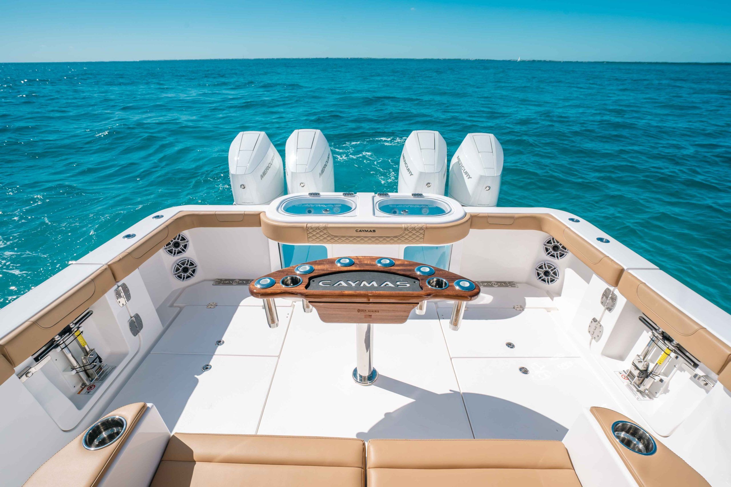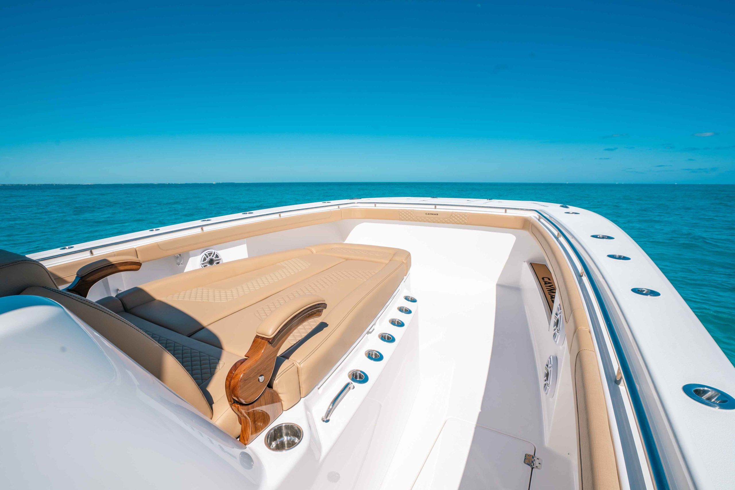 At the heart of the Caymas 44 CT is a powerhouse of marine engineering. Equipped with four high-performance engines delivering a combined 1,700 horsepower, this center console is built for speed, agility, and reliability. Whether you’re chasing the horizon at top speed or navigating tight marinas, the 44 CT responds with precision and confidence. The advanced hull design maximizes efficiency and stability, ensuring that every journey is as exhilarating as it is comfortable. For those seeking a center console boat for sale that offers unmatched performance, the Caymas 44 CT is a clear frontrunner.