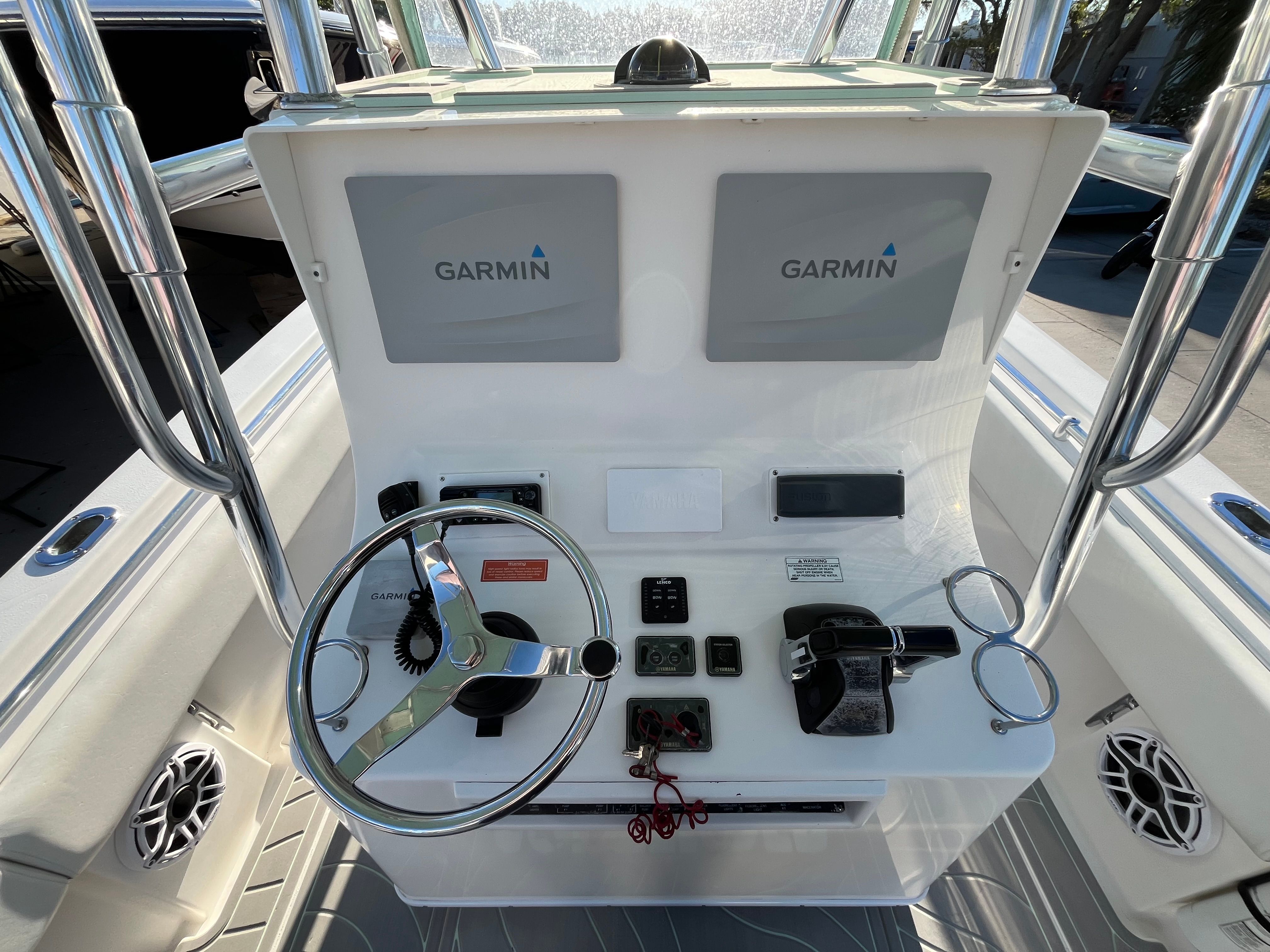 At the heart of this Contender 28 Sport are two robust engines, delivering a combined 600 horsepower. With only 1,755 engine hours, these twin engines provide reliable power and efficiency, ensuring you reach your destination swiftly and confidently. The center console configuration allows for optimal weight distribution and balance, enhancing stability and maneuverability even at higher speeds. Whether you’re cruising along the coastline, heading offshore for a fishing expedition, or simply enjoying a leisurely ride, the performance capabilities of this Contender boat for sale are sure to impress. The responsive handling and acceleration make it easy to navigate tight turns, choppy waters, and busy marinas, giving you complete control over your boating experience.