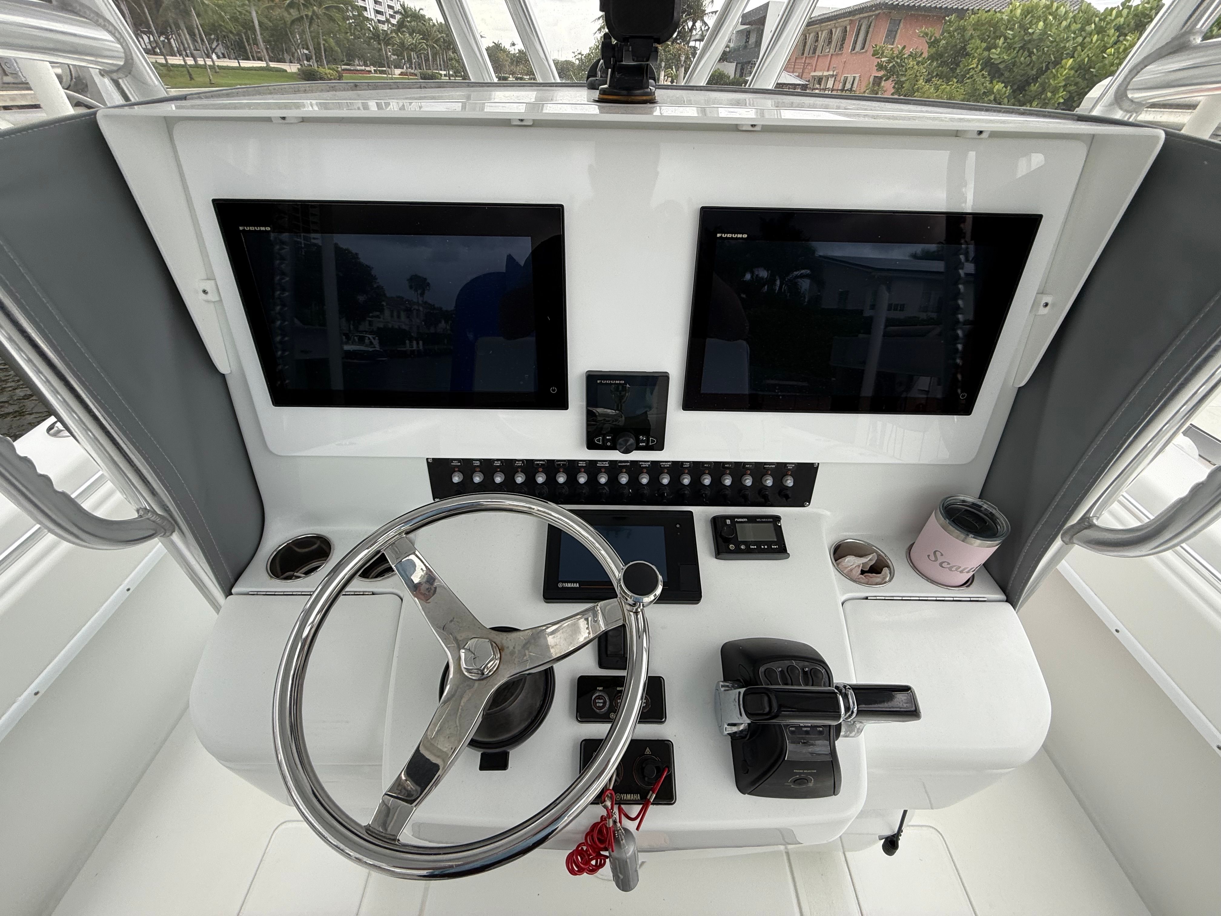 The Contender 35 ST is designed with both the serious angler and the recreational boater in mind. Its center console layout provides 360-degree access around the deck, making it ideal for fishing, entertaining, or simply enjoying the open water. The spacious cockpit allows for easy movement, while the thoughtfully designed helm offers excellent visibility and control. The boat’s length of 34.75 feet ensures plenty of room for guests, gear, and all your on-water activities.This used Contender boat for sale is built with quality materials and attention to detail, ensuring durability and longevity. The triple-engine configuration not only enhances performance but also provides peace of mind when venturing offshore. Every aspect of the Contender 35 ST is crafted to deliver a superior boating experience, from its sturdy hull to its ergonomic seating and intuitive controls.