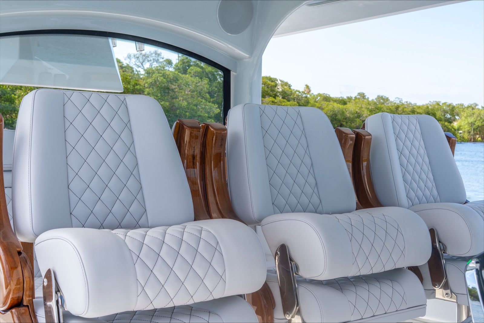 luxury and, comfort in this one-of-a-kind 53 SUENOS! The bright white hull is beautify contrasted by the Whisper