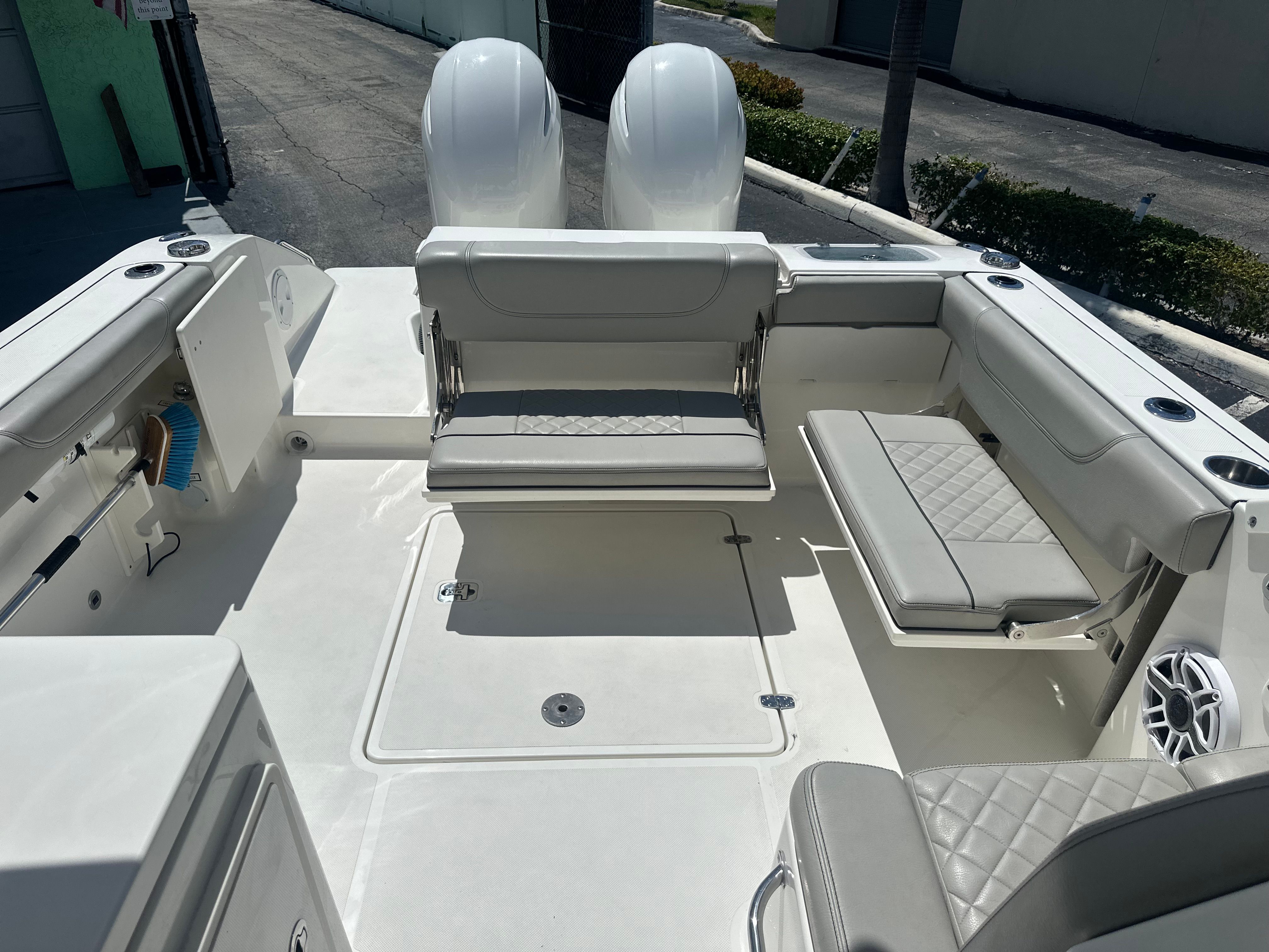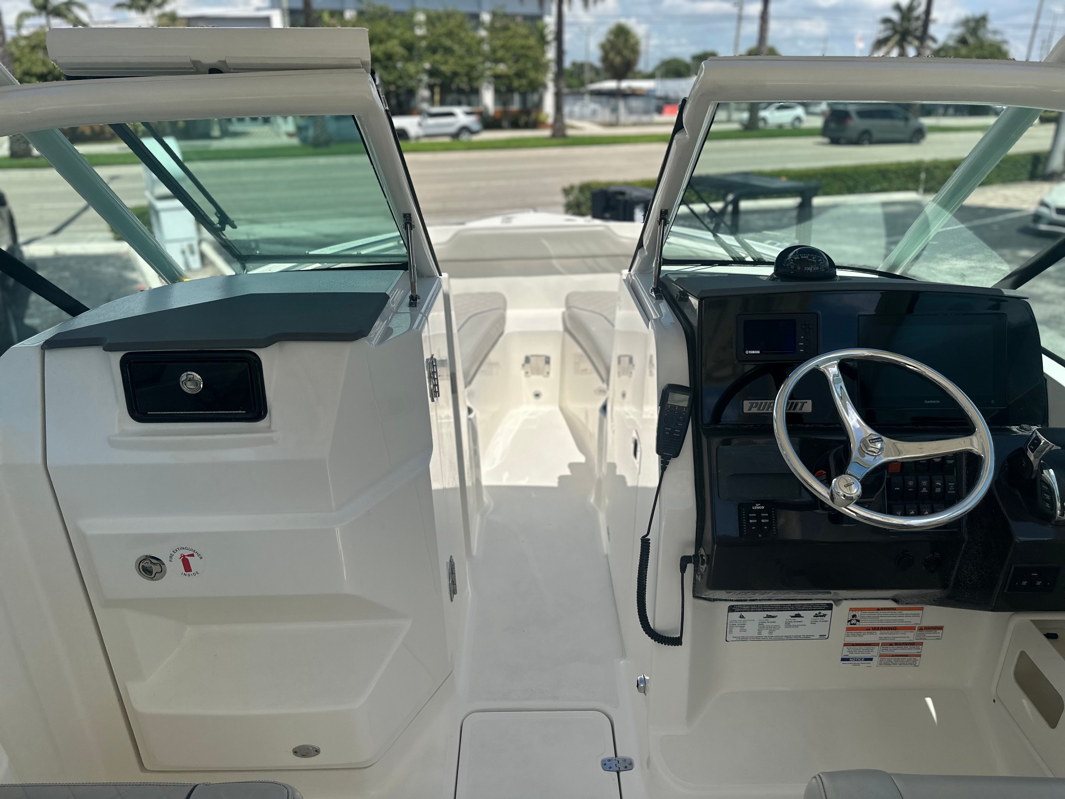 Turnkey and ready for delivery, this 2023 Pursuit DC 266 is the perfect dual console for family cruising, or fishing. Powered by reliable twin Yamaha 200’s with 255 hours, she offers smooth performance and confident handling in all conditions. Finished in a clean white hull with an elegant Platinum boot stripe, this DC 266 stands out with timeless style and classic Pursuit lines. The spacious layout includes plush bow seating, a convertible aft lounge, portside head compartment, and ample storage throughout—ideal for long days on the water.