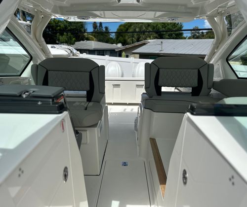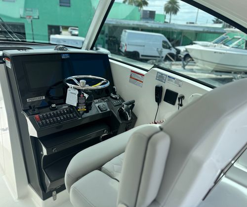 This Pursuit boat for sale is designed with practicality in mind, making ownership both enjoyable and hassle-free. The dual console layout offers convenient access to both the bow and stern, simplifying docking and maneuvering in tight spaces. The integrated rod holders and storage solutions keep your gear organized, whether you’re fishing or cruising. The efficient twin engines deliver impressive performance without sacrificing fuel economy, allowing you to spend more time enjoying the water and less time refueling.The Pursuit DC 326’s protective covers and curtains make it easy to shield passengers from sun, wind, and spray, ensuring comfort throughout your journey. The spacious deck and seating arrangements provide plenty of room for guests and gear, while the advanced electronics package streamlines navigation and system management. Every detail is designed to make your boating experience as smooth and enjoyable as possible.