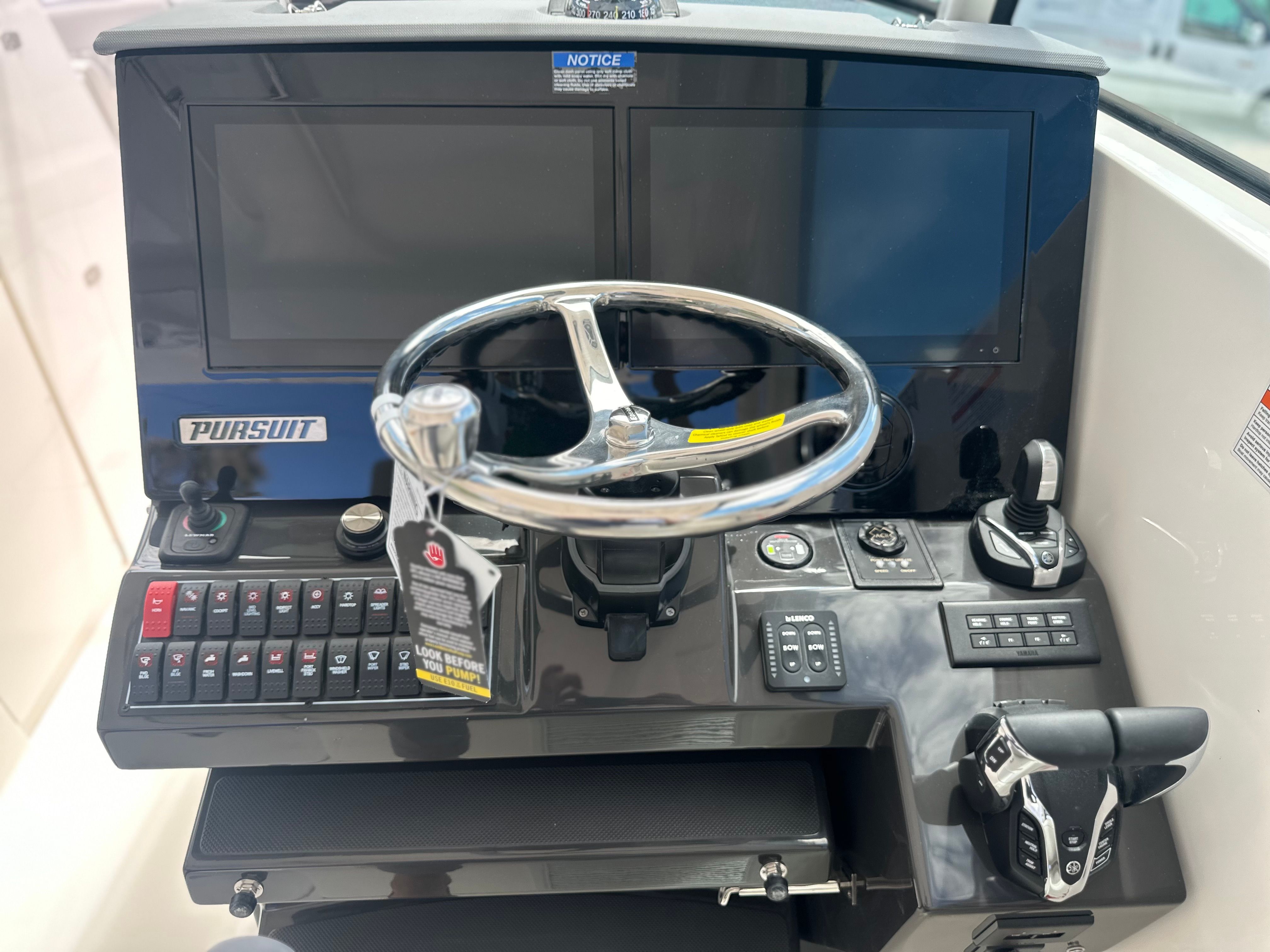 Owning the Pursuit DC 326 means embracing a lifestyle of fun, relaxation, and adventure. The dual console design maximizes both comfort and functionality, making it easy to switch between activities without missing a beat. Spacious seating areas invite guests to lounge and enjoy the scenery, while the advanced helm station puts you in complete control of your journey. The thoughtful layout encourages social interaction, whether you’re hosting a sunset cocktail party or spending quality time with family.The Pursuit DC 326’s innovative features enhance every aspect of your time on the water. The sunshade and protective curtains create a comfortable environment, allowing you to enjoy boating in a range of weather conditions. The teak table provides a perfect spot for meals and games, while the Garmin display keeps you informed and connected. With ample storage and smart design elements, you’ll have everything you need for a memorable day on the water.