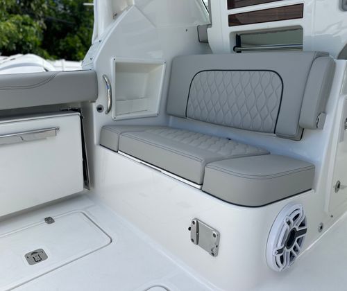 Powering the Pursuit DC 326 are two robust engines, delivering a combined 700 horsepower. This impressive setup ensures exhilarating acceleration, smooth cruising, and reliable handling in a variety of water conditions. Whether you’re navigating coastal waters or venturing offshore, the DC 326’s twin engines provide the confidence and power you need for every adventure. The advanced engineering behind this Dual Console boat guarantees a responsive ride, excellent fuel efficiency, and the ability to reach your favorite destinations quickly and comfortably.