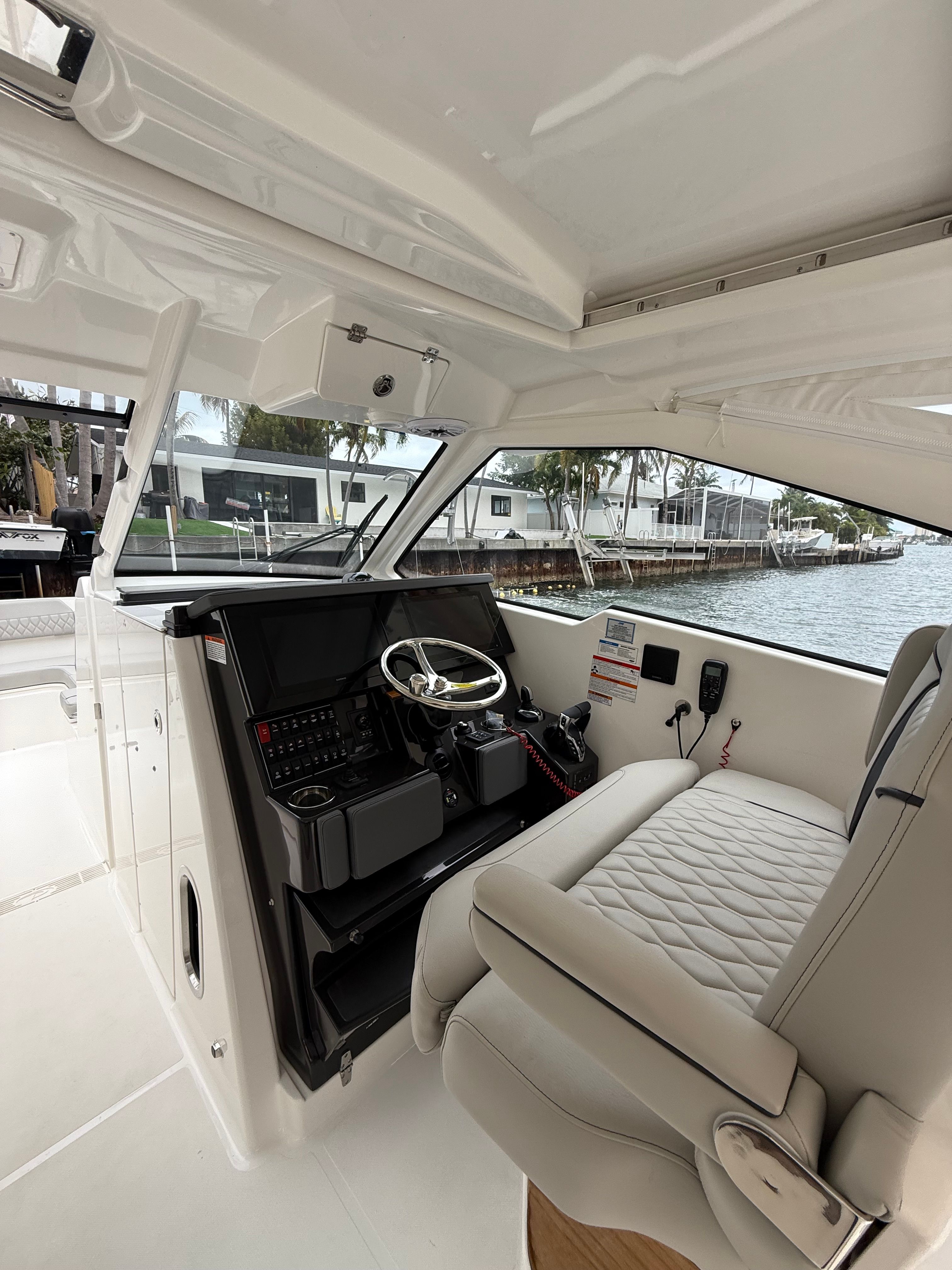 The Pursuit DC 365 Dual Console boat is the perfect companion for a wide range of activities. Imagine setting out on a family adventure, with plenty of space for everyone to relax, play, and explore. The boat’s stability and comfort make it ideal for fishing trips, allowing anglers to focus on the catch without worrying about rough seas. For those who love entertaining, the DC 365 transforms into a floating oasis, complete with mood lighting, premium sound, and a luxurious interior.This Pursuit boat for sale is also an excellent choice for couples or groups seeking a luxury getaway. The serene interior, air-conditioned cockpit, and elegant finishes create a resort-like atmosphere, while the powerful engines and advanced stabilization system ensure a smooth and enjoyable ride. Whether you’re cruising along scenic coastlines, anchoring in secluded coves, or hosting sunset parties, the Pursuit DC 365 delivers unforgettable experiences every time.