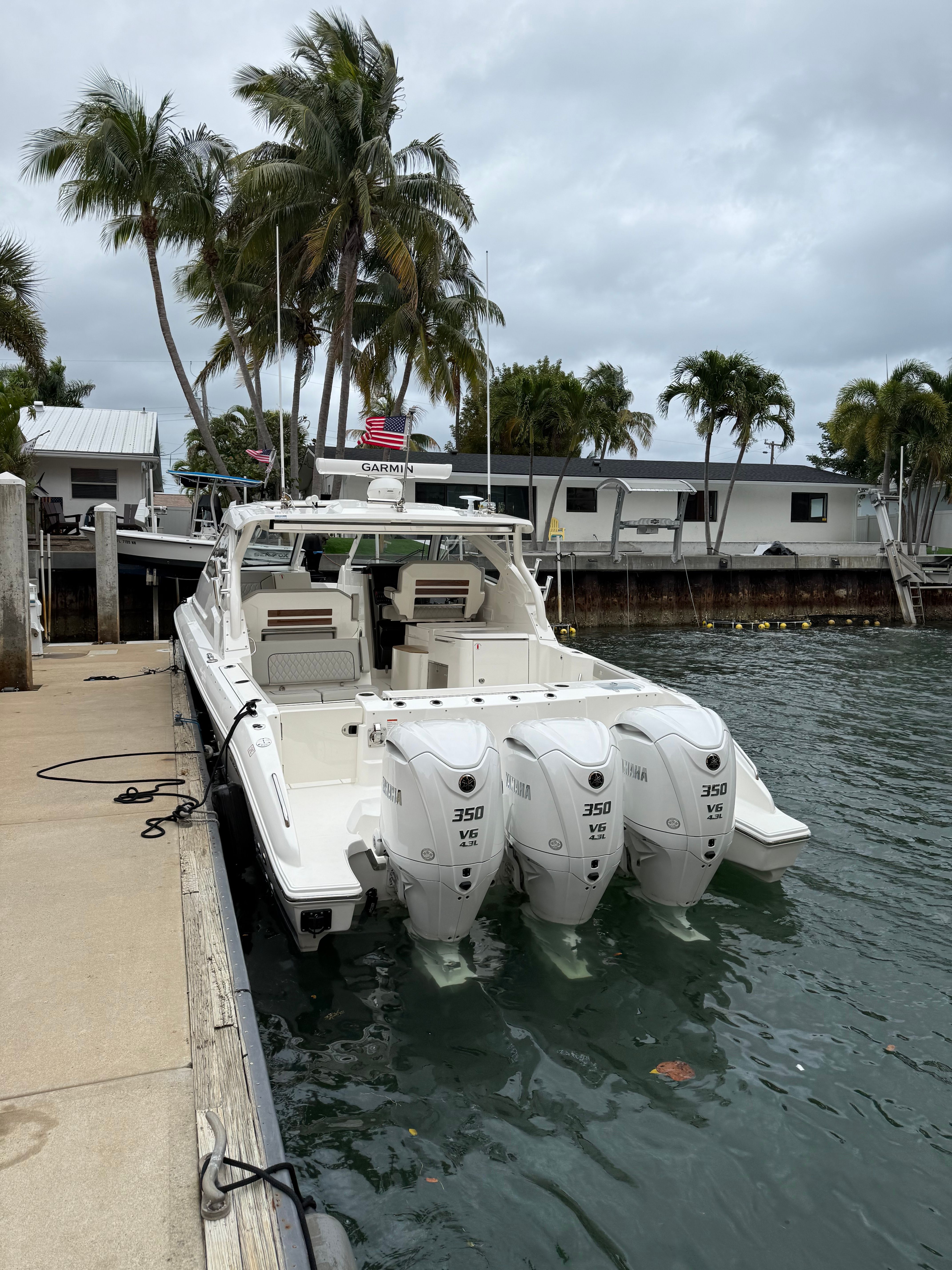 Practicality meets luxury in the Pursuit DC 365. Its generous length and well-designed layout offer ample storage for gear, supplies, and personal items, making it easy to keep your boat organized and clutter-free. The triple engine setup not only delivers impressive speed but also enhances maneuverability, making docking and navigating tight spaces a breeze. Fuel efficiency is optimized through advanced Yamaha engineering, allowing you to spend more time on the water and less time refueling.The hardtop-mounted LED spotlight ensures safe and easy docking after sunset, while the zone-controlled audio system lets you customize the listening experience in different areas of the boat. Whether you’re planning a weekend getaway or a spontaneous day trip, the Pursuit DC 365 is equipped to handle all your boating needs with style and ease.