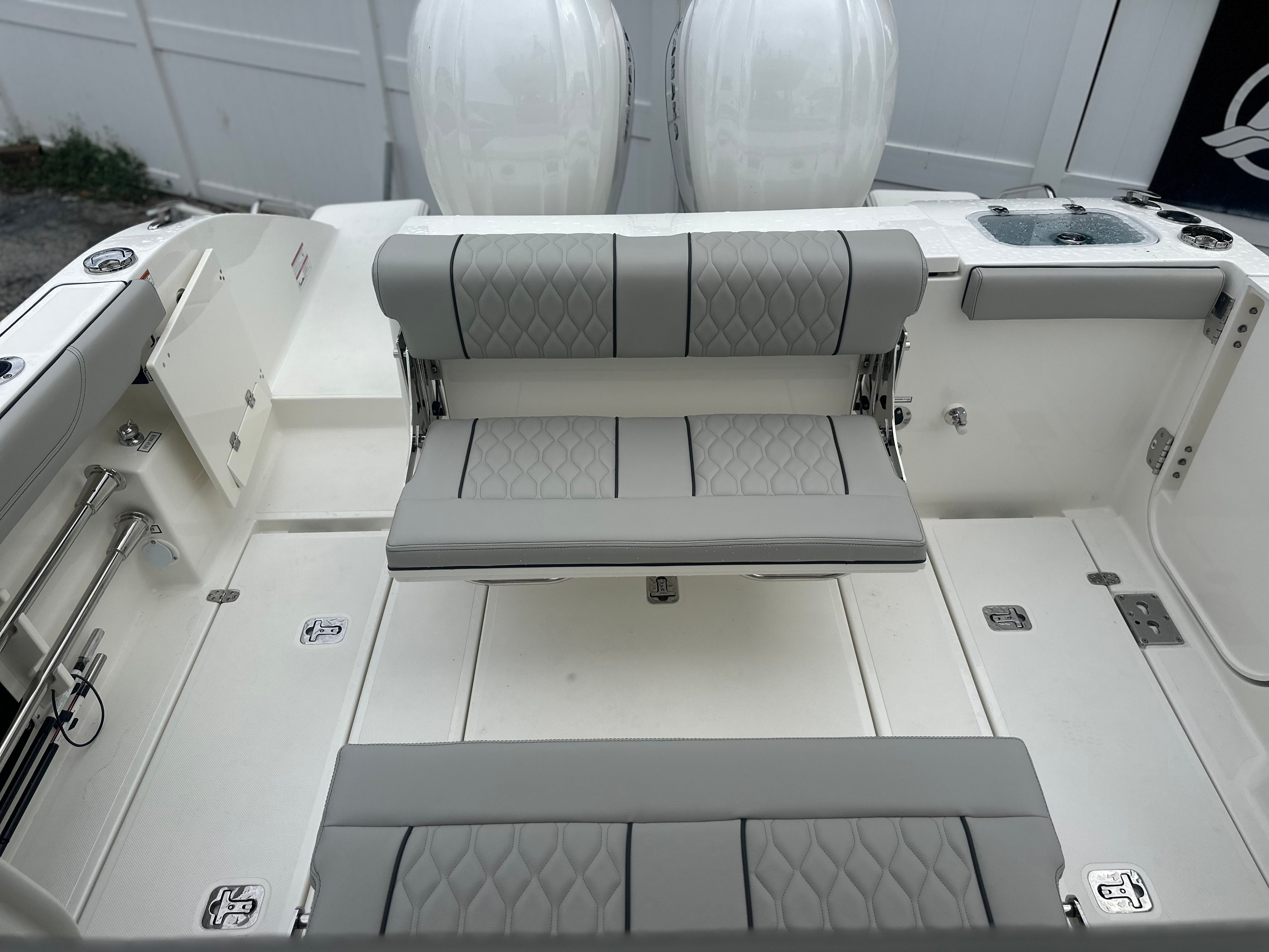 This Center Console boat for sale is equipped with a host of premium features designed to elevate your time on the water. The hullside boarding door ladder provides easy access for swimmers and guests, while dockside power with a battery charger ensures your electronics and amenities are always ready for use. The all-color spectrum underwater lights, mid-level accent lights, and blue LED lighting create a vibrant and inviting ambiance, perfect for evening cruises or entertaining friends and family. Every detail of the Pursuit S 288 has been thoughtfully designed to enhance comfort, safety, and enjoyment.