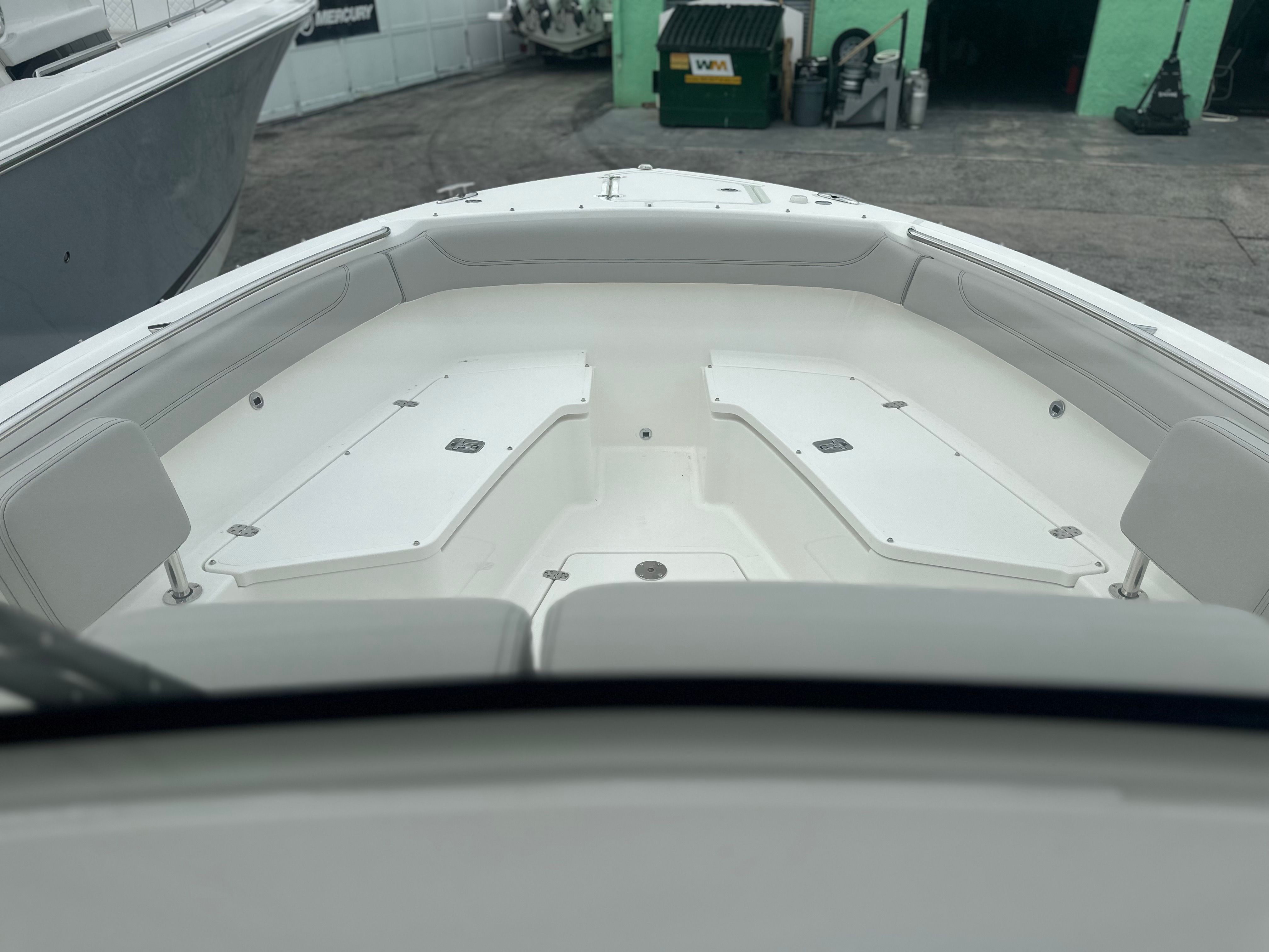 The 2026 Pursuit S 288 Center Console is a 30-foot marvel that combines modern design with cutting-edge technology. Pursuit boats are renowned for their craftsmanship, and the S 288 model exemplifies this reputation with its Fresh White hull color and Platinum Boot Stripe accented with Platinum details. The Hardtop Liner also features a Fresh White finish, while the helm and footrest are elegantly styled in Carbon, creating a sophisticated and inviting atmosphere. Whether you’re cruising along the coastline or anchored at your favorite spot, this Pursuit boat for sale offers a striking presence and unmatched comfort.