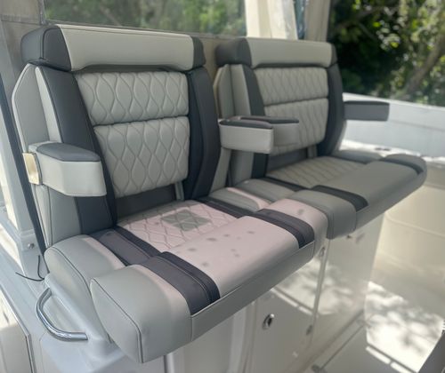 The Pursuit S 328 Center Console is loaded with premium features that elevate your boating experience. The Seakeeper Gyro Stabilization System dramatically reduces roll, providing unmatched stability and comfort even in choppy conditions. The helm console, finished in a sophisticated Carbon color, is complemented by a Fresh White hardtop liner, creating a clean and modern aesthetic. Inside, the Tranquil Sea Interior Package offers a serene and inviting atmosphere, perfect for relaxing after a day of adventure. The inclusion of a diesel genset and cabin air conditioning ensures that you and your guests stay comfortable, no matter the weather or time of day. Every detail of the S 328 is crafted to enhance your enjoyment and make every outing memorable.