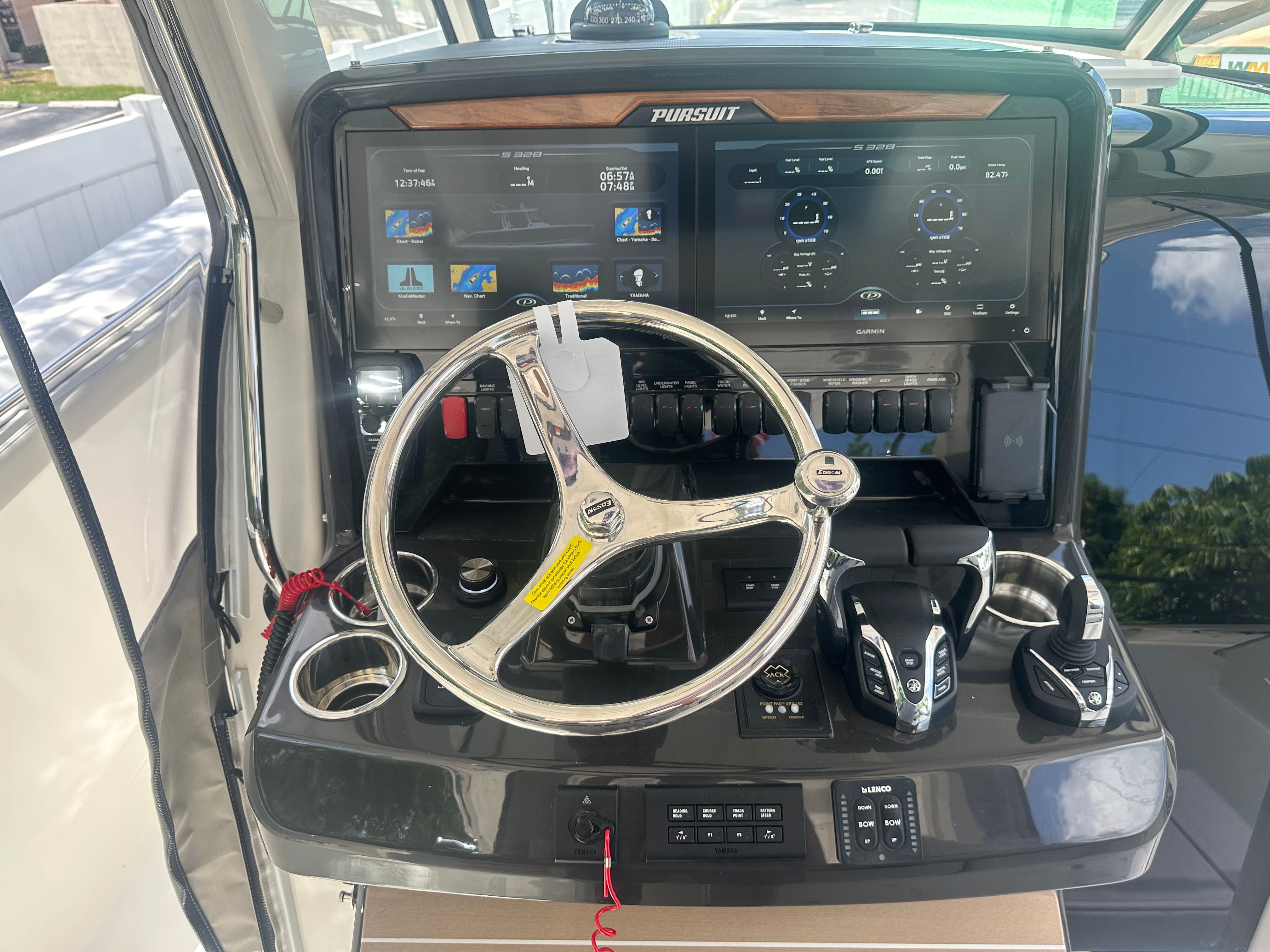 At the heart of the Pursuit S 328 are twin Yamaha Pearlescent White F350 engines, delivering a combined 700 horsepower. These powerful outboards are renowned for their reliability, smooth operation, and impressive fuel efficiency, making them ideal for both high-speed cruising and leisurely outings. The advanced Helm Master Full Maneuverability system provides precise control and effortless docking, allowing you to navigate tight spaces and challenging conditions with confidence. Whether you are chasing the horizon or exploring hidden coves, the S 328’s performance capabilities ensure a thrilling and responsive ride every time you hit the water.