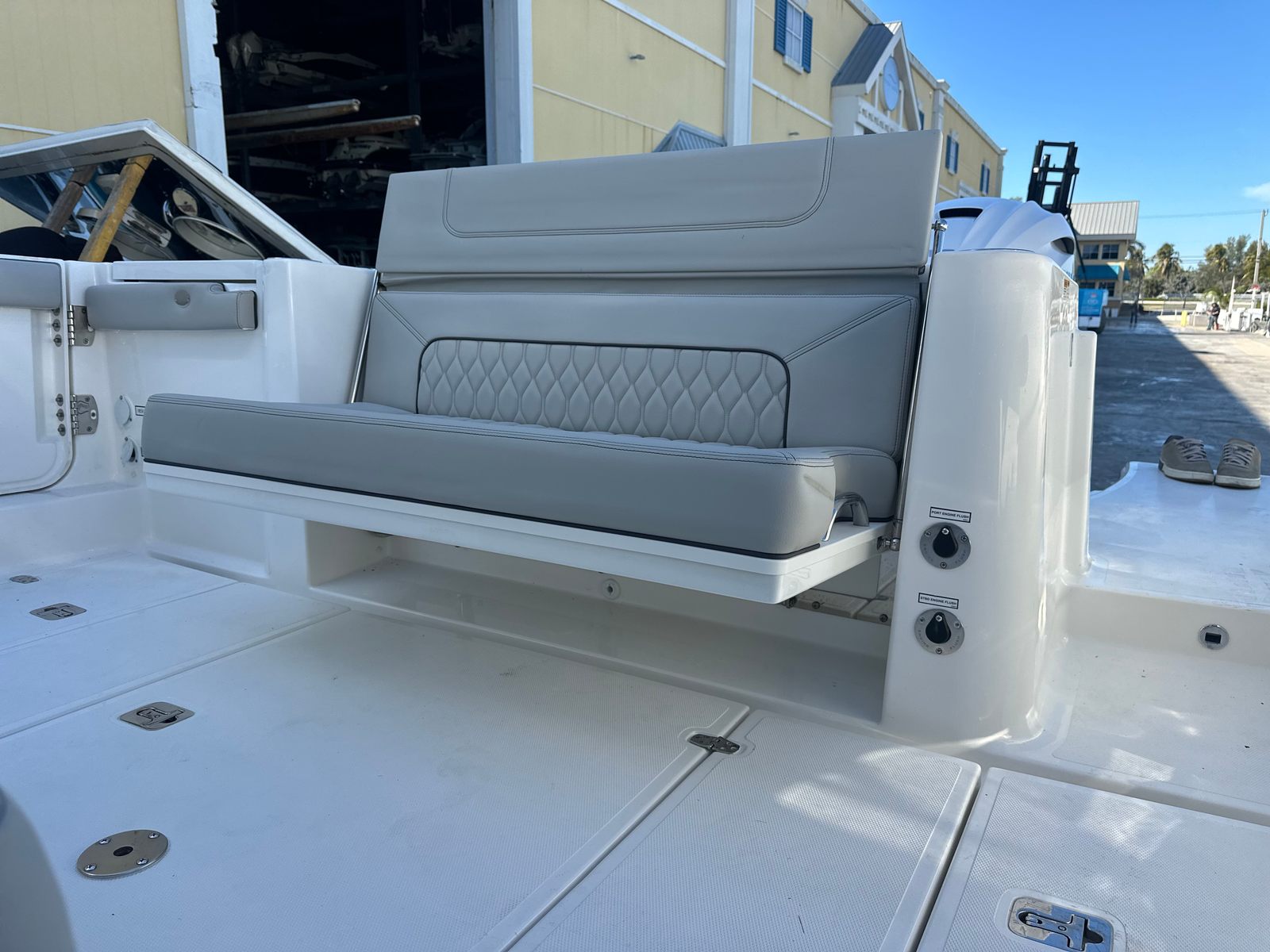 Power and precision are at the heart of the Pursuit S 358. Equipped with twin Yamaha F450S engines, this Center Console boat boasts a combined 900 horsepower, delivering exhilarating speed and smooth handling. The Yamaha Twin F450S Full Maneuverability system ensures effortless control, whether you’re docking in tight spaces or navigating open waters. This advanced propulsion setup provides the reliability and responsiveness that seasoned boaters crave, making every outing a thrilling experience.