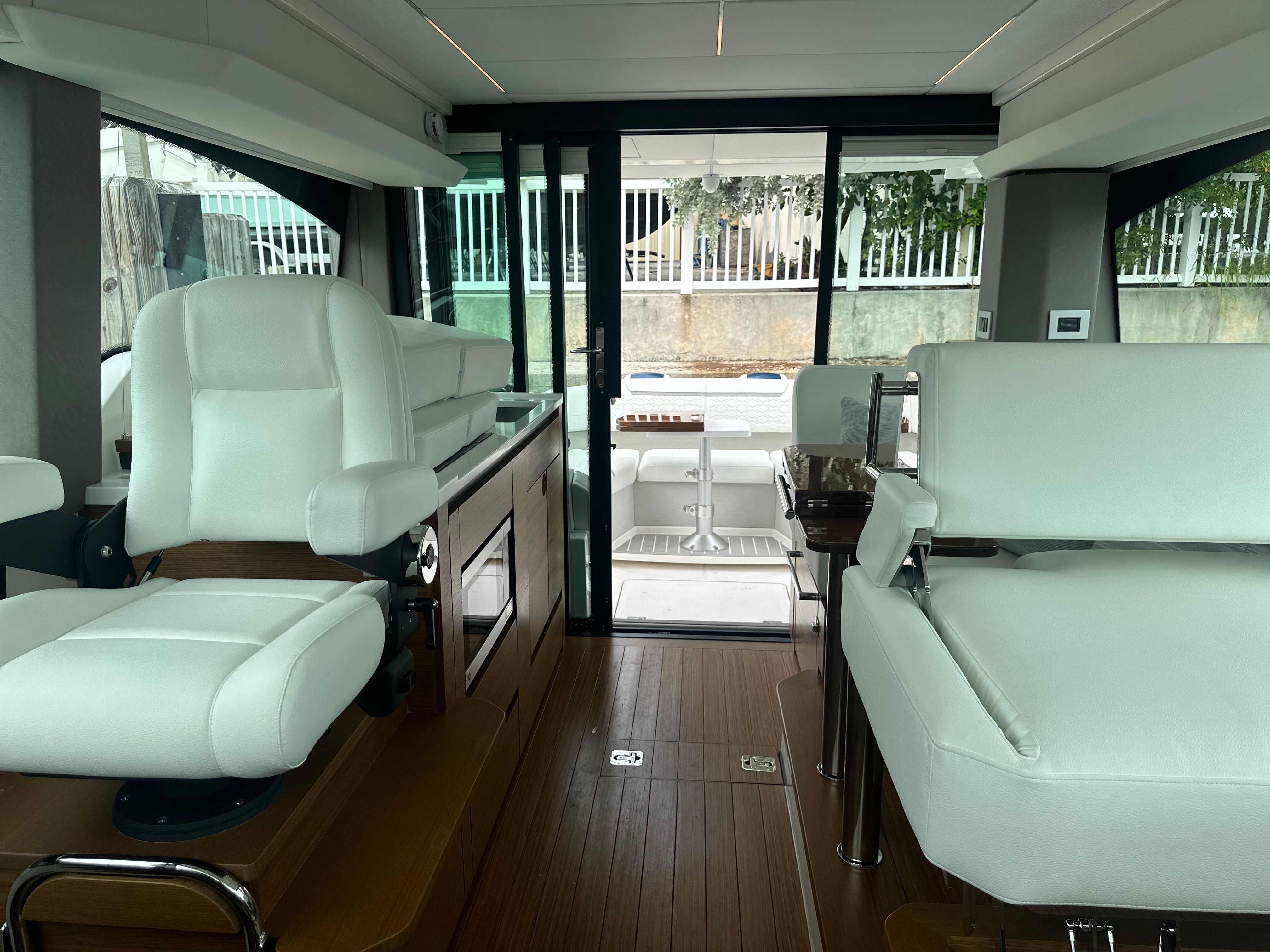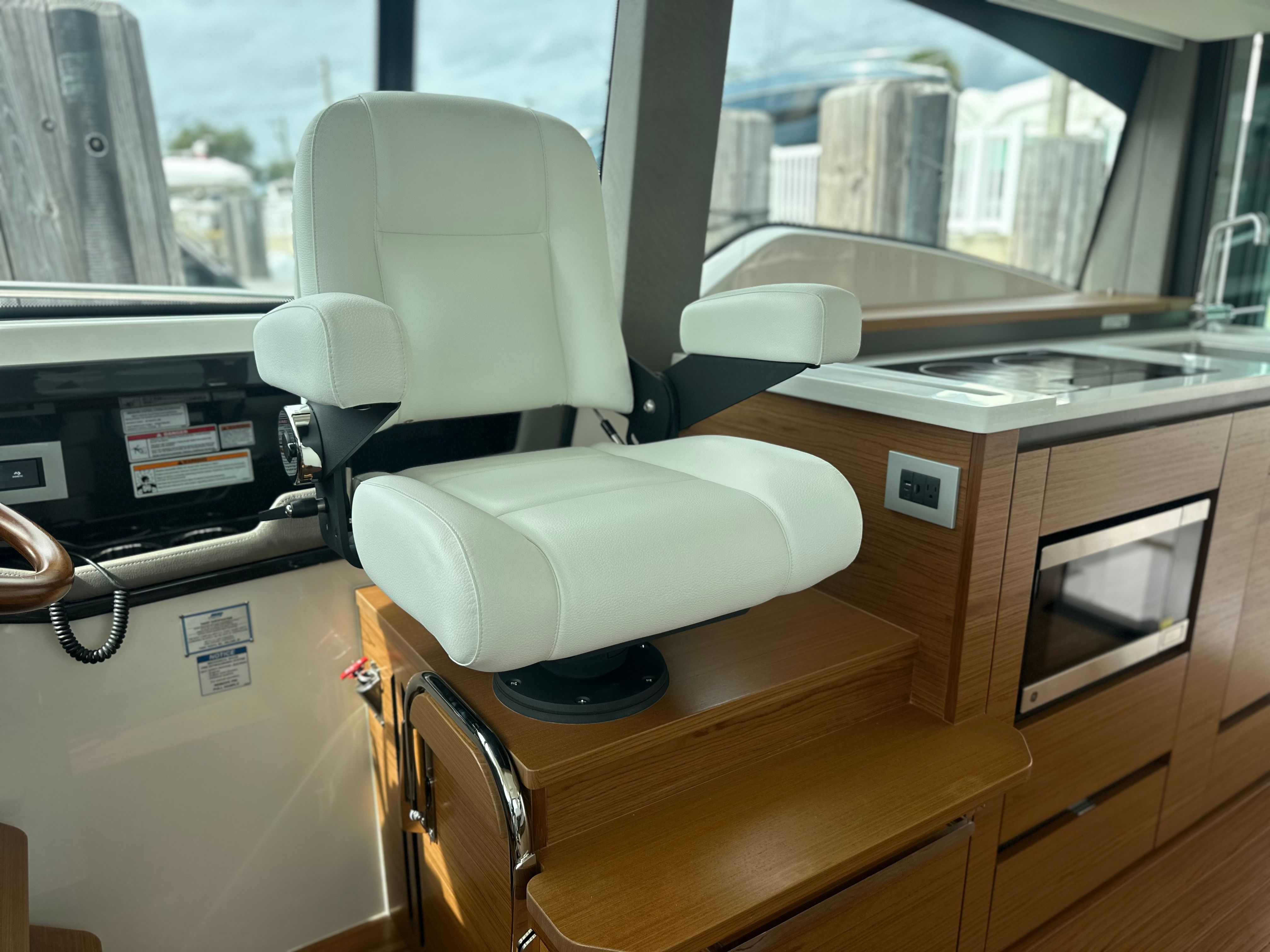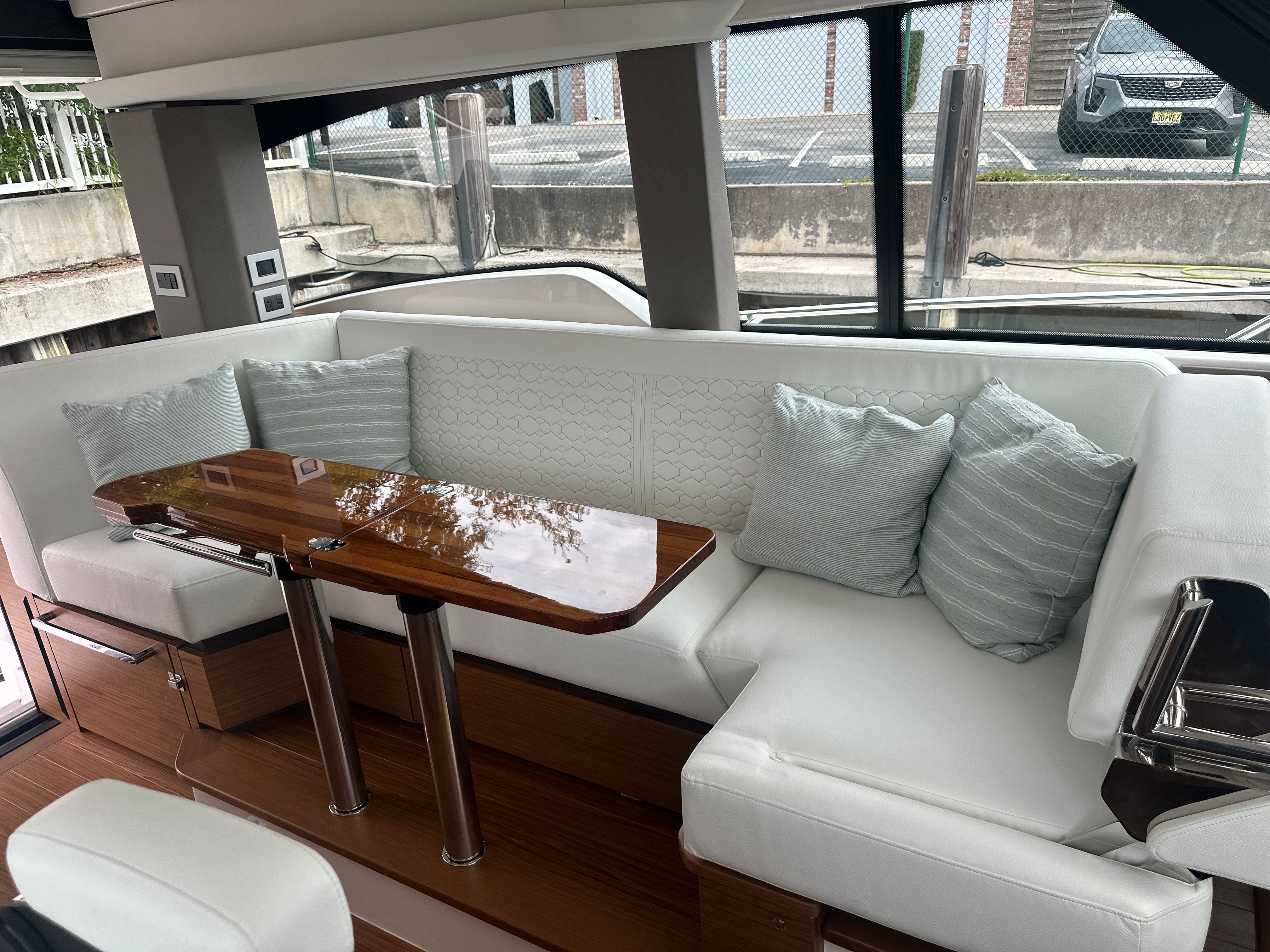 The Tiara Yachts 43 LE is as practical as it is luxurious, offering a range of features that make ownership easy and enjoyable. The oil changer for the generator and Electrosea Strainer reduce maintenance time, allowing you to spend more time on the water and less time in the marina. The head macerator system and ample storage options make extended trips comfortable and convenient, while the joystick piloting system simplifies docking and maneuvering in tight spaces.Fuel efficiency is enhanced by the advanced Mercury V12 engines, allowing you to explore further without frequent refueling stops. The Syn Teak Deck is not only visually appealing but also easy to clean and maintain, ensuring that your yacht always looks its best. With dedicated spaces for fishing gear, refreshments, and entertainment, the 43 LE is designed to accommodate a wide range of activities and preferences.