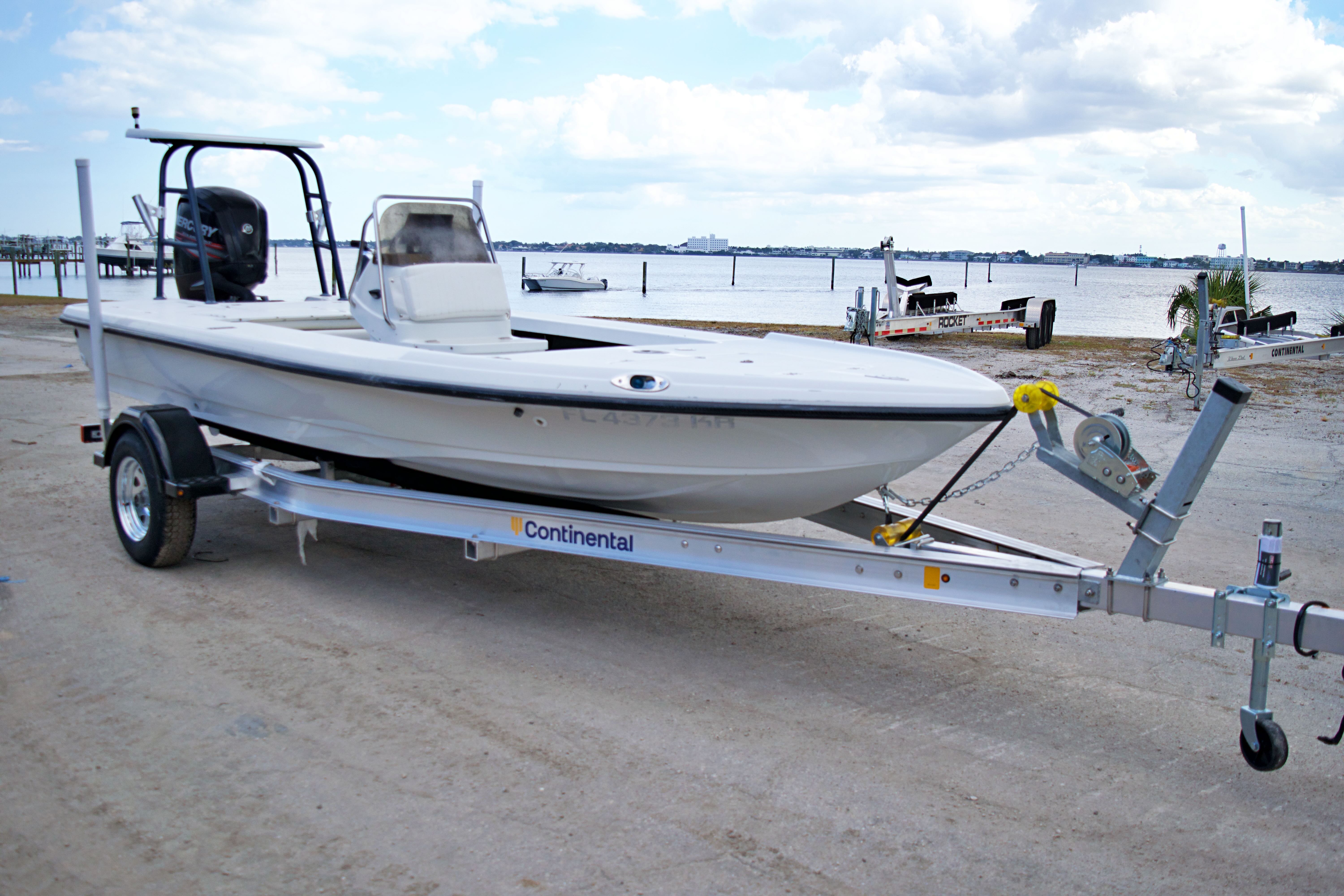 - NEW Trailer by Continental, featuring aluminum frame, stainless steel hardware, upright guide posts, LED lights, and brakes.