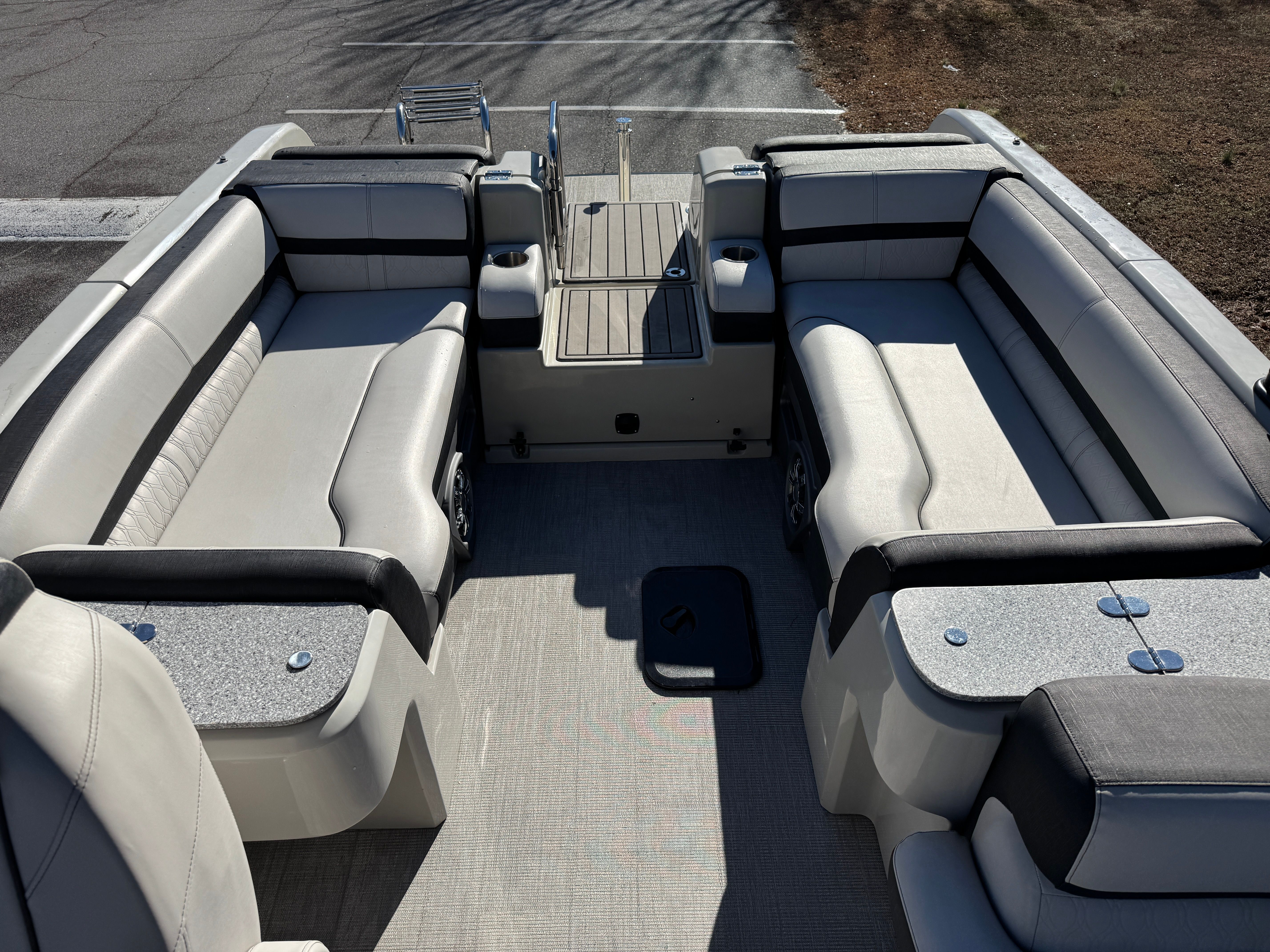 The Avalon Wake Toon is packed with features designed to enhance your time on the water. Its spacious 23-foot deck offers ample room for guests, making it a fantastic choice for social gatherings and family outings. The pontoon’s layout is thoughtfully designed to maximize comfort and convenience, with plenty of seating and open space for relaxation or activities.Special features of the Avalon Wake Toon include a powerful engine with 230 hours of use, ensuring reliable performance and longevity. The pontoon’s construction reflects Avalon’s commitment to quality, with durable materials and attention to detail throughout. Every aspect of the boat is engineered to provide a smooth, stable ride, making it suitable for a wide range of recreational activities.