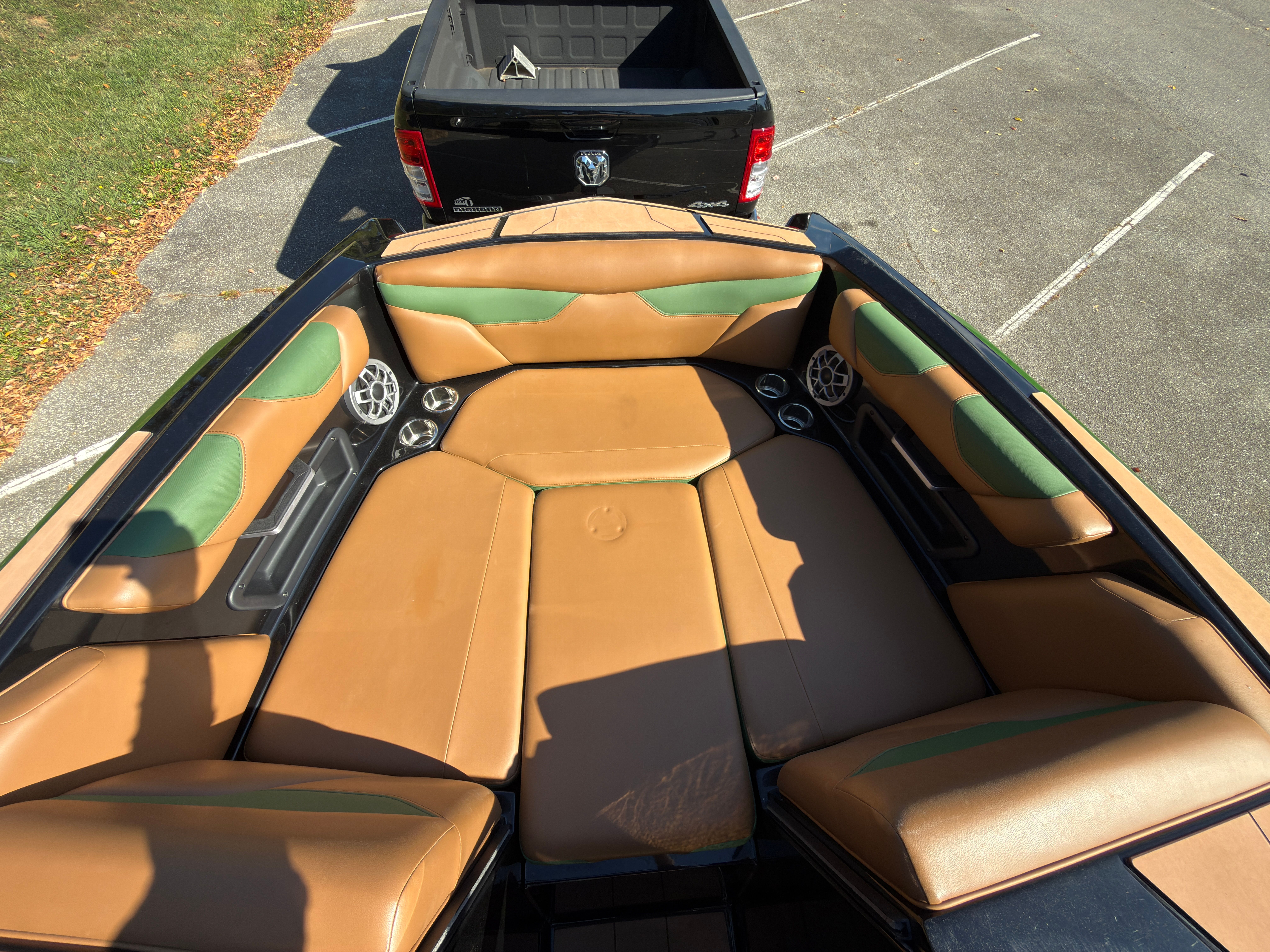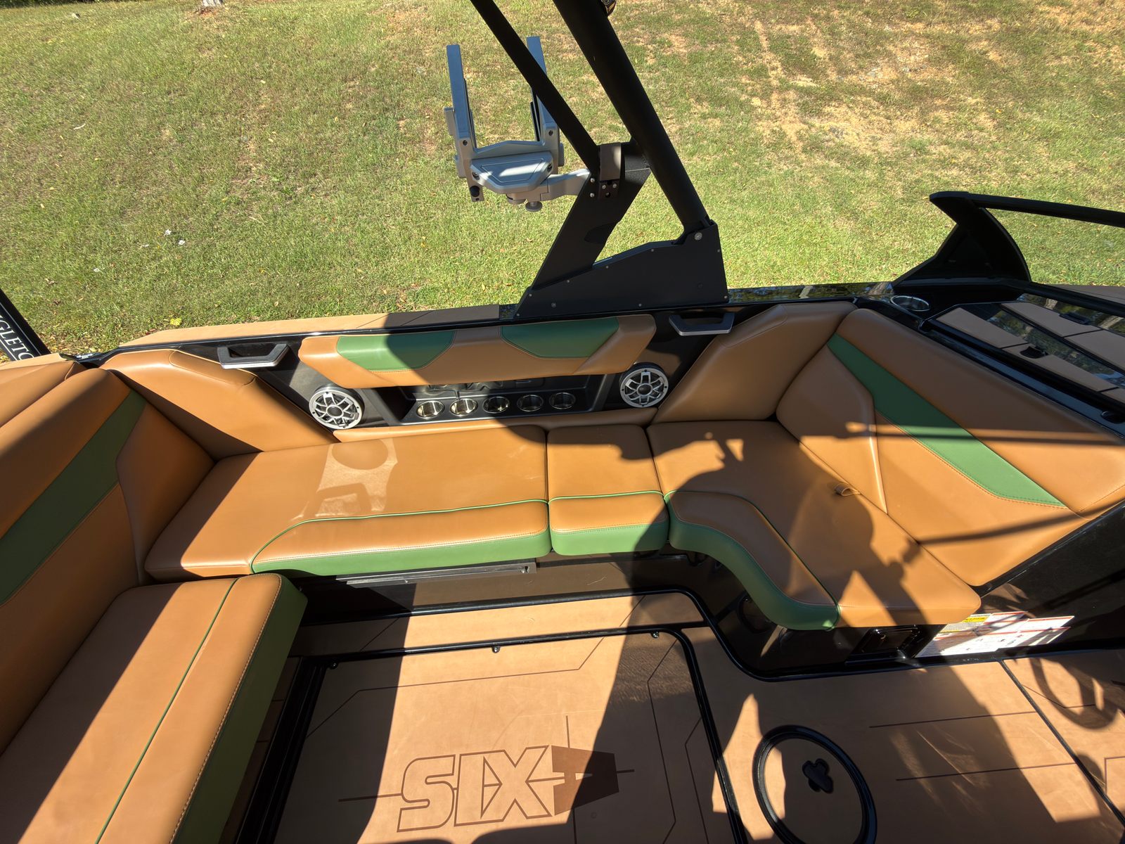 Notable features include: -Malibu M5Di engine (86 hours) -PTM Clamping racks -Extended Bimini -Wake view seating -Plug and play ballast -Cockpit soft grip flooring -Tower speakers -Matching trailer This boat is loaded out and is stunning in its Sumpter Green and Sepia Tan colorway.