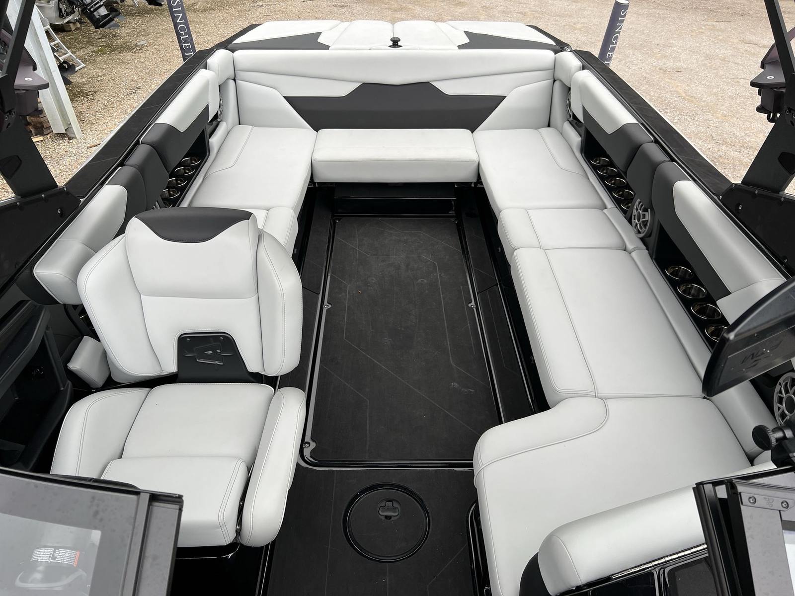 At the heart of this used Axis boat for sale is a powerful single engine boasting 360 horsepower, ensuring you have all the muscle you need to carve through the waves or pull multiple riders with ease. The robust engine delivers smooth acceleration and responsive handling, making it perfect for both high-energy wakeboarding sessions and leisurely cruises. The Axis A24’s hull is designed for optimal wake creation, giving riders the perfect launch pad for tricks and jumps, while also providing a stable and comfortable ride for everyone on board. With this level of performance, you can count on the Axis A24 to deliver excitement and reliability every time you hit the water.