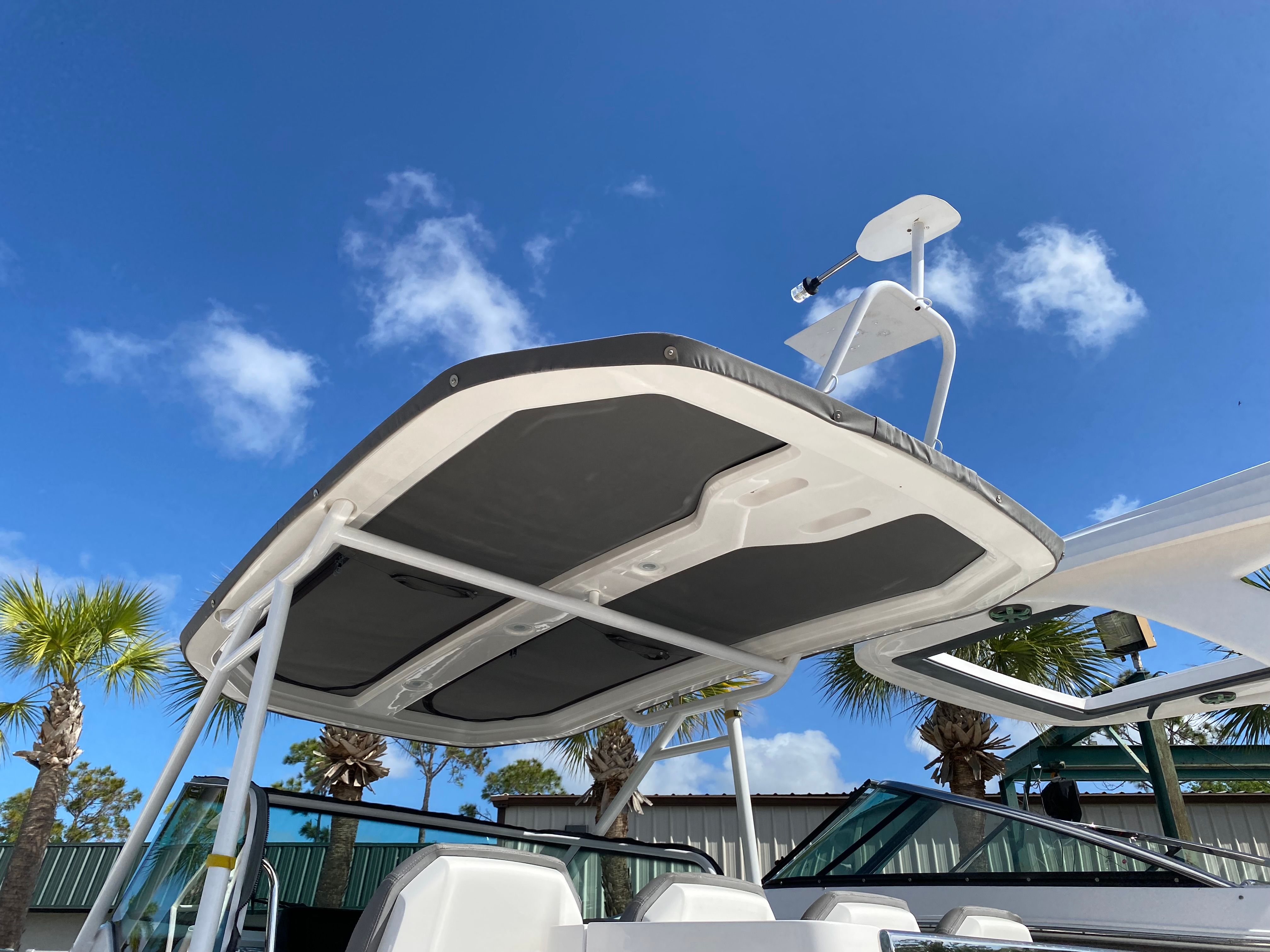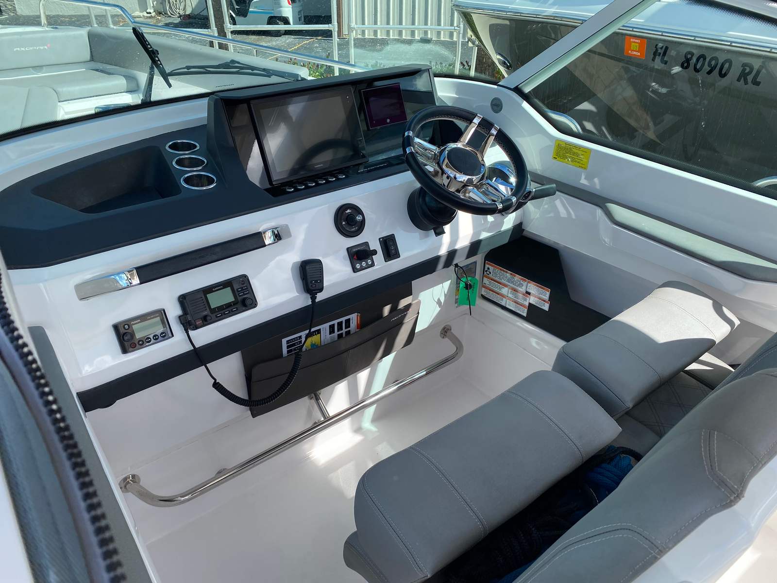 This Axopar boat for sale is designed with both functionality and leisure in mind. The 28.75-foot length provides ample space for socializing, relaxing, and enjoying the water. The T-Top design offers shade and protection from the sun, allowing you to stay comfortable during long days on the water. The layout is thoughtfully arranged to maximize seating and deck space, making it easy to move around and enjoy every inch of the cruiser. The high-quality materials and craftsmanship are evident throughout, ensuring durability and a premium feel.The Axopar 28 T-Top’s special features enhance the overall boating experience. The T-Top provides shelter and adds a sporty look, while the spacious deck allows for flexible seating arrangements and plenty of room for entertaining guests. The ergonomic helm station is designed for ease of use, giving the captain full control and excellent visibility. With its modern design and practical features, this cruiser boat for sale is ready to meet the demands of any adventure.