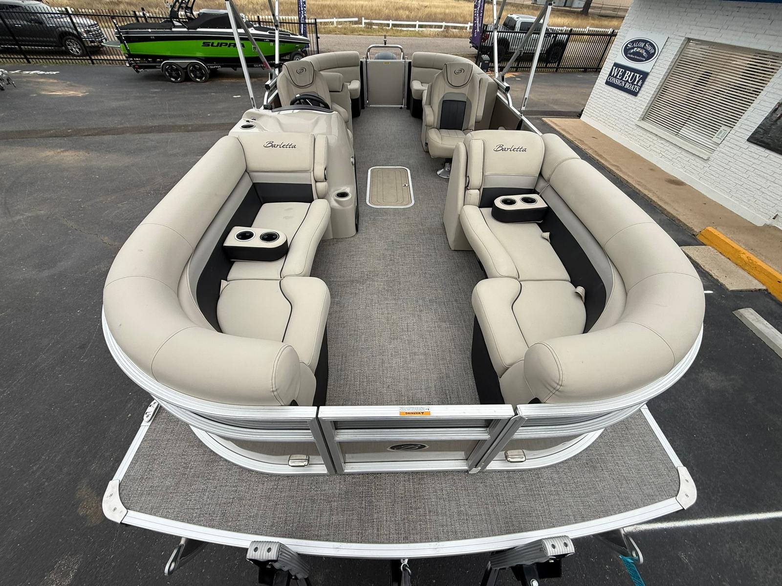 Now available on consignment at our Used Boat Super Center in Lewisville, this 2021 Barletta Cabrio C22QC is a clean, one-owner freshwater pontoon loaded with high-quality construction and premium comfort features. Powered by a Mercury 150 HP 4-Stroke Fuel-Injected engine with only 93 hours, this Cabrio delivers quiet performance, smooth handling, and reliable power for cruising, lounging, and family fun.