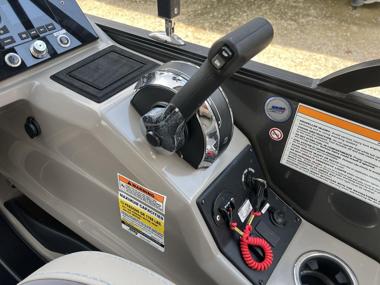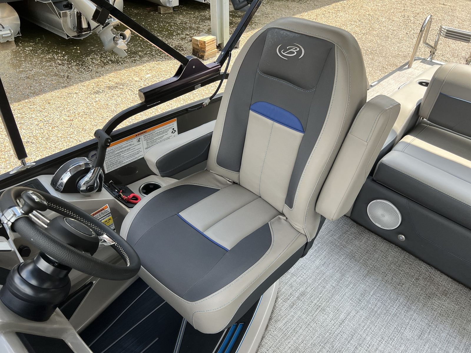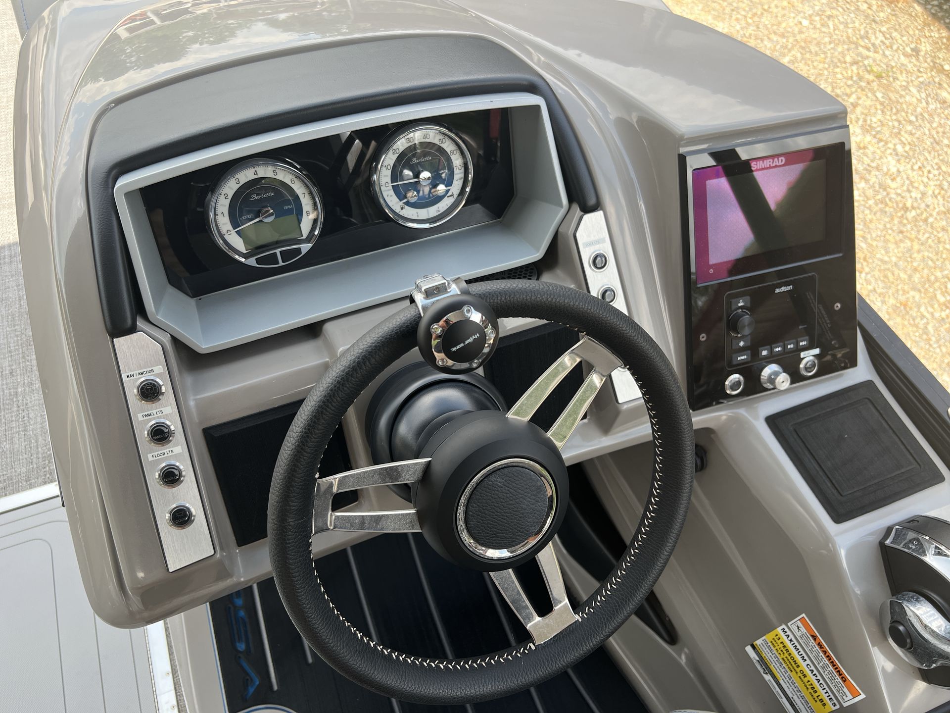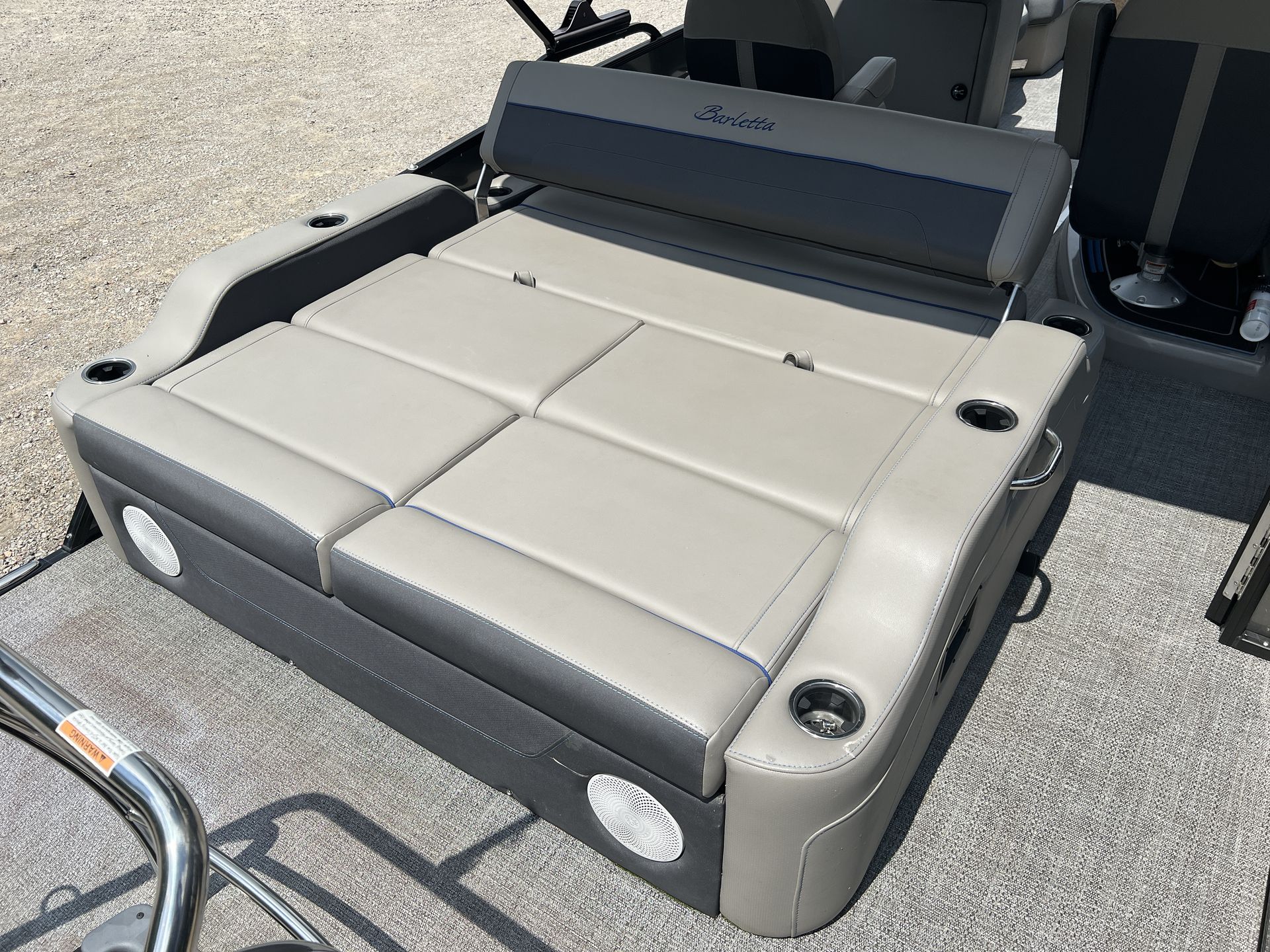 The Barletta Corsa 23UC is thoughtfully designed with features that enhance both comfort and functionality. Its spacious 23-foot deck provides plenty of room for guests to move around, lounge, and enjoy the scenery. The modern design elements and high-quality materials used throughout the boat create an inviting and stylish atmosphere. The seating is plush and ergonomically designed, ensuring that everyone on board can relax in comfort during long days on the water. The layout is optimized for socializing, with ample seating areas that encourage conversation and connection.This pontoon boat is also equipped with practical features that make every outing more enjoyable. The intuitive helm station puts you in complete control, with easy-to-read gauges and responsive controls that make navigation a breeze. The deck layout allows for easy movement and access to all areas of the boat, while the sturdy construction ensures safety and stability even in choppier conditions. The Barletta Corsa 23UC is built to last, with attention to detail evident in every aspect of its design.