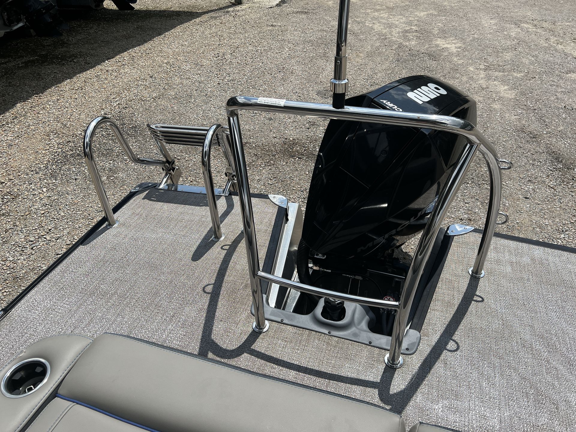 In addition to its recreational benefits, the Barletta Corsa 23UC is designed with practical considerations in mind. The efficient engine and thoughtful design contribute to excellent fuel economy, allowing you to spend more time on the water and less time at the pump. The boat's manageable size makes docking and maneuvering straightforward, even for those new to boating. Ample storage options throughout the boat ensure that you can bring along all the gear, snacks, and supplies you need for a full day of fun.The sturdy construction and reliable performance of this pontoon boat mean you can venture out with confidence, knowing that your vessel is built to handle a variety of conditions. Whether you are exploring new lakes, fishing with friends, or enjoying a quiet morning cruise, the Barletta Corsa 23UC adapts to your needs and enhances every outing.