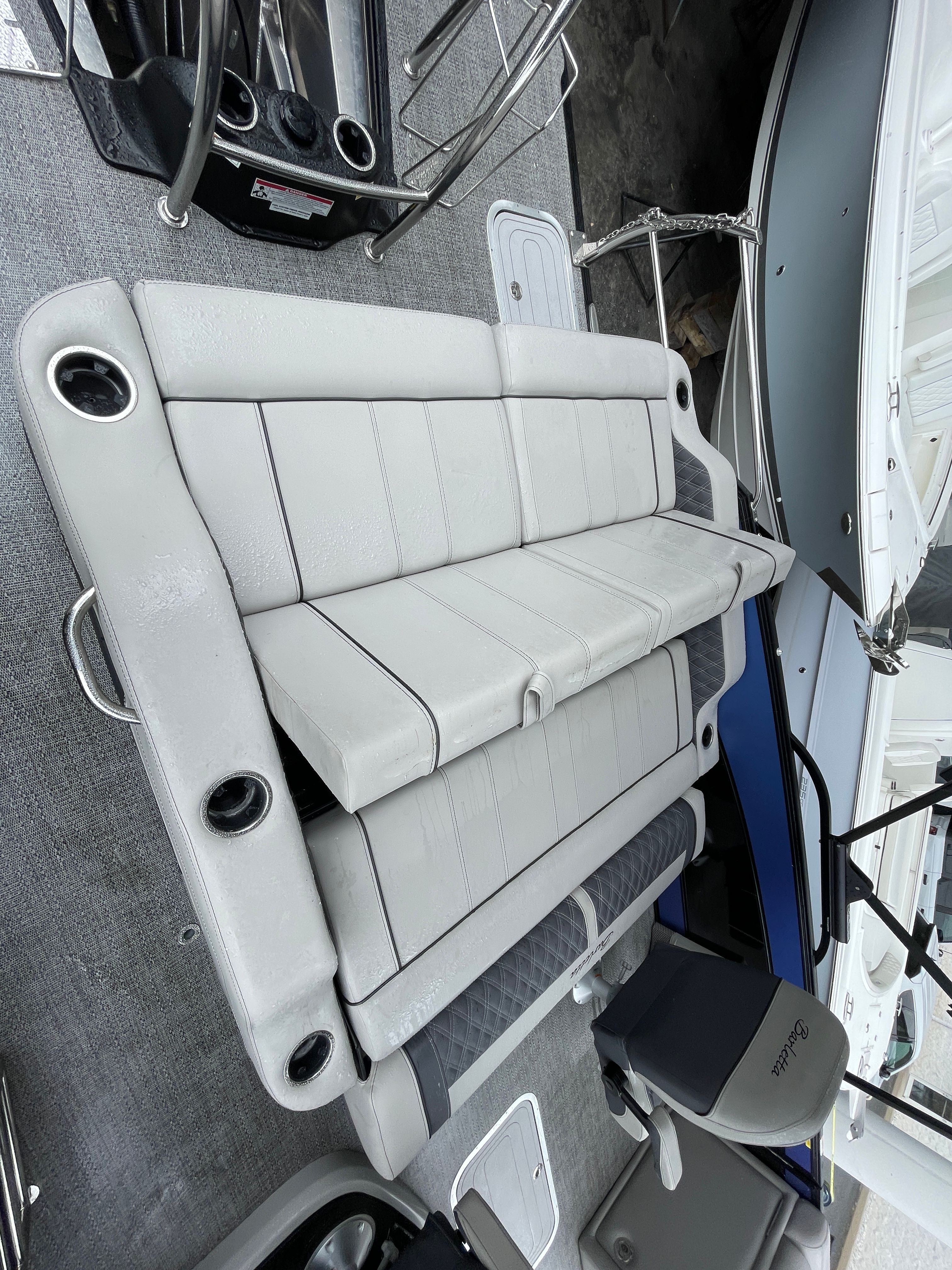 Beyond its recreational appeal, the Barletta Lusso L23UC offers practical benefits that make ownership a breeze. The generous deck space provides plenty of room for storing gear, coolers, and water toys, so you’re always prepared for a day of adventure. The boat’s layout is designed for easy movement and accessibility, making docking and boarding simple and stress-free.Fuel efficiency is another advantage of this pontoon boat, allowing you to spend more time on the water and less time refueling. The Lusso L23UC’s reliable engine and sturdy construction mean you can count on it for years of trouble-free operation, minimizing maintenance and maximizing enjoyment. Whether you’re planning a quick outing or an extended trip, this Barletta boat for sale offers the versatility and convenience you need to make the most of your boating lifestyle.