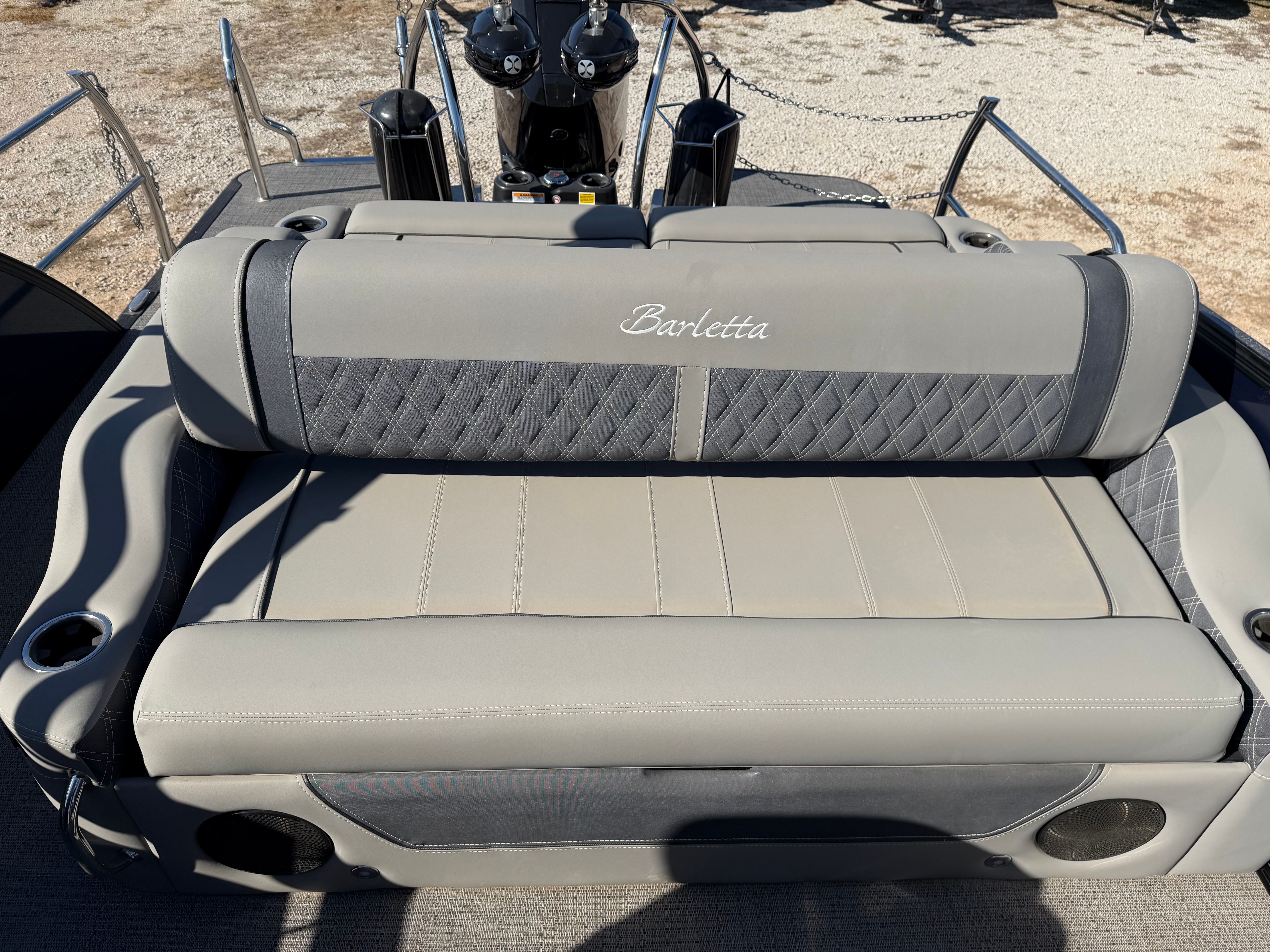Powered by a robust 350-horsepower engine, the Barletta Lusso L23UC delivers exhilarating performance on the water. With just 30 engine hours, this pontoon boat is barely broken in, ensuring reliability and longevity for seasons to come. The powerful engine provides smooth acceleration and impressive top speeds, making it ideal for water sports, cruising, or simply enjoying a leisurely ride. The Lusso L23UC’s advanced engineering ensures responsive handling and a stable ride, even when navigating choppy waters or making tight turns. Whether you’re towing a tube, heading to your favorite cove, or simply enjoying a sunset cruise, this Barletta boat for sale offers the performance you need for any adventure.