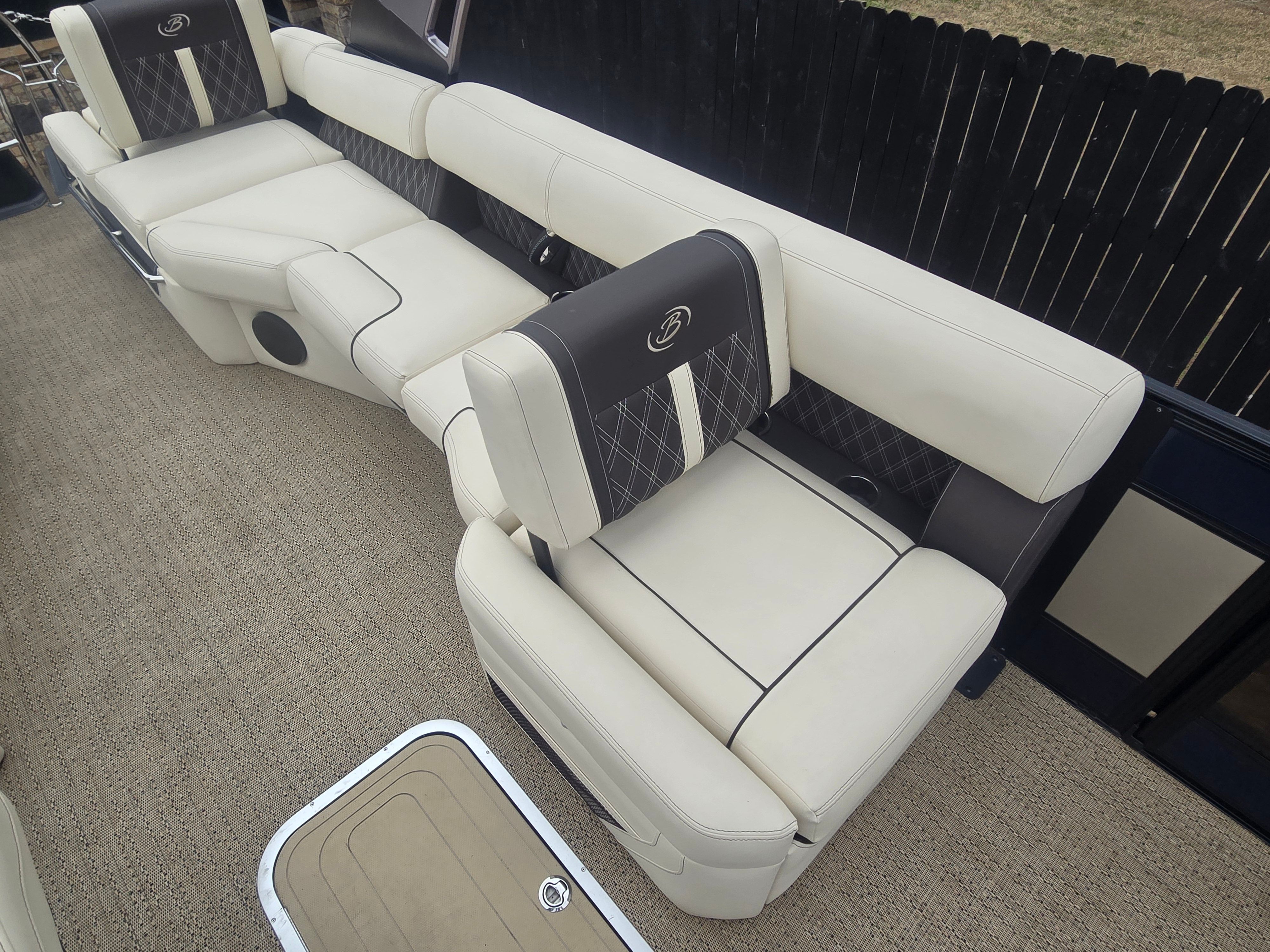 The 2024 Barletta Lusso L25MA is packed with features that enhance both comfort and convenience. Its spacious deck layout is perfect for socializing, with plenty of room for seating and movement. The pontoon’s premium upholstery and high-quality finishes create a luxurious atmosphere, while the thoughtful design ensures that every inch of space is used efficiently. The Lusso L25MA’s advanced engineering provides a stable and smooth ride, making it ideal for both leisurely cruises and more spirited adventures.This Barletta boat for sale is built with attention to detail, ensuring durability and long-lasting enjoyment. The pontoon’s modern styling is complemented by practical features that make every trip enjoyable, from easy-to-clean surfaces to strategically placed storage compartments. The Lusso L25MA’s innovative design sets it apart from other pontoon boats, offering a unique combination of style and substance.