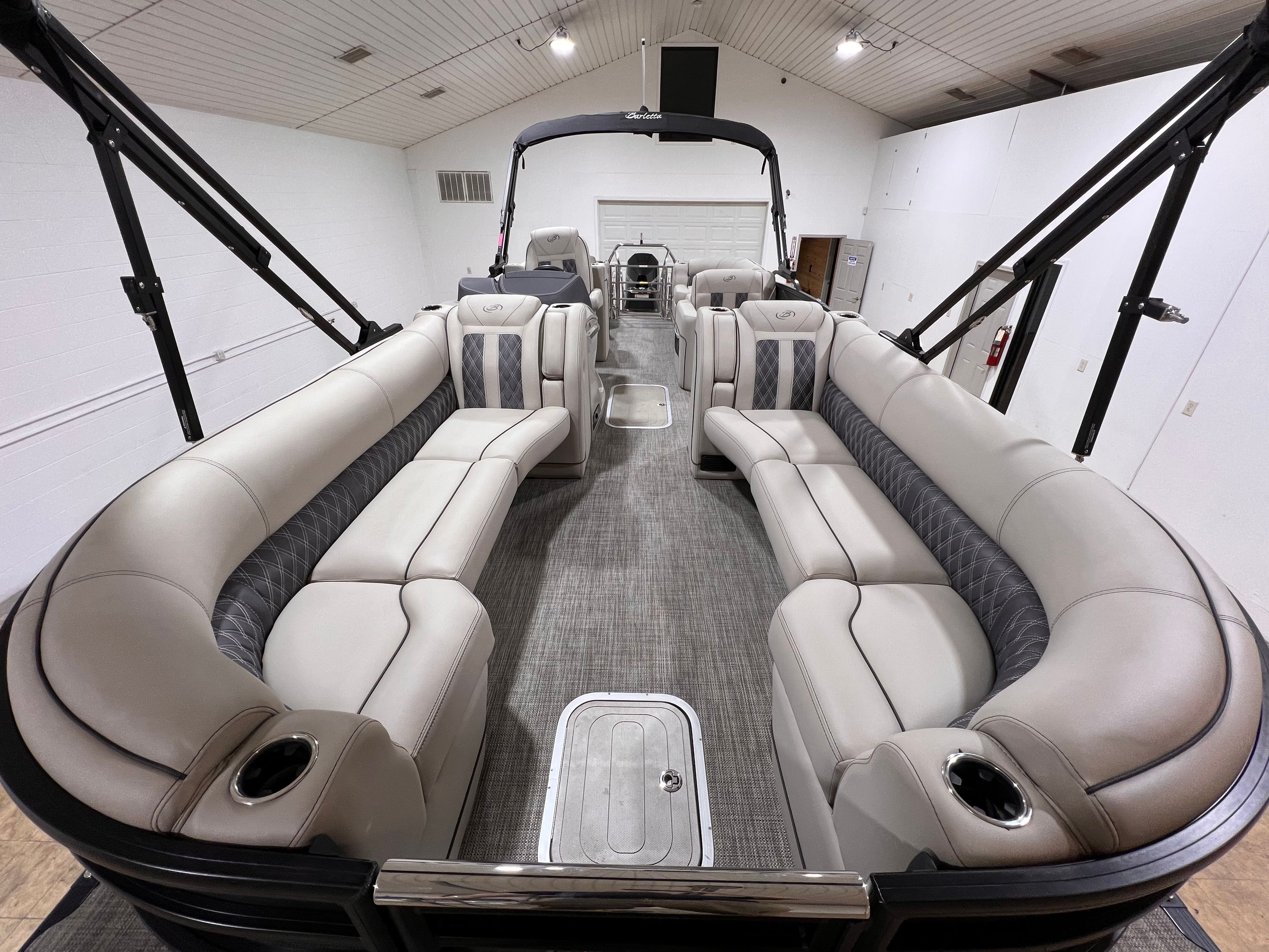 In summary, the 2022 Barletta L25QSS pontoon is a remarkable vessel that combines luxury, performance, and practicality in one stunning package. With its powerful 300-horsepower engine, spacious 27.5-foot layout, and thoughtful features, this used Barletta boat for sale is ready to deliver endless fun and relaxation on the water. Whether you are searching for a pontoon boat for sale for family outings, fishing trips, or social gatherings, the Barletta L25QSS is sure to exceed your expectations.Don’t miss your chance to own this exceptional pontoon boat. Contact the dealer today to learn more about the Barletta L25QSS and schedule your personal viewing. Your next adventure awaits on the water!