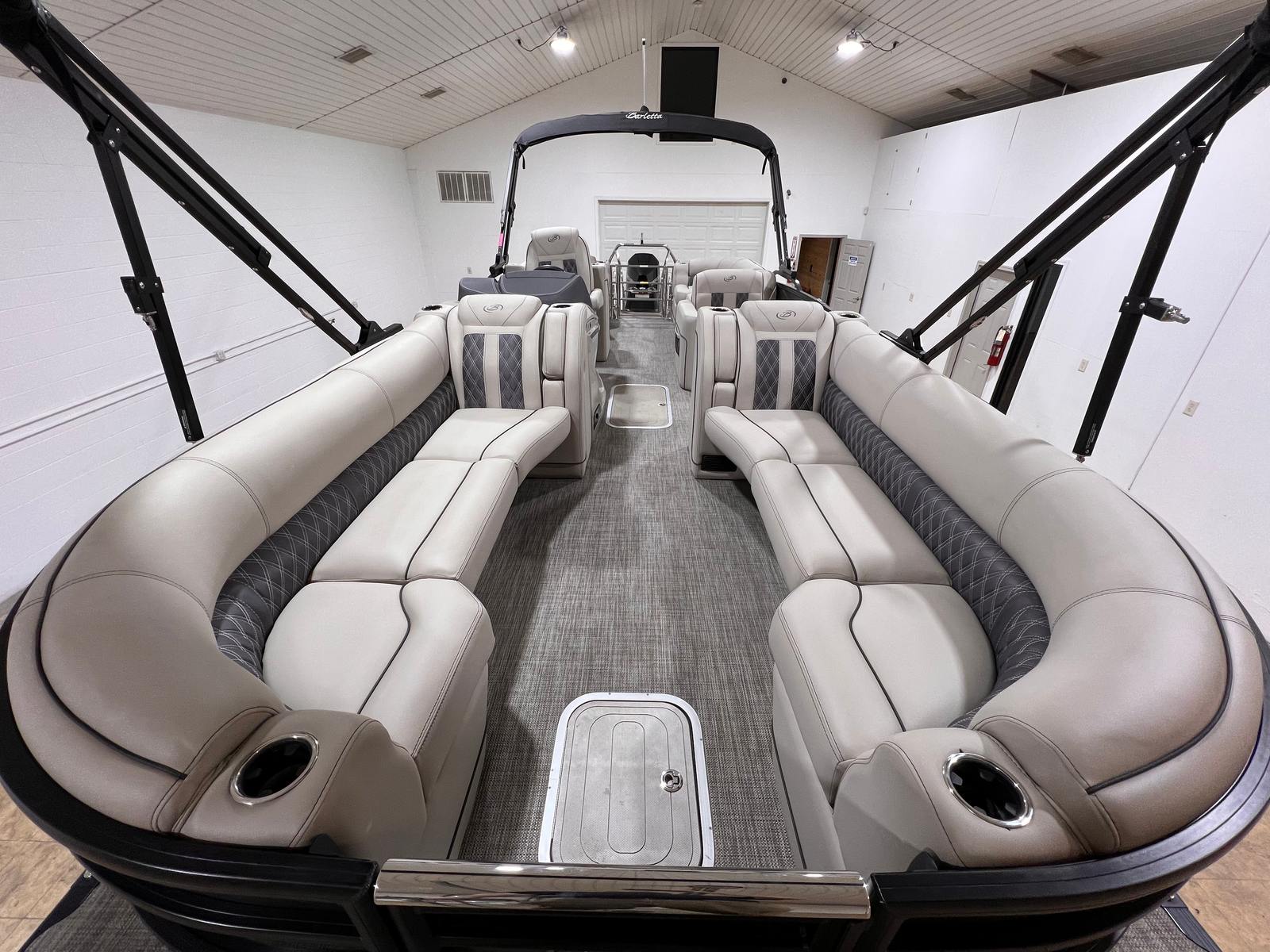 The 2022 Barletta L25QSS shines in a variety of scenarios, making it a versatile choice for any boating enthusiast. Planning a family outing? The spacious deck and comfortable seating ensure everyone has a great time, whether you are swimming, sunbathing, or sharing a meal on the water. Love fishing? The stable platform and ample storage make it easy to bring along all your gear and enjoy a productive day on the lake.For those who appreciate luxury getaways, this pontoon boat offers a refined and relaxing environment. Cruise to your favorite destinations in style, enjoy the sunset with loved ones, or host an unforgettable party on the water. The Barletta L25QSS adapts to your needs, providing the perfect backdrop for every adventure.