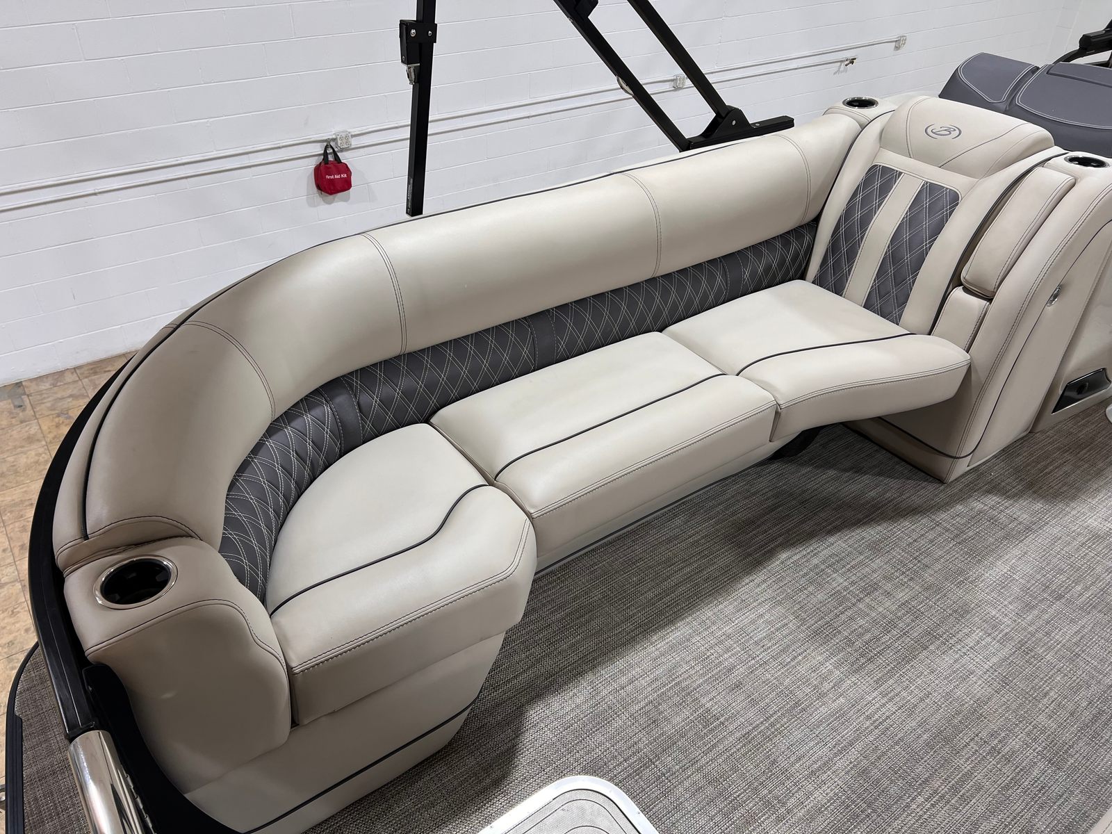 The 2022 Barletta L25QSS pontoon is designed to impress from every angle. With an overall length of 27.5 feet, this pontoon boat provides ample space for friends and family to relax, socialize, and make unforgettable memories. The sleek lines and modern styling of the Barletta L25QSS set it apart on any lake or river, making it a head-turner wherever you go. As a used pontoon boat, it has been well cared for and boasts only 271 engine hours, ensuring plenty of life and fun ahead.