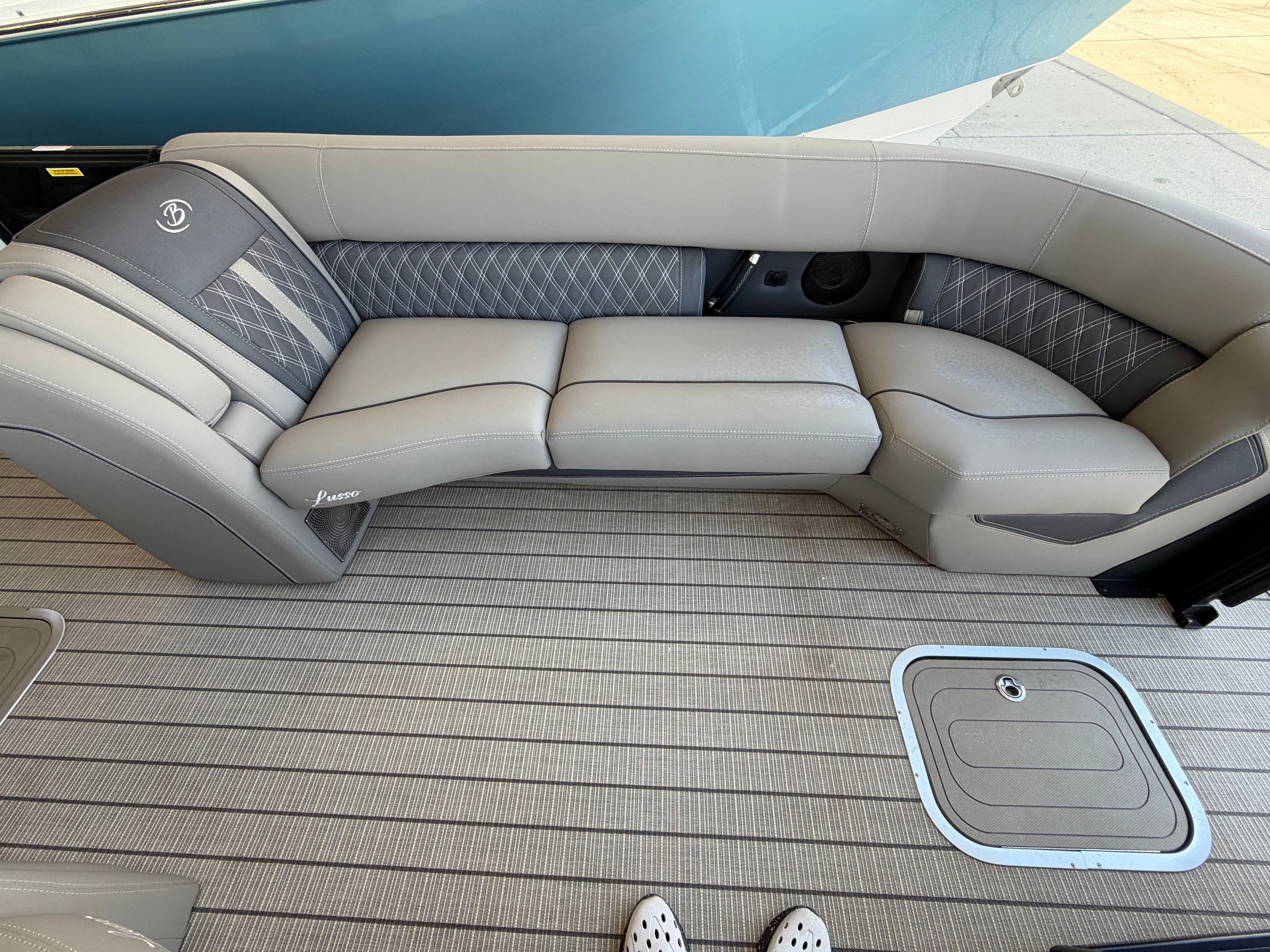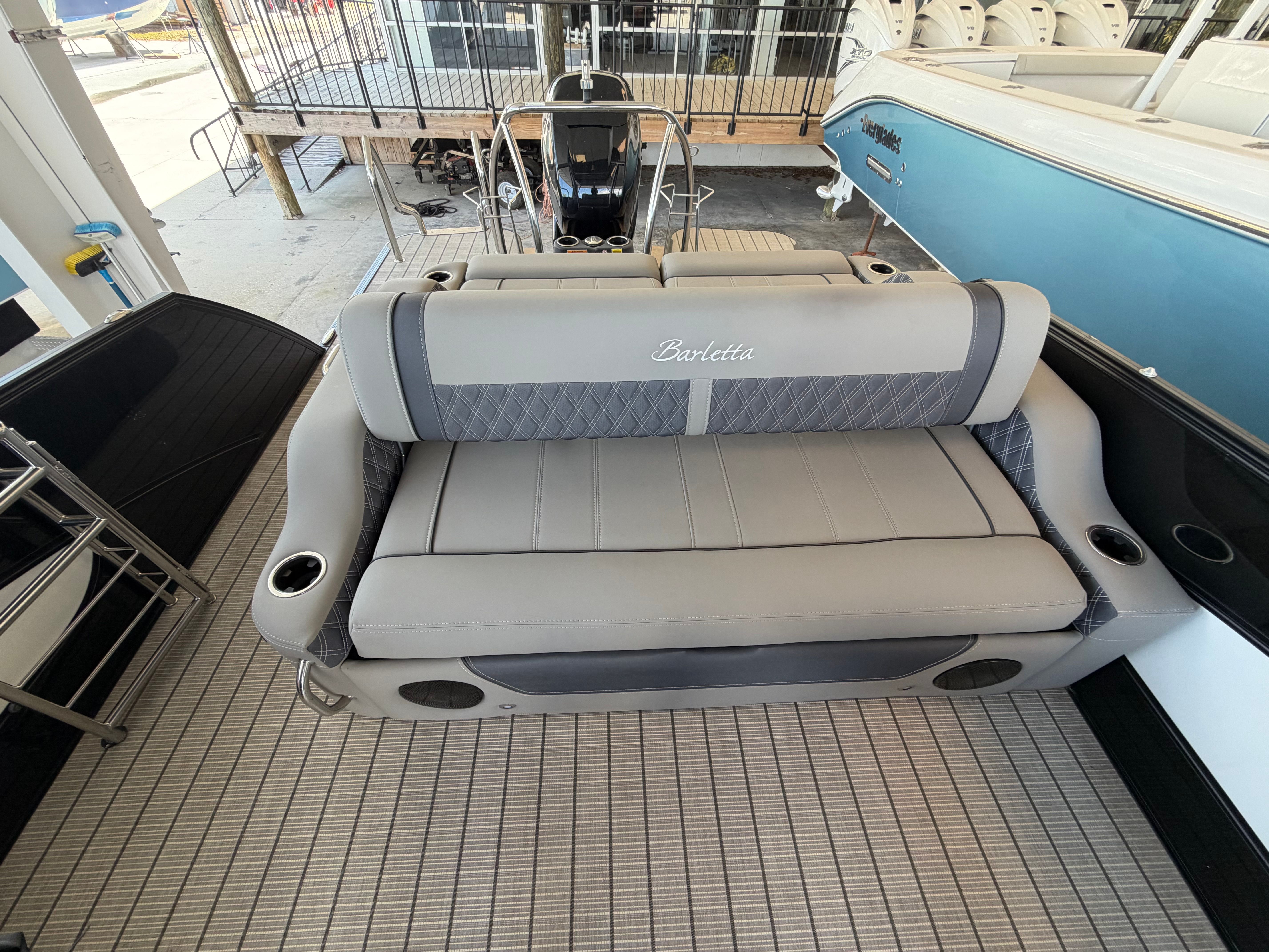 The Barletta Lusso L25UC is loaded with features designed to enhance your time on the water. Its spacious 27.5-foot deck offers plenty of room for lounging, dining, and socializing, while the high-quality upholstery and finishes create an inviting atmosphere. The pontoon’s innovative layout maximizes comfort and convenience, ensuring that every passenger enjoys a first-class experience. The Lusso L25UC’s advanced engineering provides a stable, smooth ride, even in choppy conditions, so you can relax and focus on making memories.