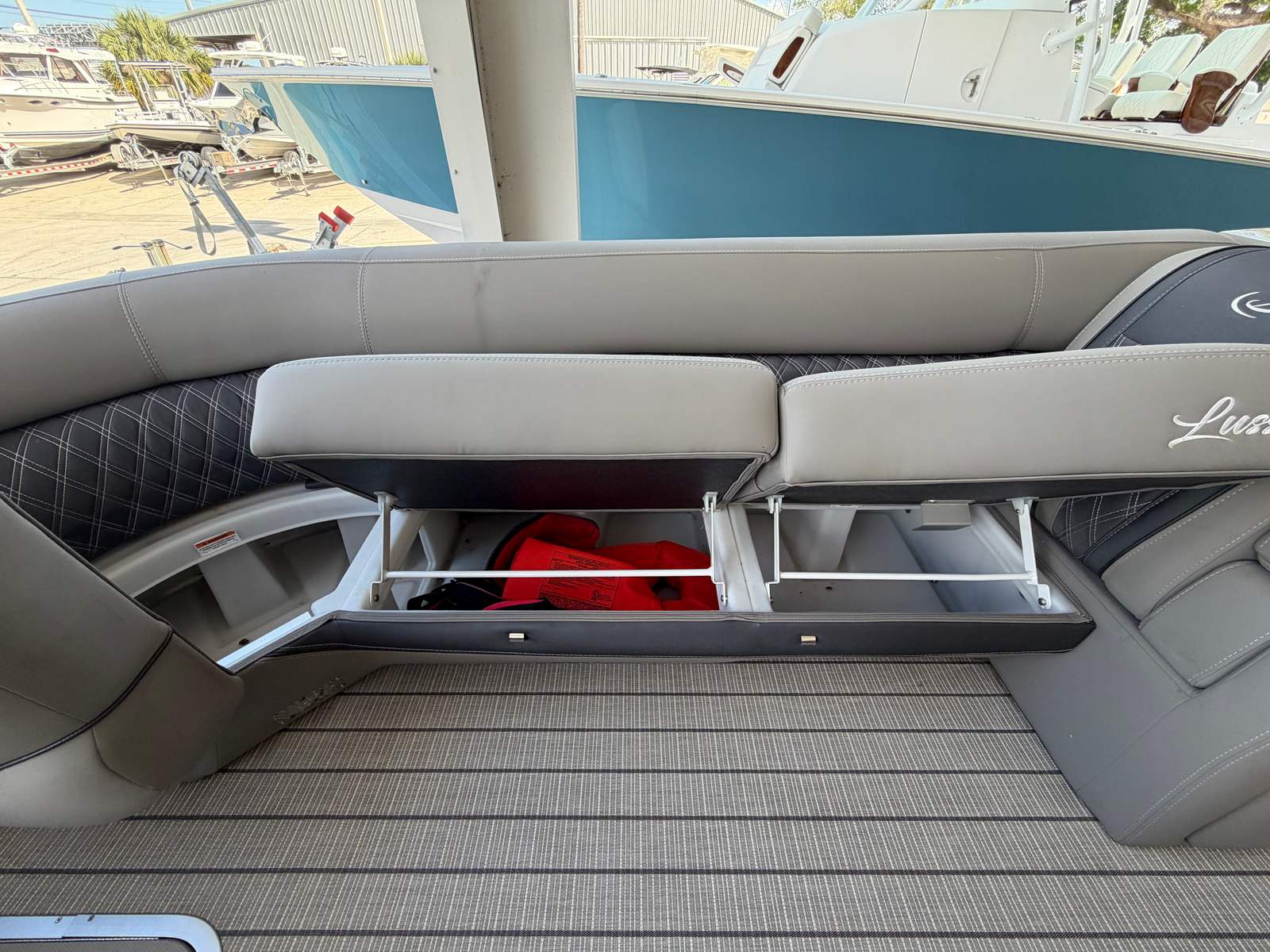 Powering this Barletta Lusso L25UC is a robust 350-horsepower engine, delivering exhilarating acceleration and smooth cruising across lakes, rivers, and coastal waters. With only 7 engine hours, you can enjoy the peace of mind that comes with a lightly used pontoon boat for sale. The single-engine setup ensures straightforward operation and maintenance, making it an ideal choice for both seasoned boaters and those new to the water. Whether you’re towing water toys, exploring new destinations, or simply enjoying a leisurely cruise, the Lusso L25UC’s performance will impress at every turn.
