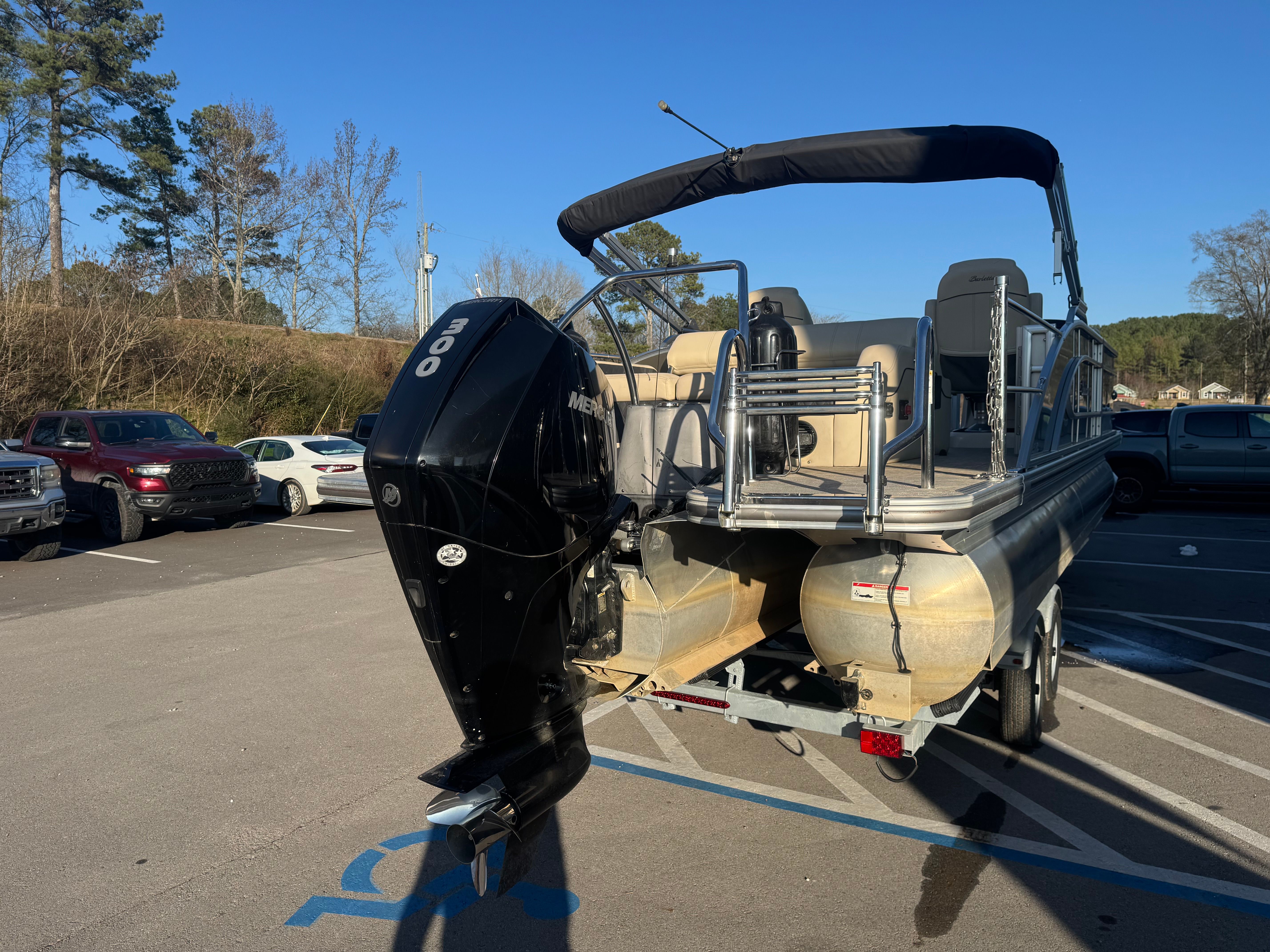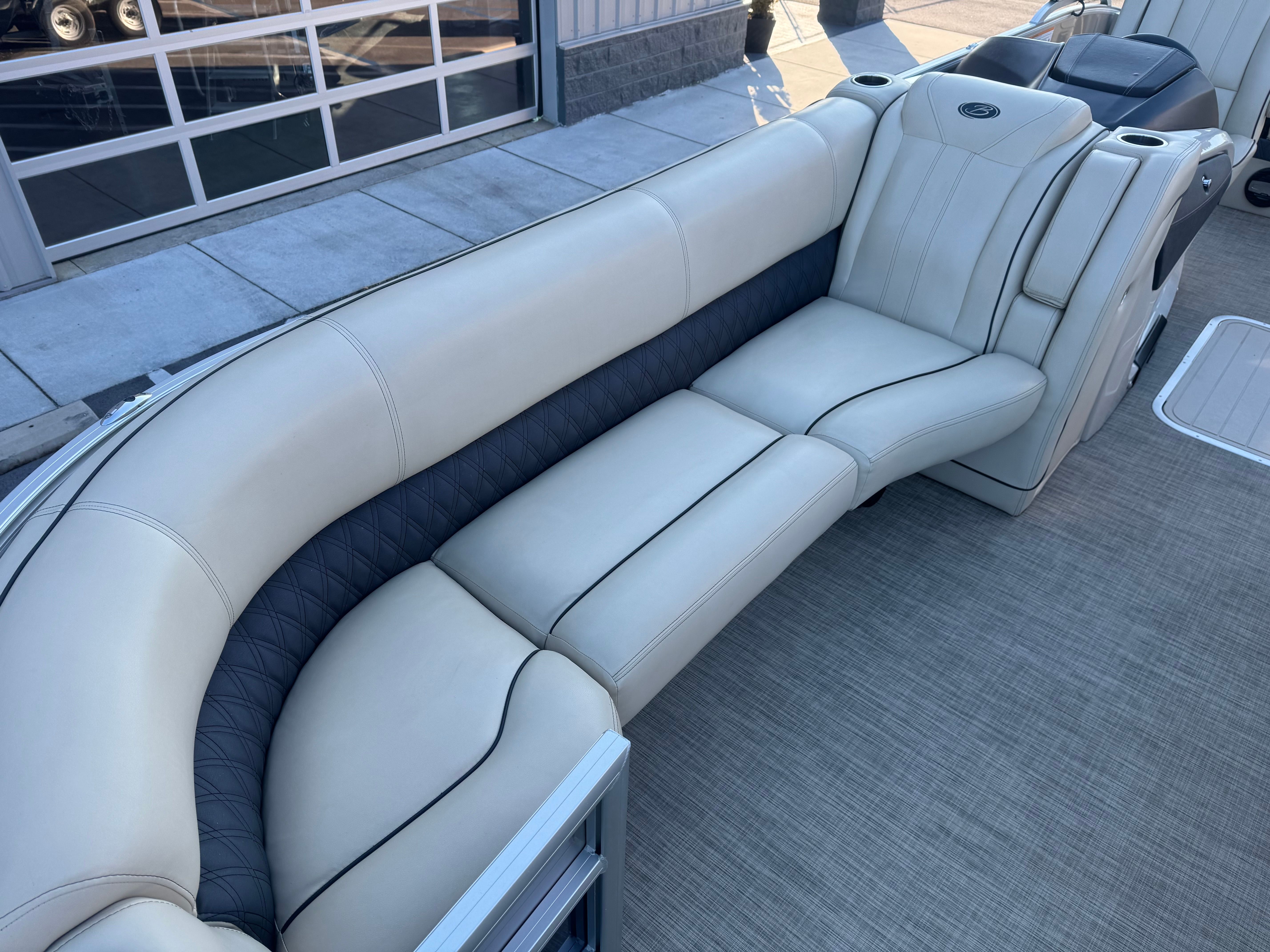 Powering the Barletta Lusso L25UC is a single engine with an impressive 300 horsepower. This robust engine ensures that you have all the power you need for smooth cruising, quick acceleration, and effortless handling. Whether you are gliding across calm waters or navigating busier channels, the Lusso L25UC delivers a responsive and exhilarating ride. The combination of a powerful engine and Barletta’s advanced pontoon design means you can enjoy both speed and stability, making every trip memorable.