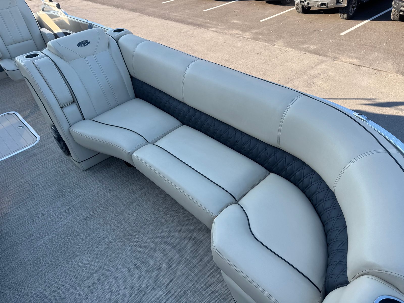 Owning a Barletta Lusso L25UC pontoon boat opens up a world of fun and relaxation. Imagine spending sunny afternoons cruising with friends, enjoying the gentle sway of the water, and making memories that will last a lifetime. The Lusso L25UC is designed for comfort, with plush seating and a spacious layout that invites you to stretch out and enjoy the ride. The social atmosphere on board is perfect for entertaining, whether you are hosting a family barbecue or a sunset cocktail party.The powerful 300-horsepower engine ensures that you can enjoy a variety of water sports, from tubing to wakeboarding, adding an extra layer of excitement to your outings. The smooth, stable ride makes it easy for everyone on board to feel comfortable, even when the water gets a little choppy. With the Barletta Lusso L25UC, every day on the water becomes an adventure.