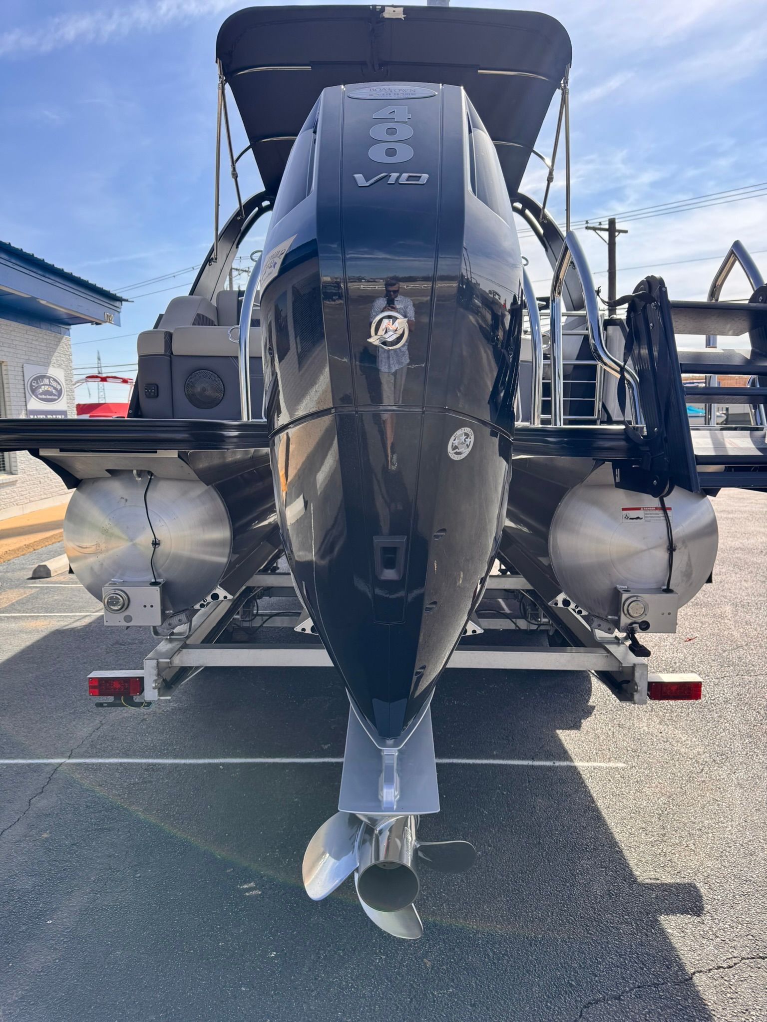 Now available at our Used Boat Super Center in Lewisville, this 2023 Barletta Lusso L25UCA is a one-owner, freshwater boat in excellent condition. Powered by a Mercury 400 V10 Four Stroke with 142 hours, this tri-toon delivers serious performance, smooth handling, and luxury comfort throughout.