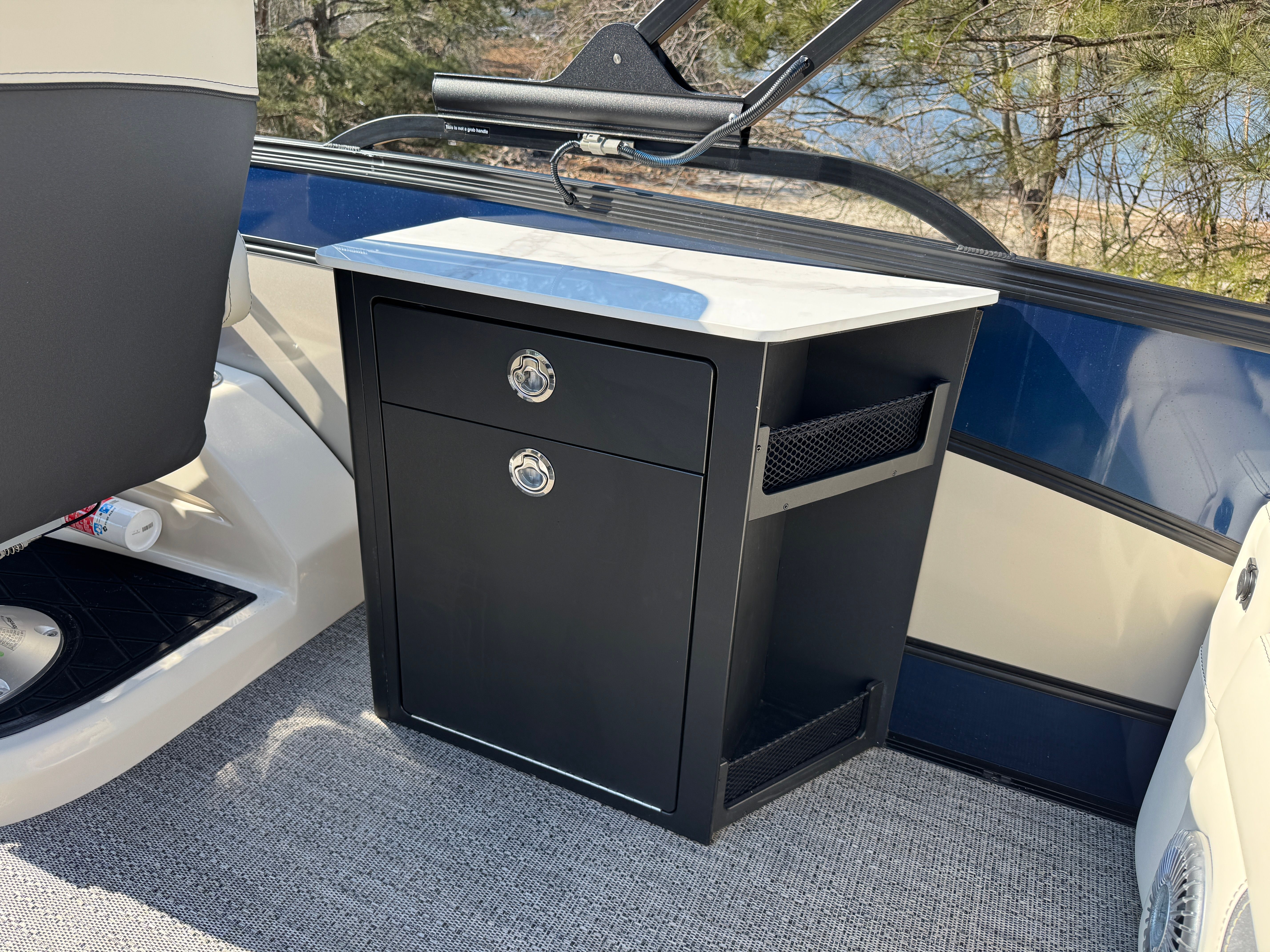 Beyond its luxurious appeal, the Barletta Lusso L25UE is designed with practicality in mind. The spacious deck provides plenty of storage options for gear, water toys, and personal items, keeping the area clutter-free and organized. The boat’s size and layout make docking and maneuvering straightforward, even for those new to pontoon boating.Fuel efficiency is another key advantage of this model. The combination of a single, high-performance engine and the pontoon’s hydrodynamic design helps maximize fuel economy, allowing you to spend more time on the water and less time refueling. Maintenance is simplified thanks to Barletta’s reputation for quality engineering and durable construction, giving you peace of mind with every outing.