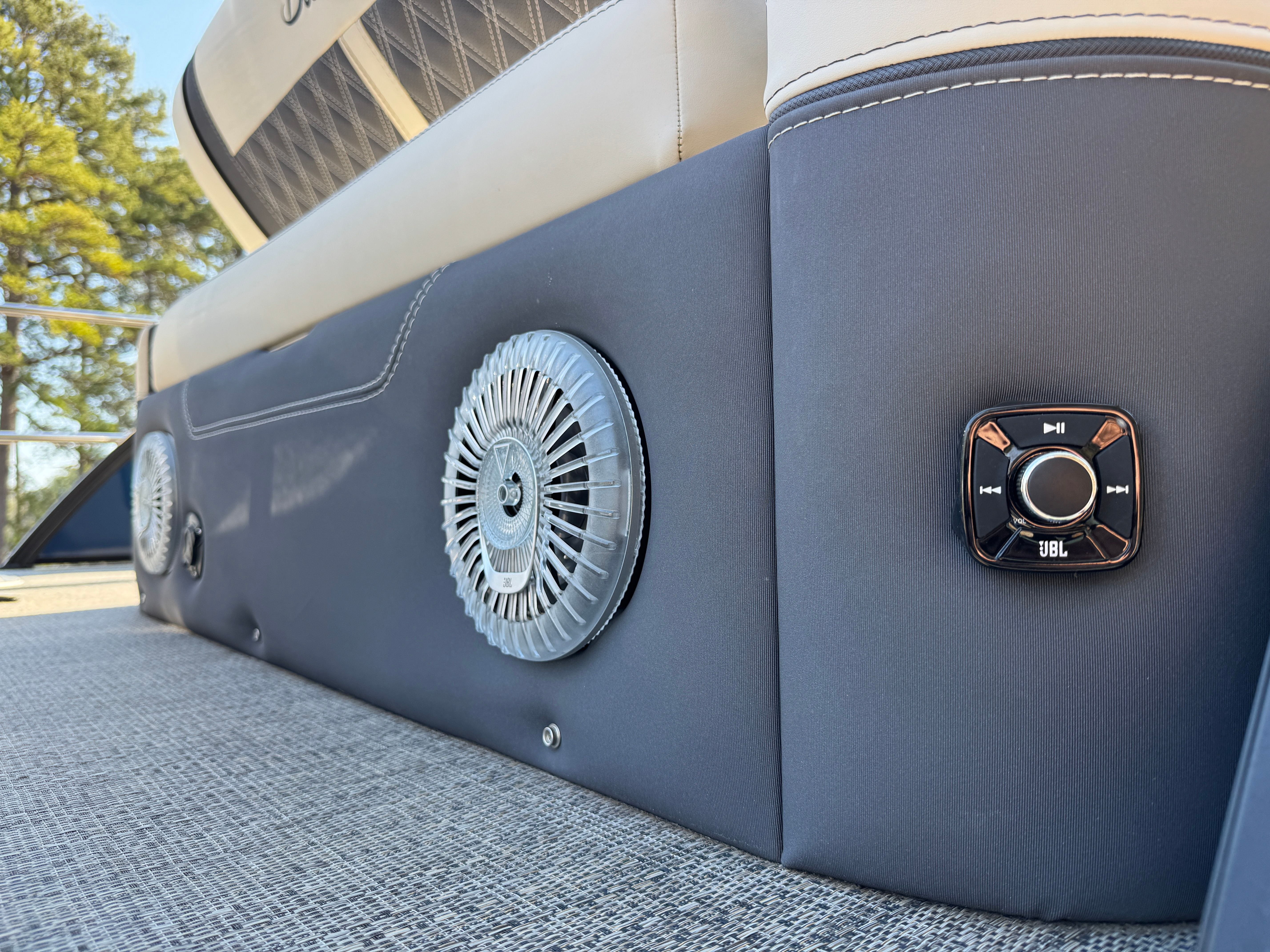 At the heart of the Barletta Lusso L25UE is a powerful single engine boasting 350 horsepower. This robust engine ensures that every cruise is smooth, responsive, and exhilarating, whether you are gliding across calm lakes or navigating lively rivers. The Lusso L25UE’s performance capabilities make it a standout among pontoon boats, offering the perfect balance of speed and control. With this kind of horsepower, you can expect quick acceleration, effortless towing for water sports, and the confidence to explore new horizons with ease.