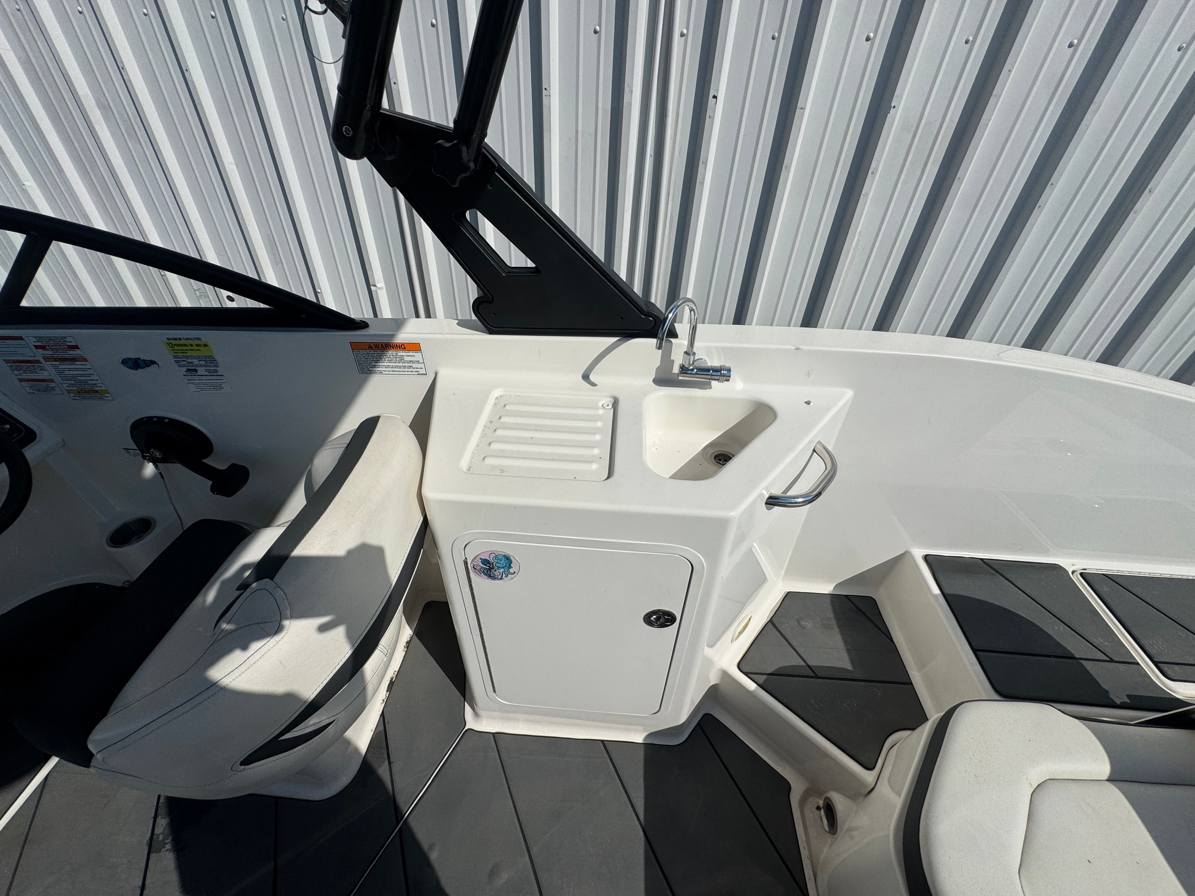 Practicality is at the heart of the Bayliner DX 2200’s appeal. Its manageable 20-foot length makes docking and trailering straightforward, even for those new to boating. The efficient engine design not only delivers impressive performance but also helps keep operating costs in check. With its user-friendly controls and intuitive layout, the DX 2200 is easy to operate, allowing you to focus on enjoying your time on the water.The boat’s generous storage compartments provide plenty of space for all your essentials, keeping the deck clutter-free and organized. Whether you are planning a day trip, a weekend getaway, or an afternoon of water sports, the Bayliner DX 2200 offers the flexibility and functionality you need to make the most of every outing.