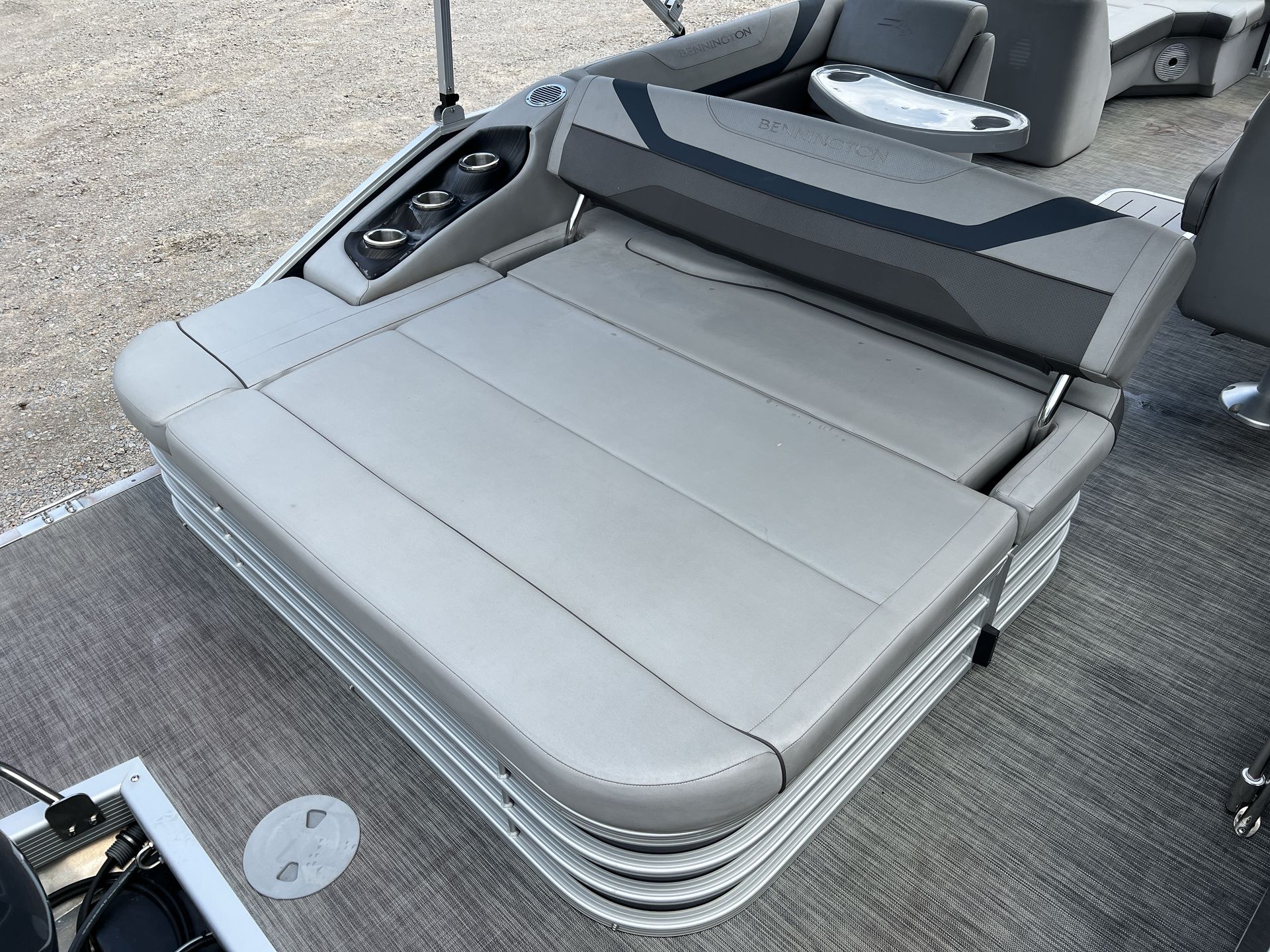 Powering the Bennington 22 Ssbx is a robust single engine with 150 horsepower, providing ample thrust for cruising, towing, and exploring. The engine’s low hours—just 75—mean it’s barely broken in, promising years of dependable performance ahead. Whether you’re gliding across the water at a leisurely pace or picking up speed for watersports, this pontoon delivers smooth handling and responsive acceleration.The combination of Bennington’s advanced hull design and the efficient 150-horsepower engine ensures a comfortable ride, even when the water gets a bit choppy. You’ll appreciate the quiet operation and fuel efficiency, making every outing enjoyable and cost-effective. For those seeking a Bennington boat for sale with impressive power and reliability, the 22 Ssbx is a fantastic choice.