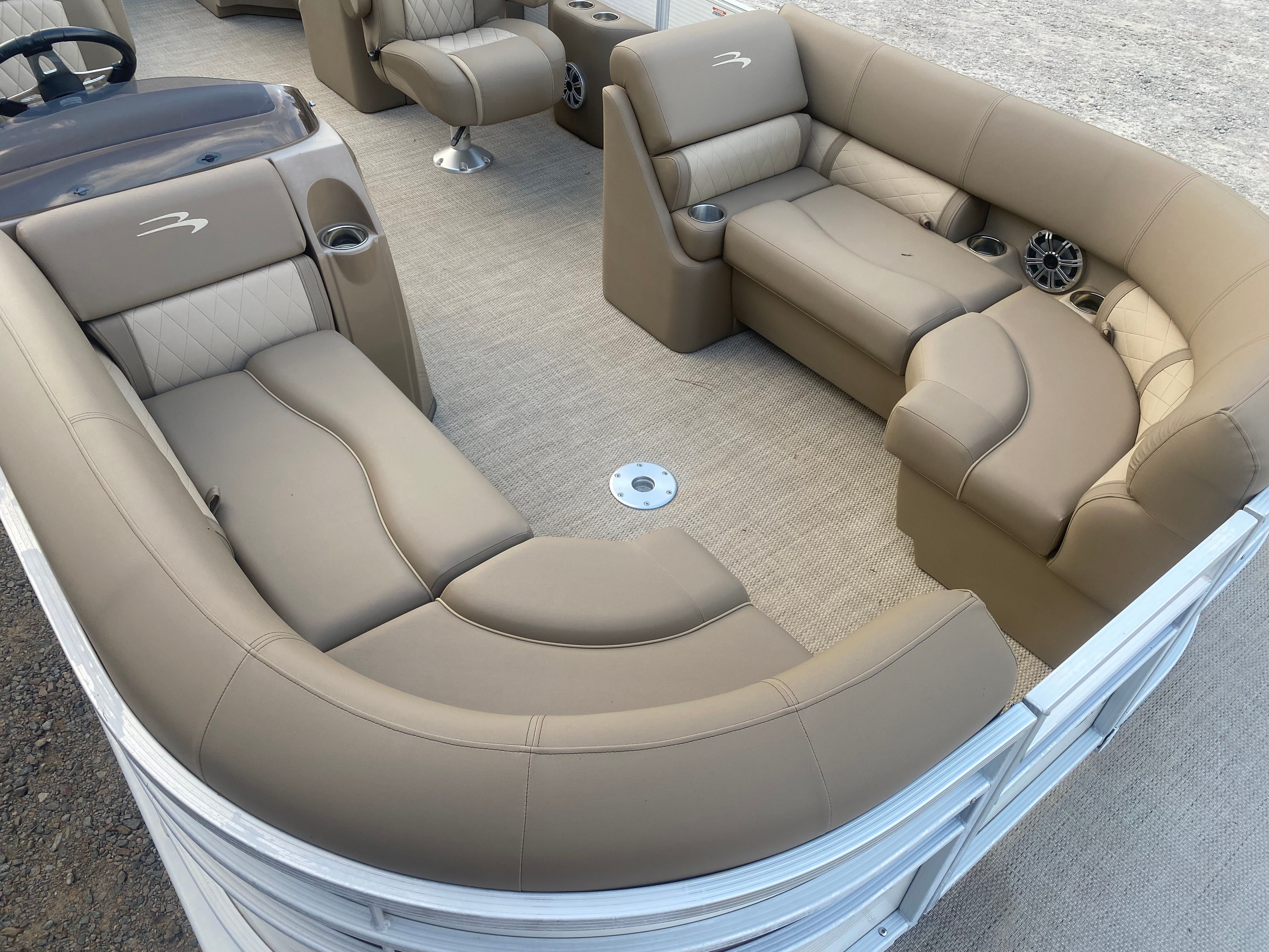 The Bennington 22 Ssrx is thoughtfully equipped to enhance your time on the water. Its spacious deck provides plenty of room for lounging, dining, and socializing, while the comfortable seating ensures everyone can relax in style. The pontoon’s layout is designed to maximize usable space, making it easy to move around and enjoy every moment. With its generous length and smart design, this Bennington boat for sale is perfect for hosting gatherings, enjoying meals, or simply soaking up the sun.