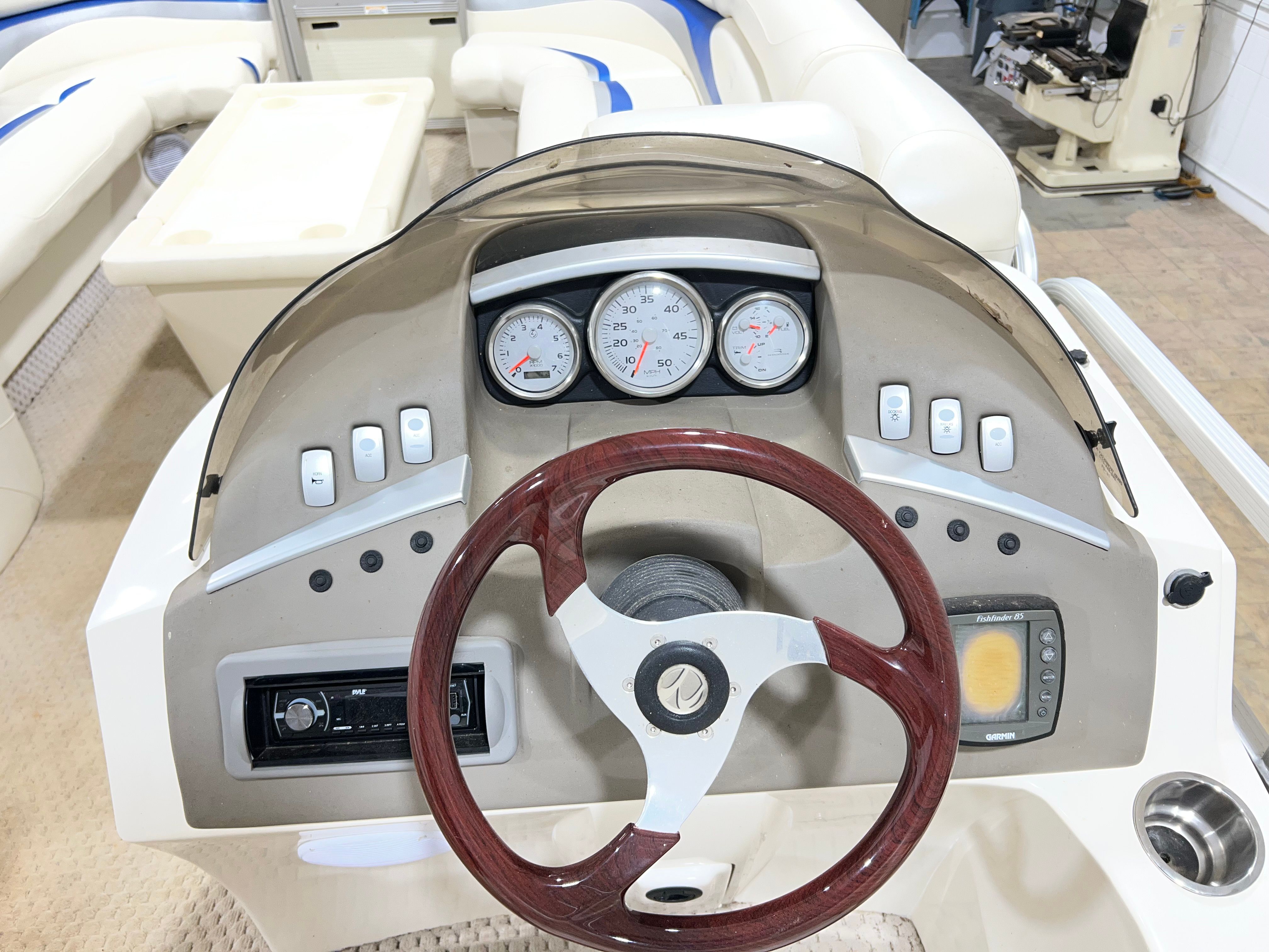 Powered by a single engine with an impressive 150 horsepower, the Bennington 2275 RL offers a smooth and responsive ride. The engine’s 407 hours demonstrate its reliability and readiness for many more seasons of enjoyment. This pontoon boat is engineered to provide efficient cruising, allowing you to glide across lakes, rivers, and calm coastal waters with ease. The 150 HP engine ensures you have the power needed for towing water toys, reaching your favorite fishing spots, or simply enjoying a spirited ride with family and friends. The combination of performance and dependability makes this Bennington boat for sale a smart choice for those who value both excitement and peace of mind on the water.