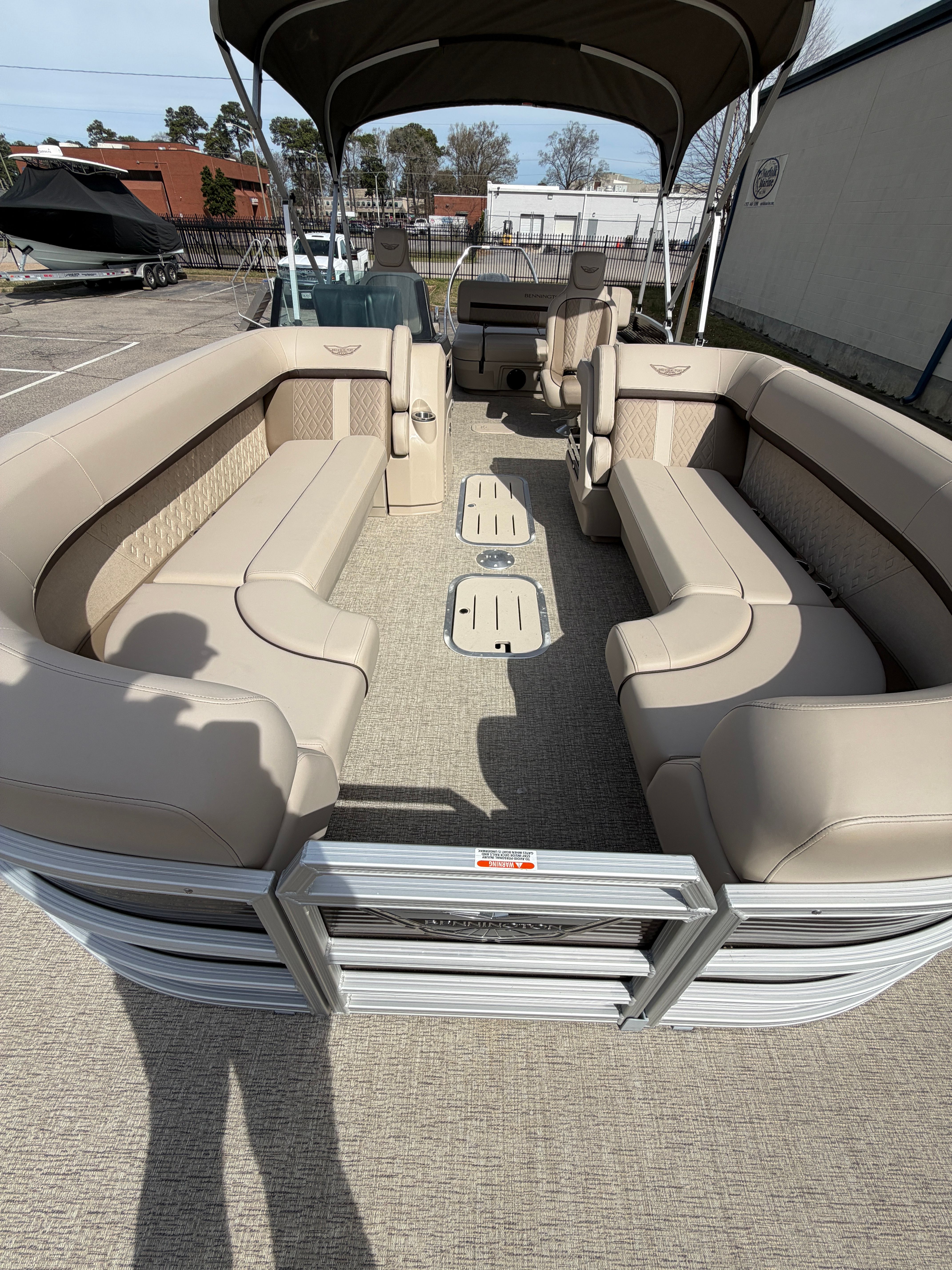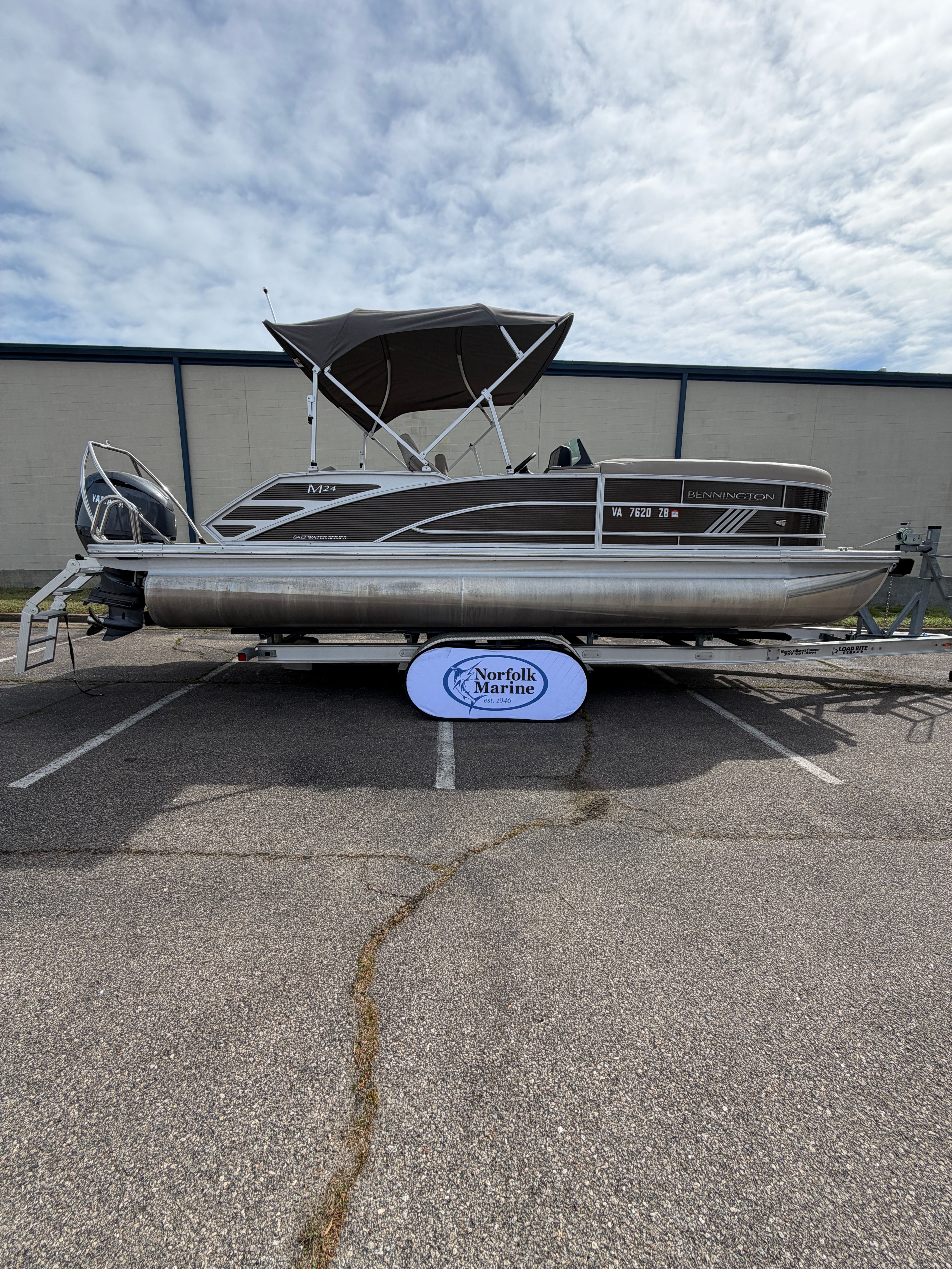 The 2025 Bennington 24 MSB SPS is a pontoon boat that measures an impressive 26.25 feet in length, offering ample space for relaxation, socializing, and adventure. With only 23 engine hours, this used pontoon boat is in excellent condition and primed for many more seasons of enjoyment. Bennington is renowned for its commitment to quality, and the 24 MSB SPS model exemplifies the brand’s dedication to craftsmanship, comfort, and innovation.