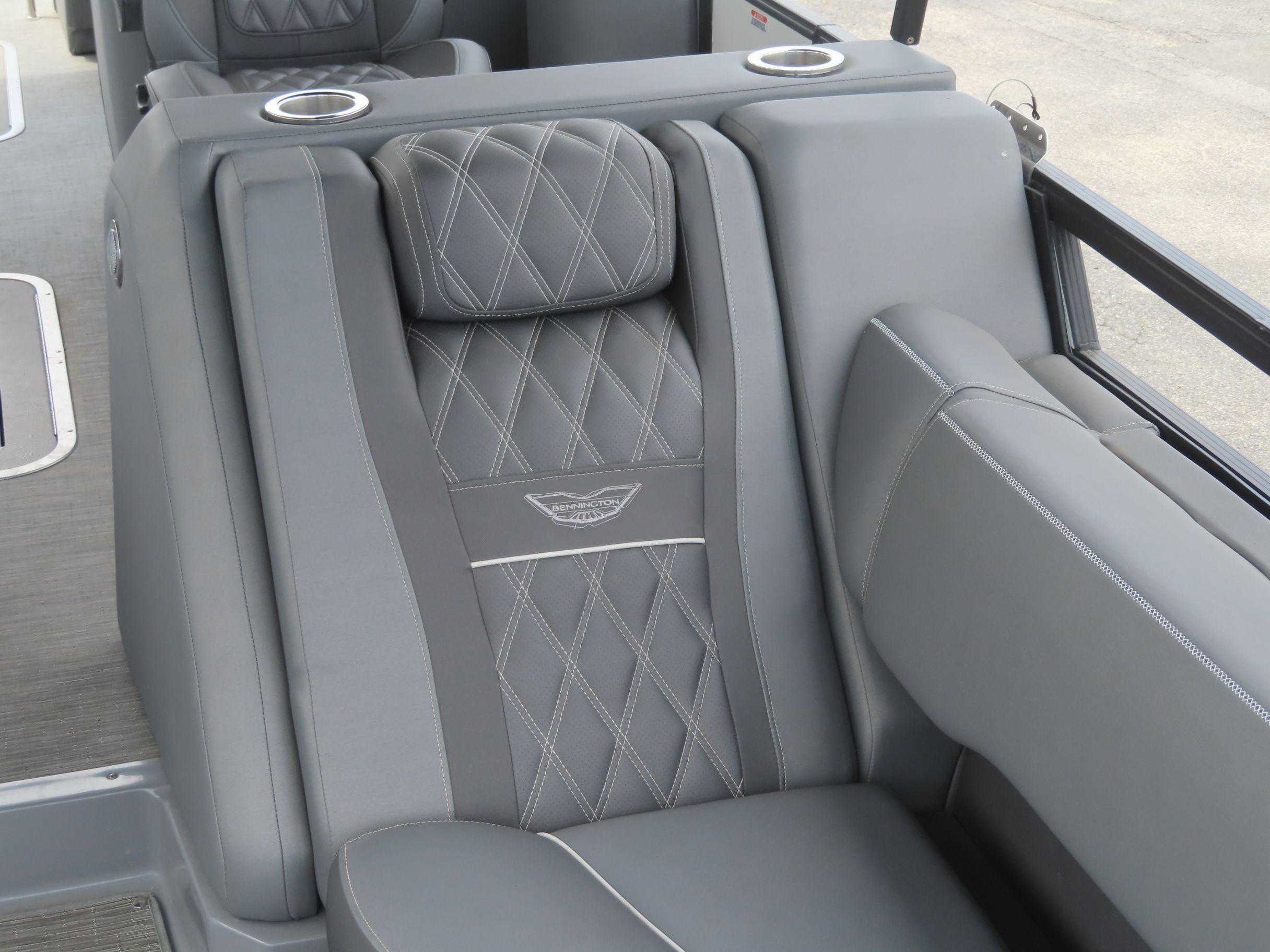 The Bennington 24 Rtfb is designed with both style and functionality in mind. Its spacious 26.5-foot deck offers plenty of room for seating, entertaining, and relaxing. The layout is perfect for hosting gatherings, with comfortable seating areas that encourage conversation and connection. The pontoon’s construction reflects Bennington’s commitment to quality, ensuring durability and longevity for years to come. With a single, high-performance engine, you’ll experience efficient cruising and easy maneuverability, making docking and navigating tight spaces a breeze.