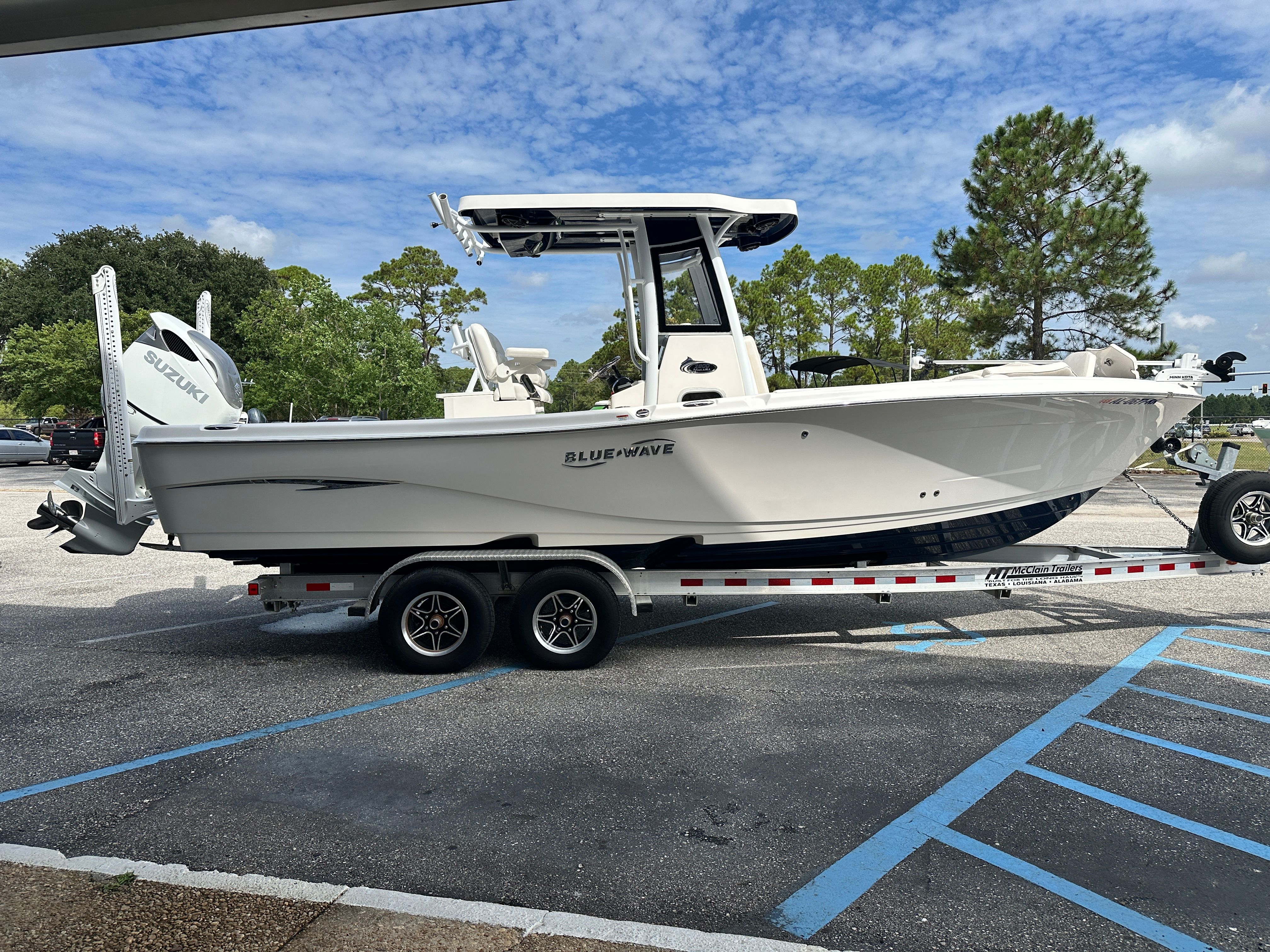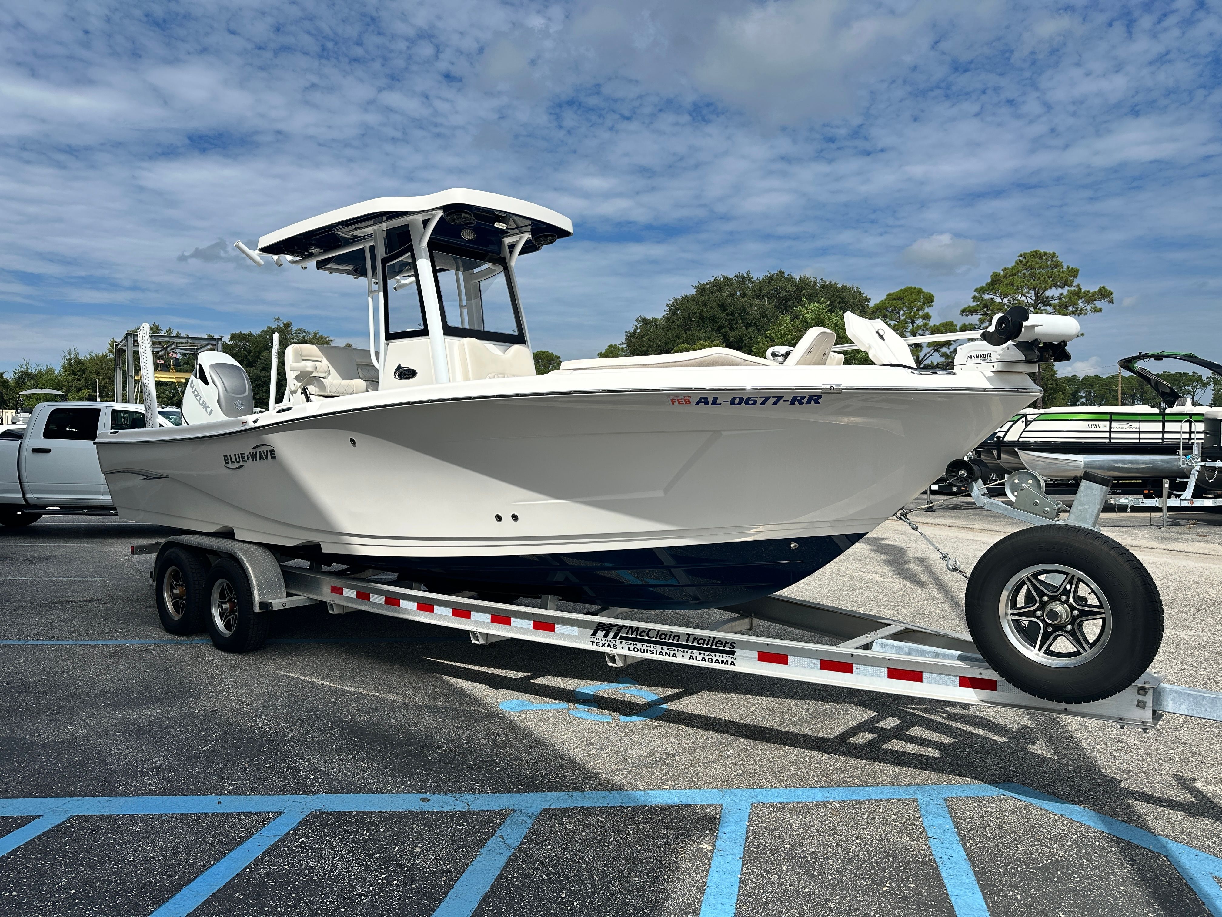 The 2023 Blue Wave 2600 Makaira is a used Center Console boat that measures just over 26 feet in length, making it an ideal choice for those who desire ample space without sacrificing maneuverability. Its contemporary design and thoughtful layout provide a spacious deck that accommodates family, friends, and gear with ease. Whether you are a seasoned angler or a boating enthusiast looking for a reliable vessel, this Blue Wave boat for sale offers the perfect balance of size and functionality.