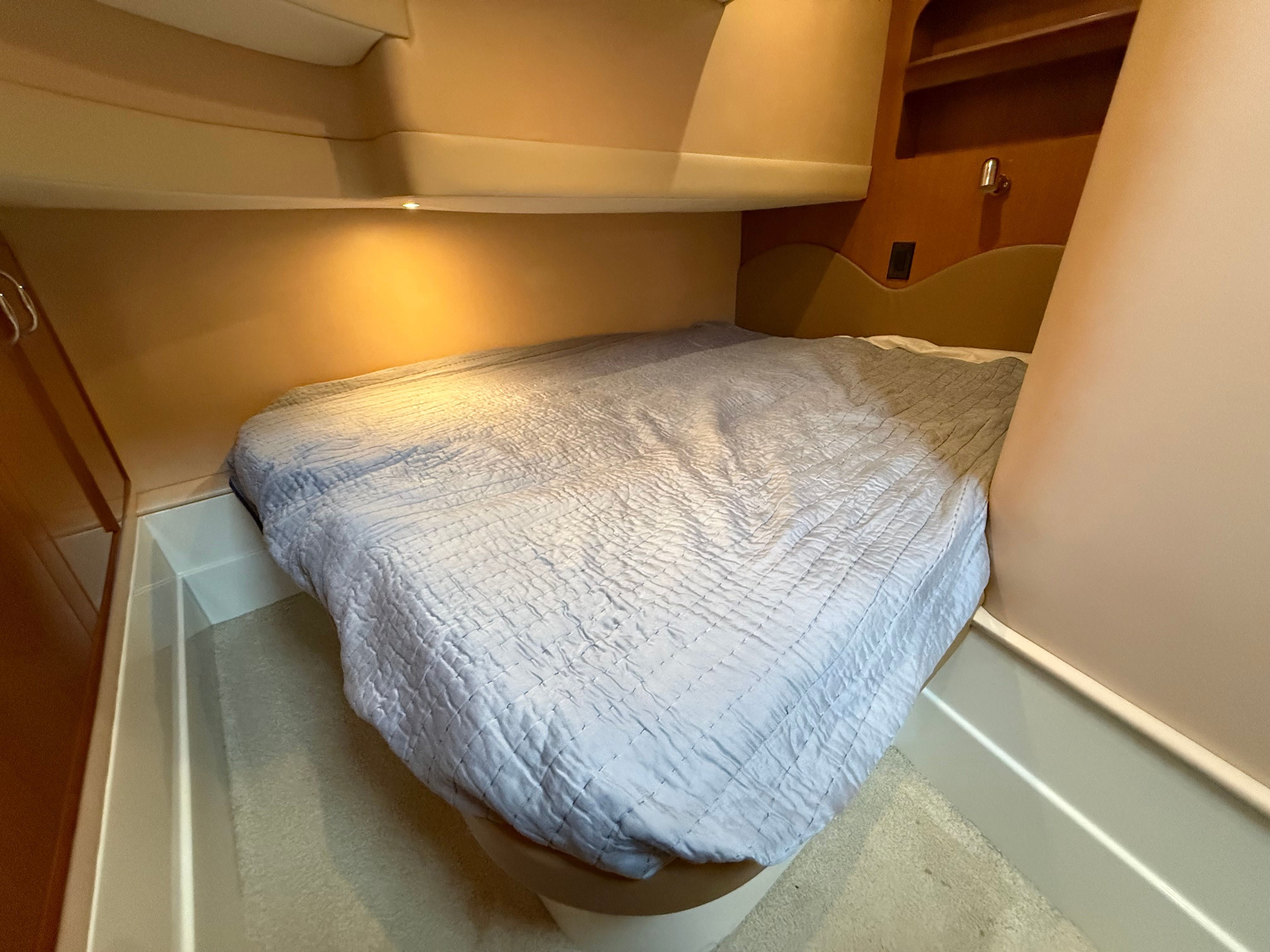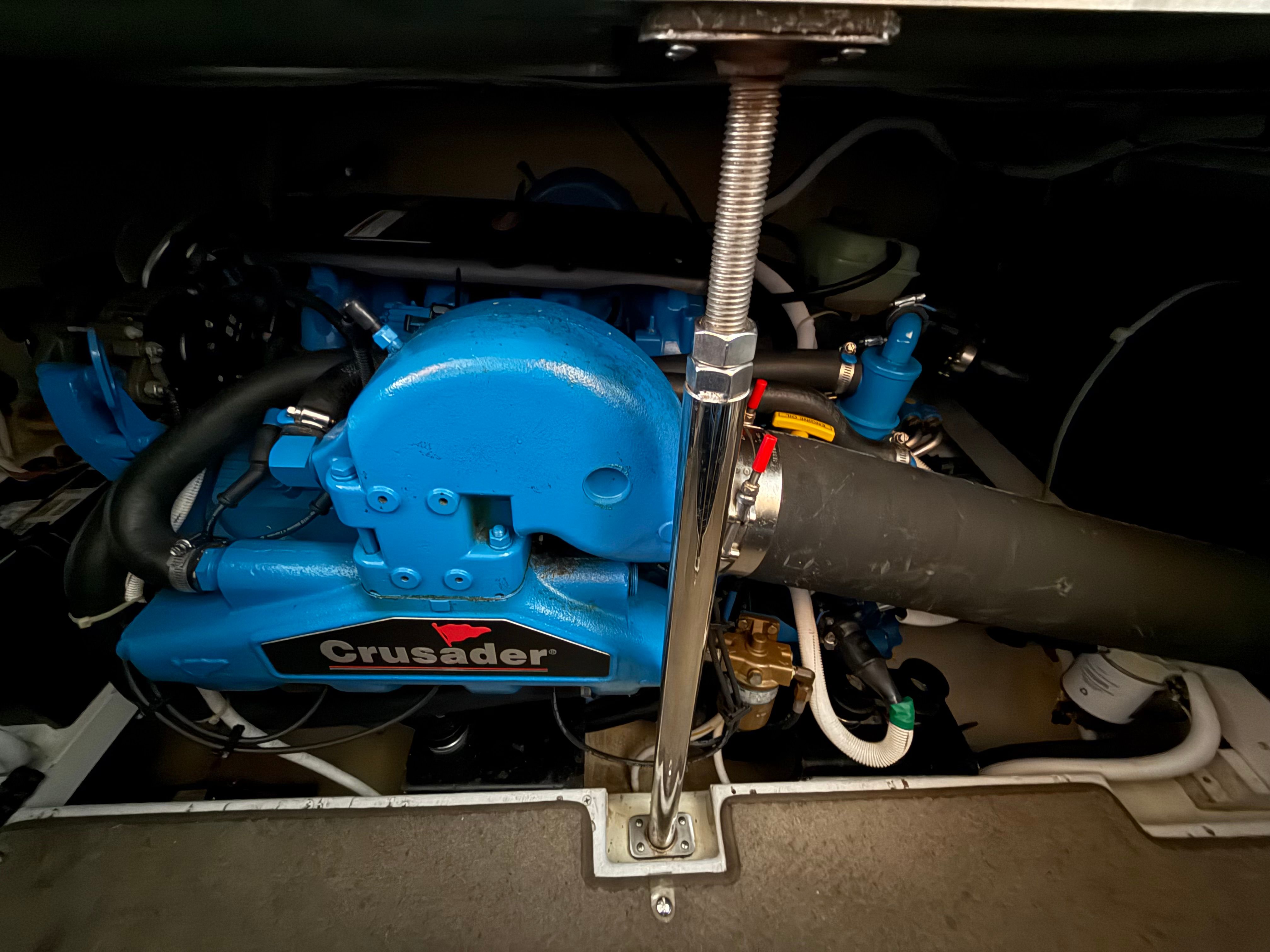 Power comes from twin Crusader 8.1 MPI 496 V8 big block engines with 772 hours. A Kohler 7E3 generator with 2,050 hours provides reliable onboard power while at anchor. The boat has also received fresh service, a full professional detail, and new bottom paint, making it a clean and well-prepared cruiser for the upcoming season.
