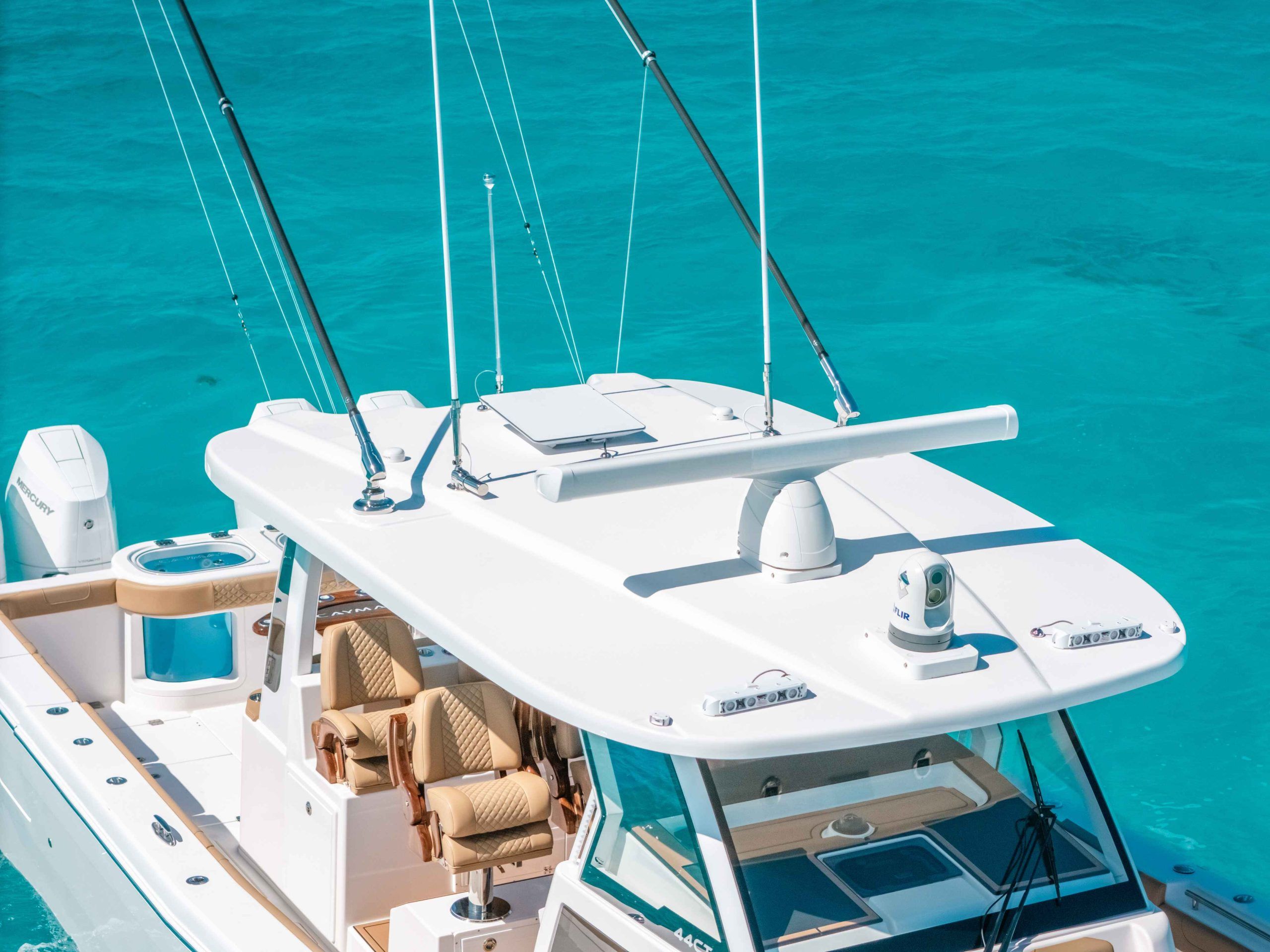 At the heart of the Caymas 44 CT is a powerhouse of marine engineering. Equipped with four high-performance engines delivering a combined 1,700 horsepower, this center console is built for speed, agility, and reliability. Whether you’re chasing the horizon at top speed or navigating tight marinas, the 44 CT responds with precision and confidence. The advanced hull design maximizes efficiency and stability, ensuring that every journey is as exhilarating as it is comfortable. For those seeking a center console boat for sale that offers unmatched performance, the Caymas 44 CT is a clear frontrunner.